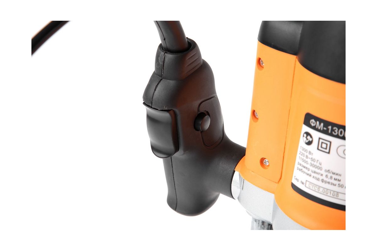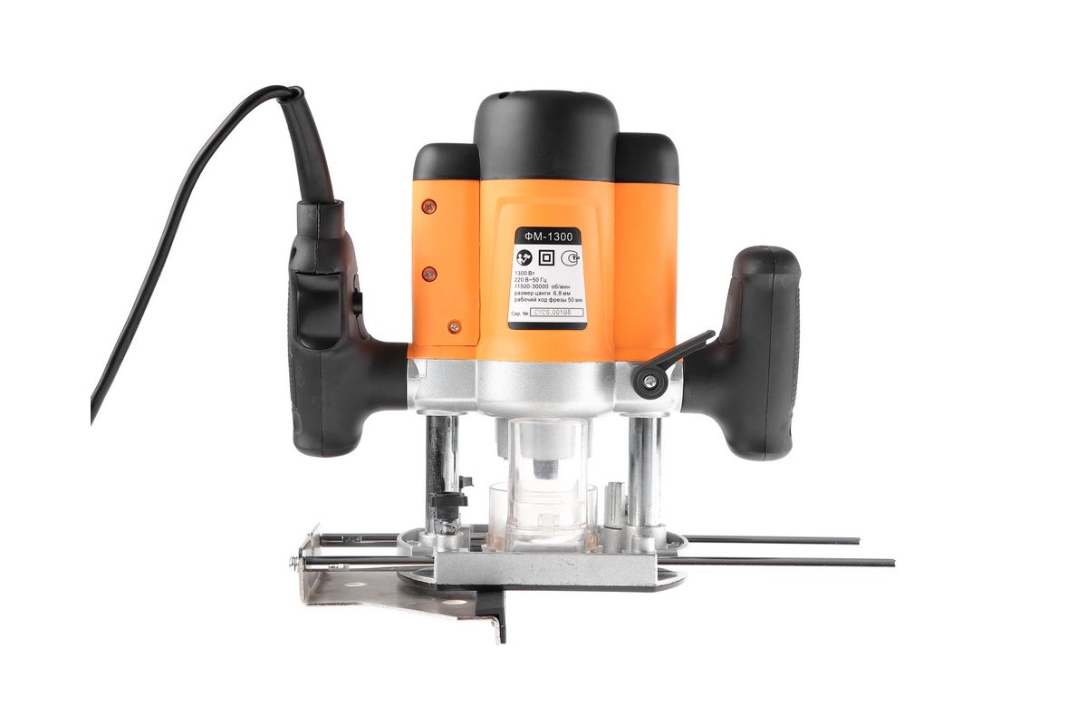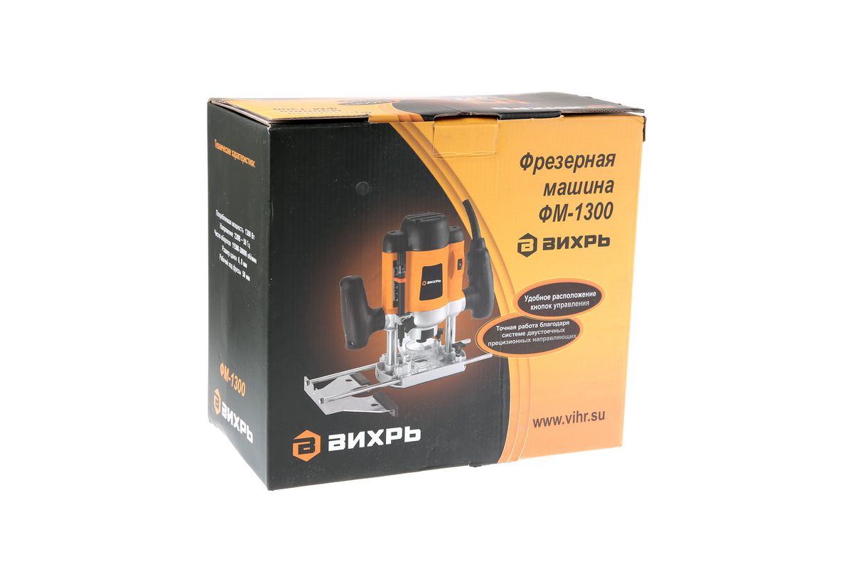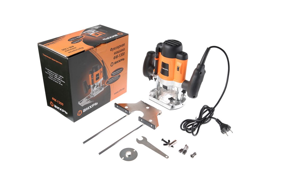 ВИХРЬ ФМ-1300 — фрезерная машина для обработки заготовок из дерева. Инструмент просто настроить под определенный вид работ изменением числа оборотов. Среди особенностей — оптимальная мощность (1300 Вт), литая основа, прорезиненные рукоятки. Ограничитель глубины легко фиксируется. Вертикальный ход фрезы — 50 мм.