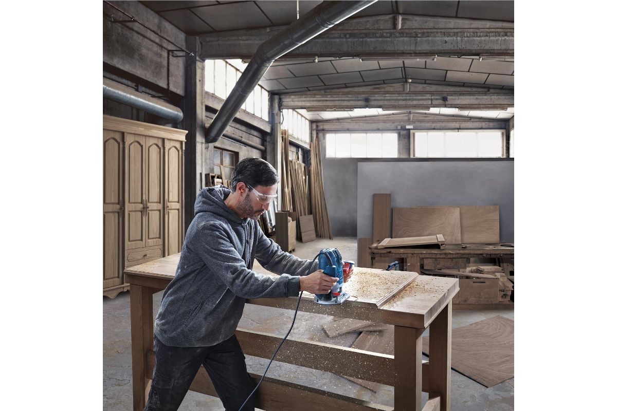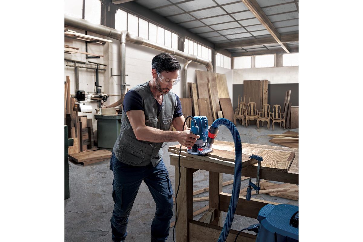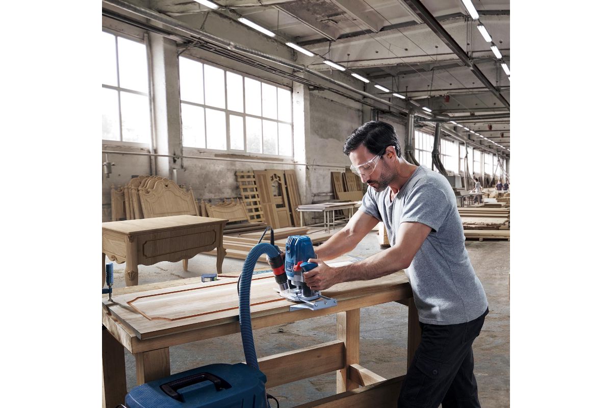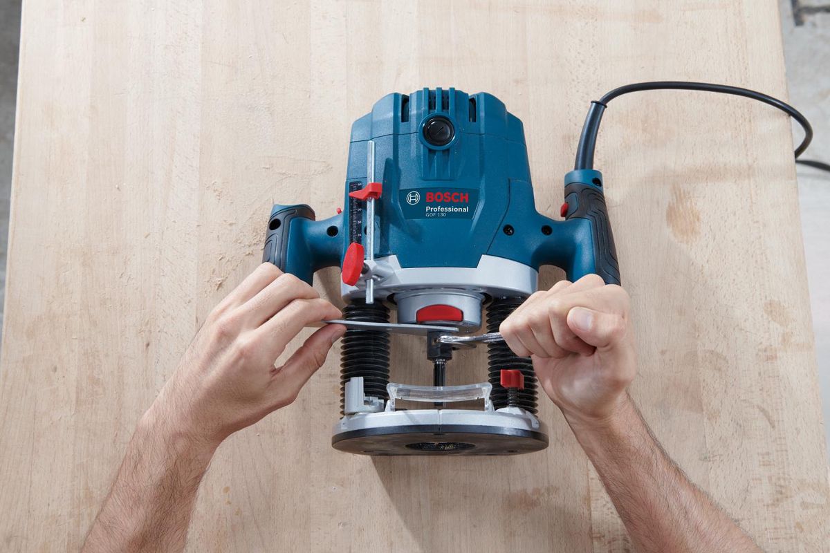 GOF 130 Bosch Professional - сетевой фрезер с высокой производительностью в доступном исполнении.Функция постоянной скорости на 20% увеличивает эффективность резания. Удобное управление с легким доступом к кнопкам регулировки скорости и кнопки переключения на рукоятках, а также провод длиною в 3 метра позволяют с легкостью маневрировать инструментом.