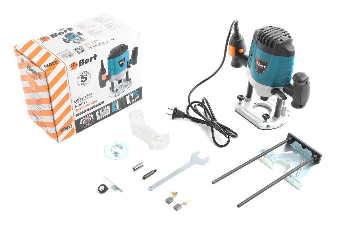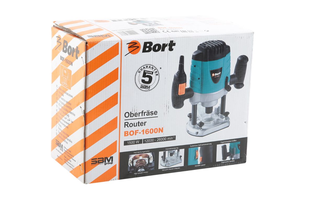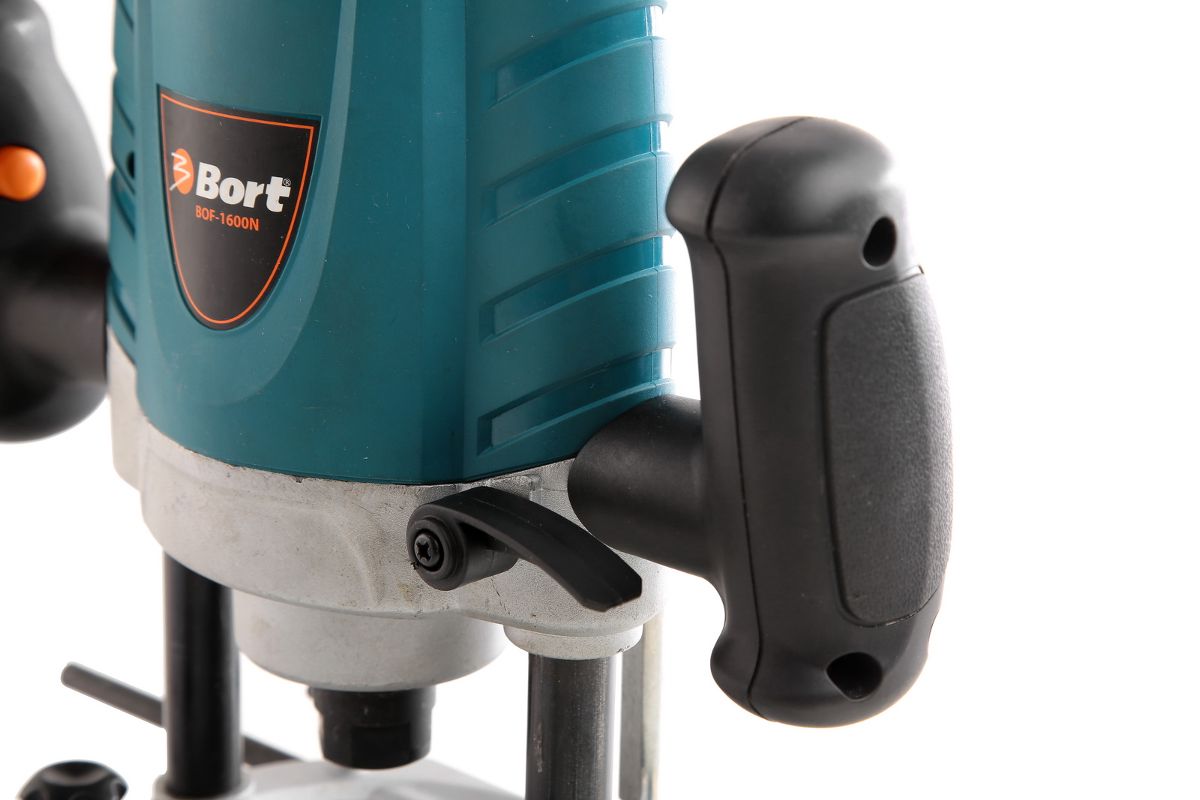 Данная модель — самая мощная (1600 Ватт) в линейке производителя Bort. Количество оборотов — 8000-30000/минуту; вертикальный ход — 60 миллиметров; цанга 3 диаметров - 6/8/12 мм. Особенности: глубина фрезеровки регулируется; скорость вращения устанавливается в диапазоне; плавный запуск; пылеотвод; автоотключение при износе щеток; литое основание.