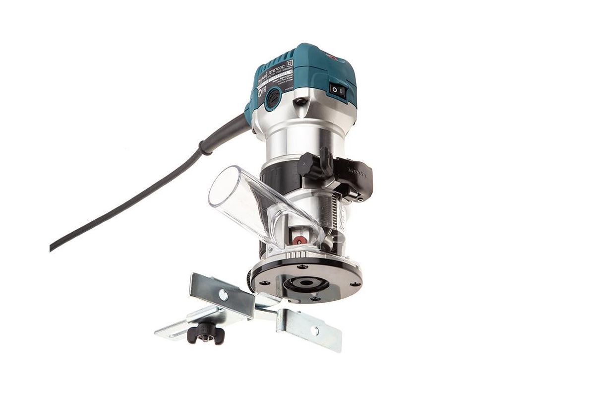 Кромочный фрезер Makita RT0700C подходит для снятия фасок с деревянных и пластиковых поверхностей. Мощность 710 Вт. Макс. обороты 30 000 об/мин. Подошву фрезера можно заменить для разных типов работ. Подошвы приобретаются отдельно.