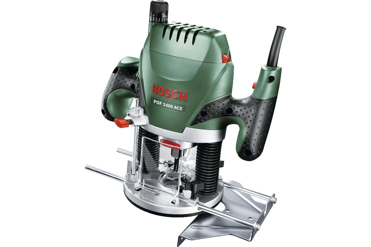BOSCH POF 1400 ACE – вертикальный фрезер для бытового использования. Предназначен для вырезания пазов, кромок, профилей и продольных отверстий в древесине и пластмассе. Поставляется в кейсе с набором из шести фрез.