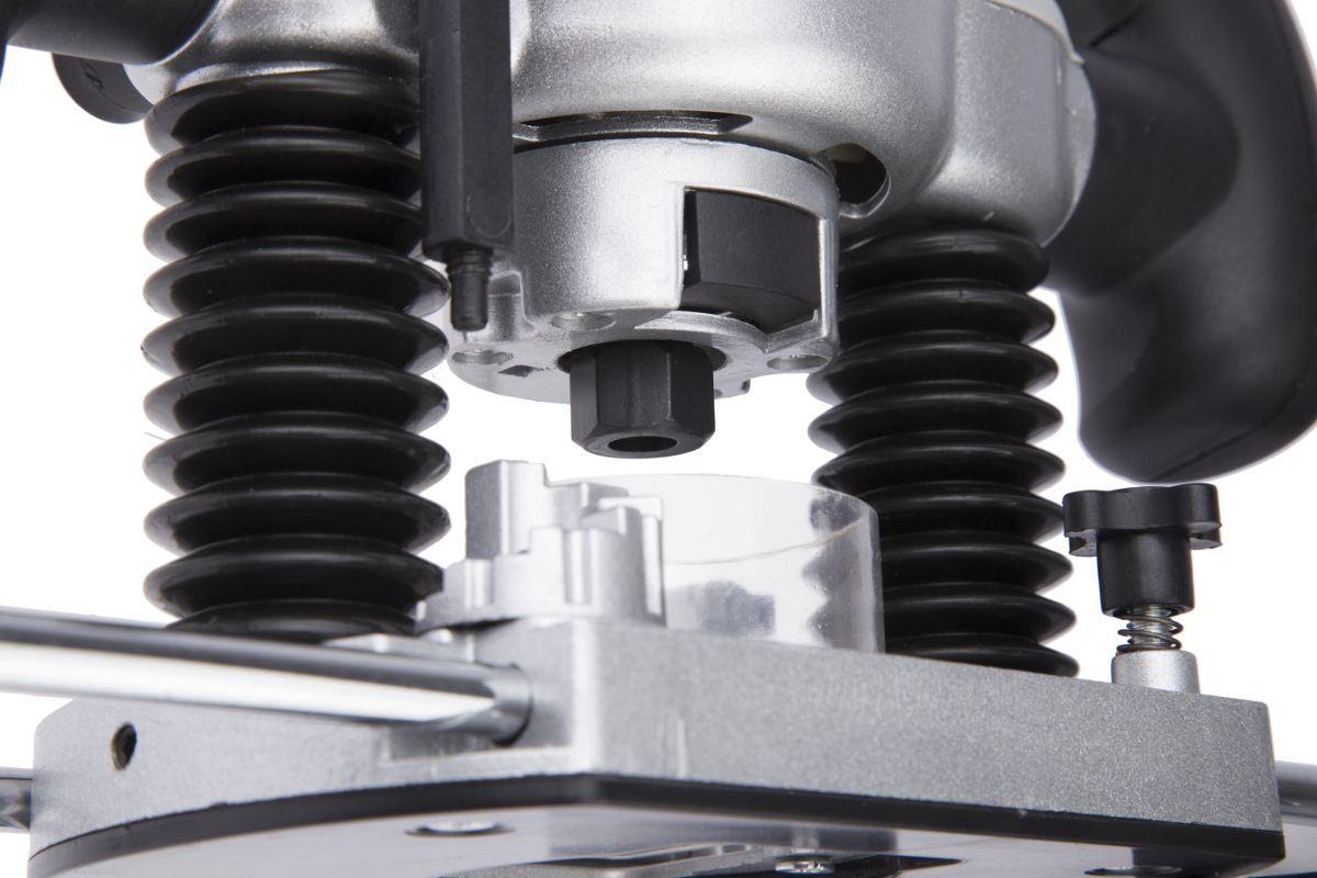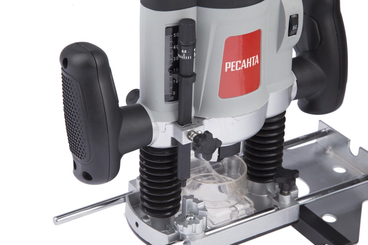 - Фрезер оснащён ограничителем глубины, который легко фиксируется специальным рычагом;
