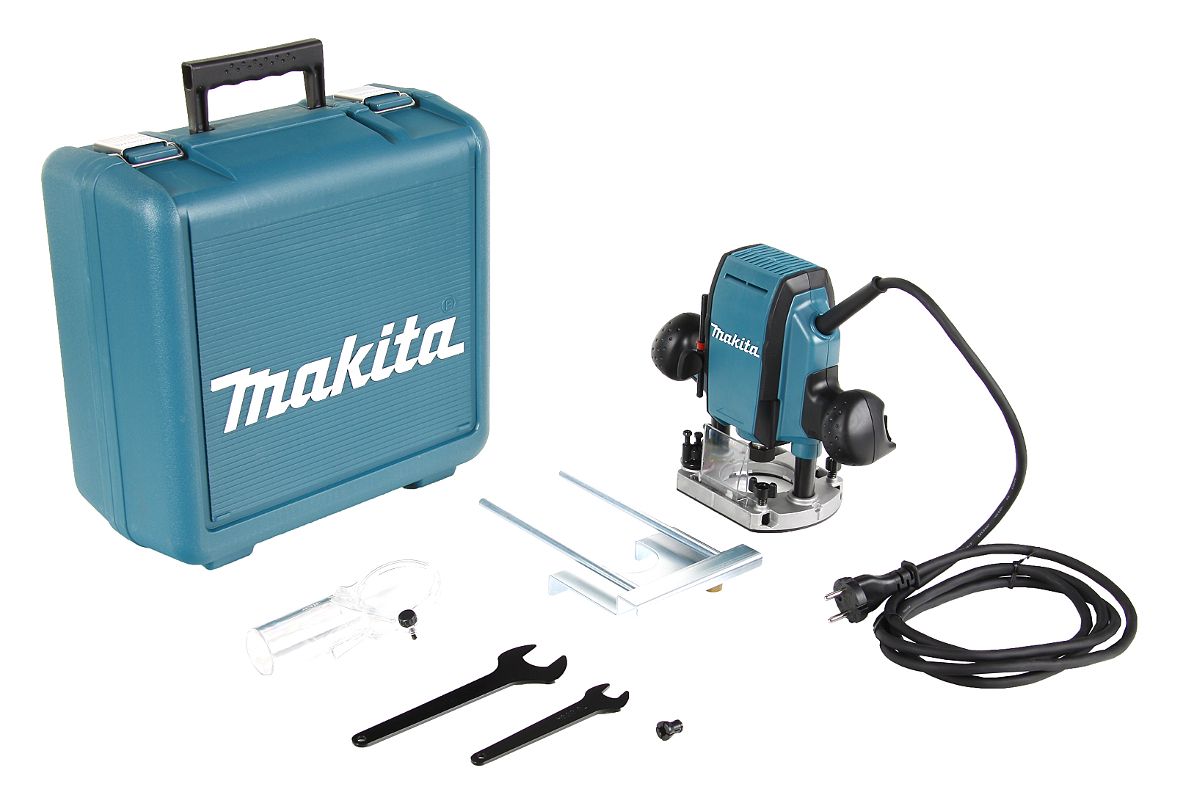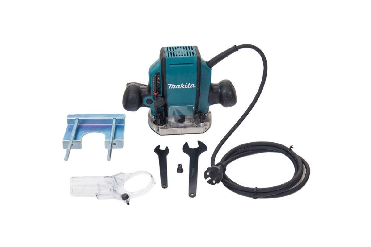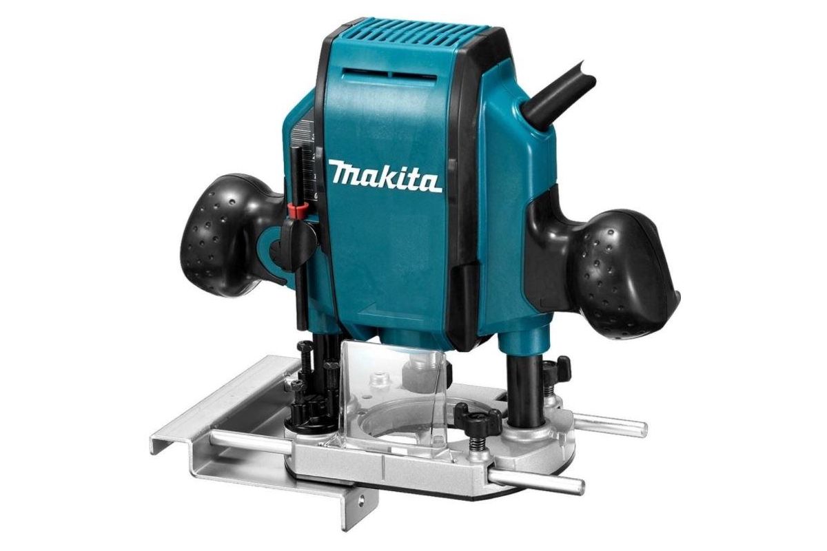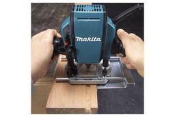 MAKITA RP0900K — фрезер ручной. Используется в небольших мастерских и на строительных площадках для решения задач по деревообработке. Оснащен мощным мотором и алюминиевой плитой. Есть возможность подсоединения пылесоса. Мощность — 900 Вт. Максимальное число оборотов — 27000 об/мин.