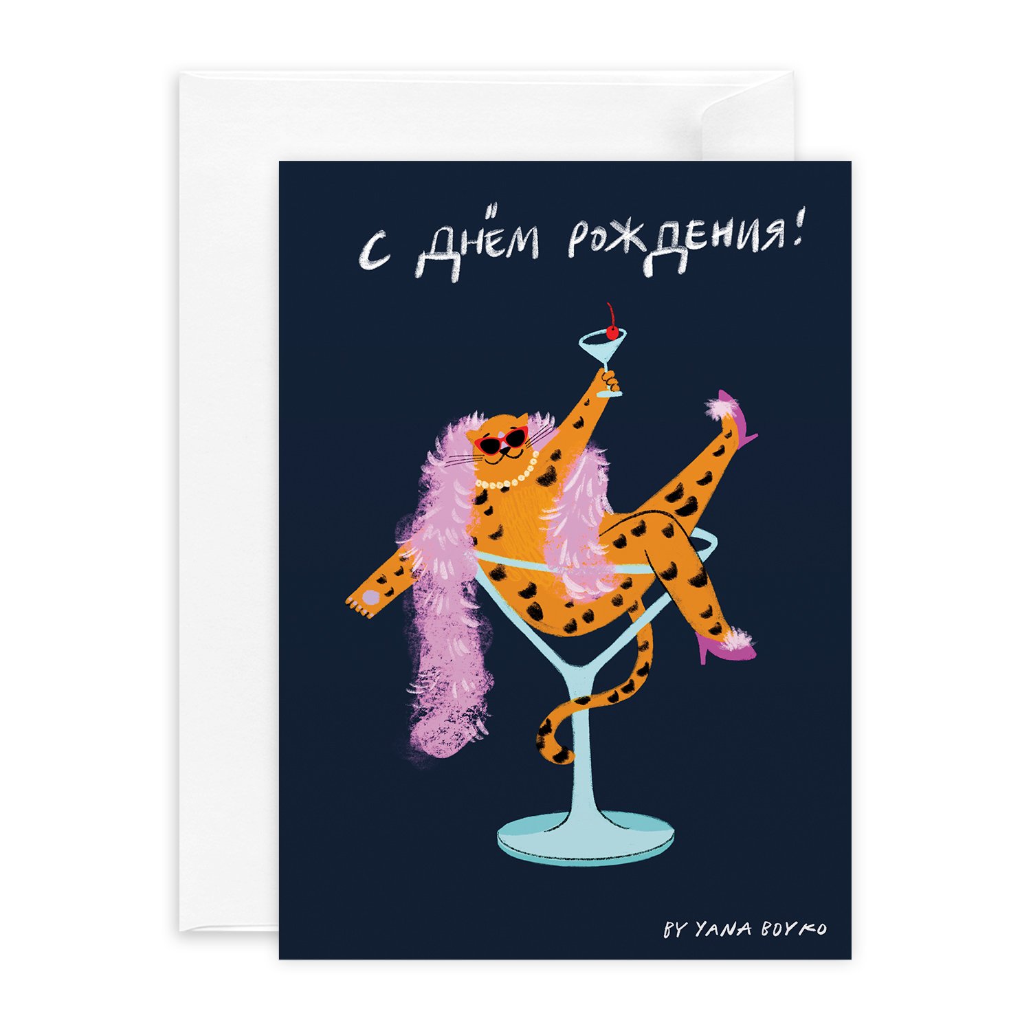 Открытка Красота в Деталях Леопард в бокале KVD.DR000.73