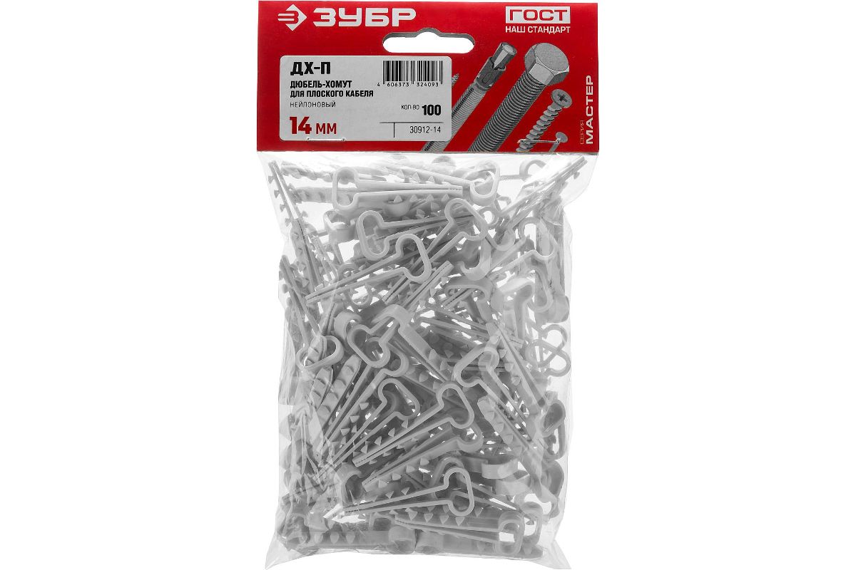 Дюбель-хомут ЗУБР ДХ-П, 14 мм, 100 шт для плоского кабеля нейлоновый