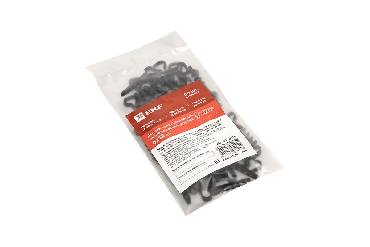 Дюбель-хомут EKF plc-cd-6x12b d6х12мм для плоского кабеля пп черн. (уп.50шт)