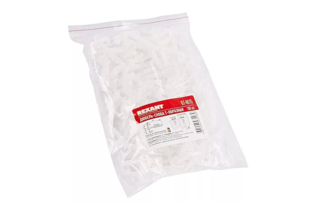 Дюбель-хомут Т-образный Rexant 07-4615 для двух плоских кабелей 2х12 КФ уп.100шт