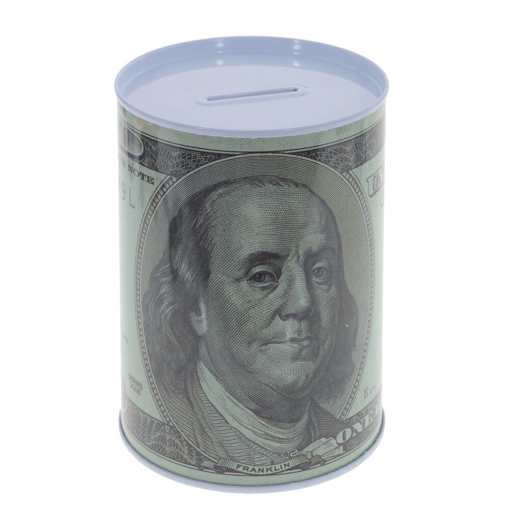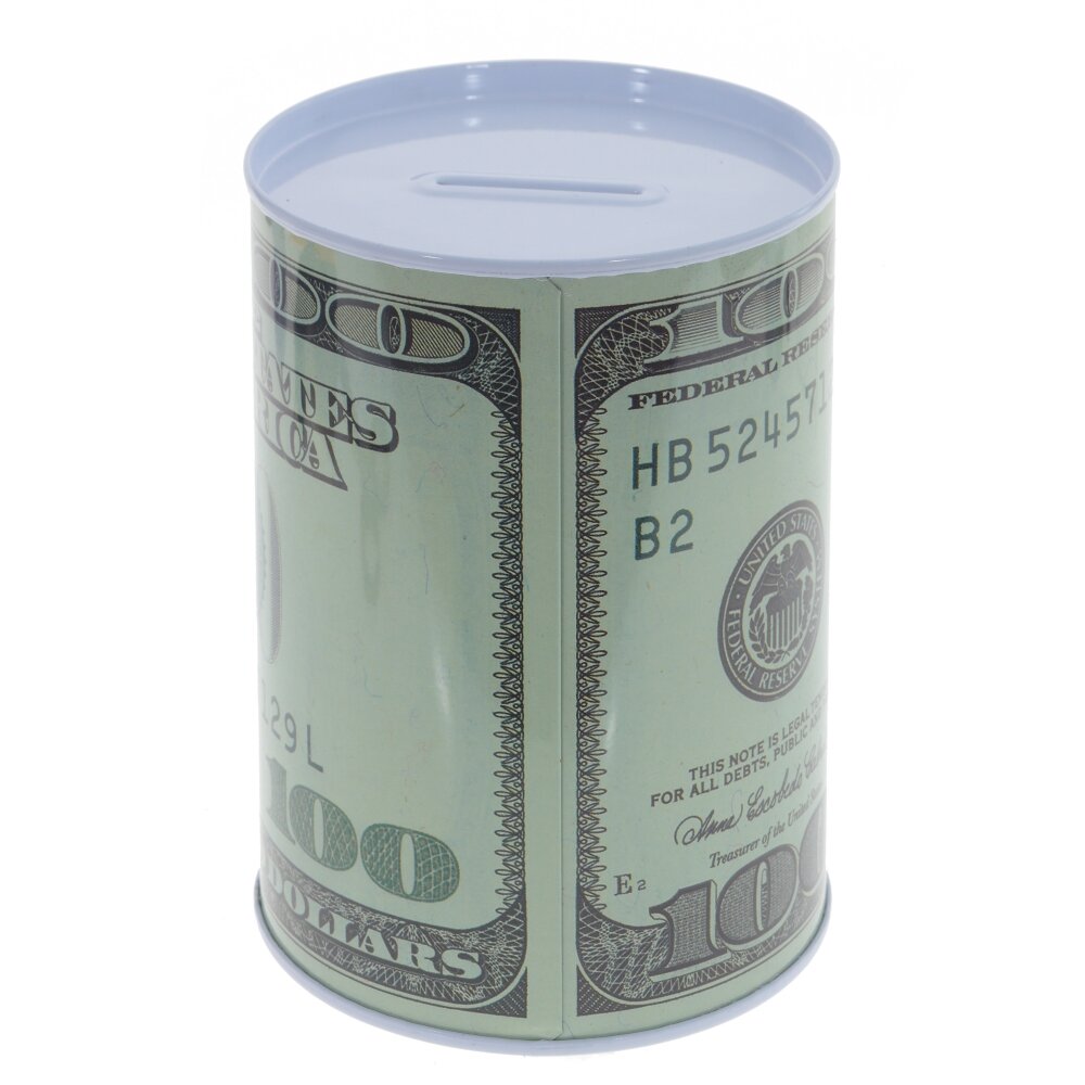 Металлическая копилка с рисунком финансовой тематики отлично подойдёт в качестве подарка на день рождения или просто для того, чтобы накопить на что-то нужное и полезное.