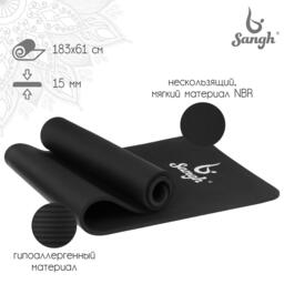 Коврик для йоги 183 × 61 × 1,5 см, цвет чёрный
