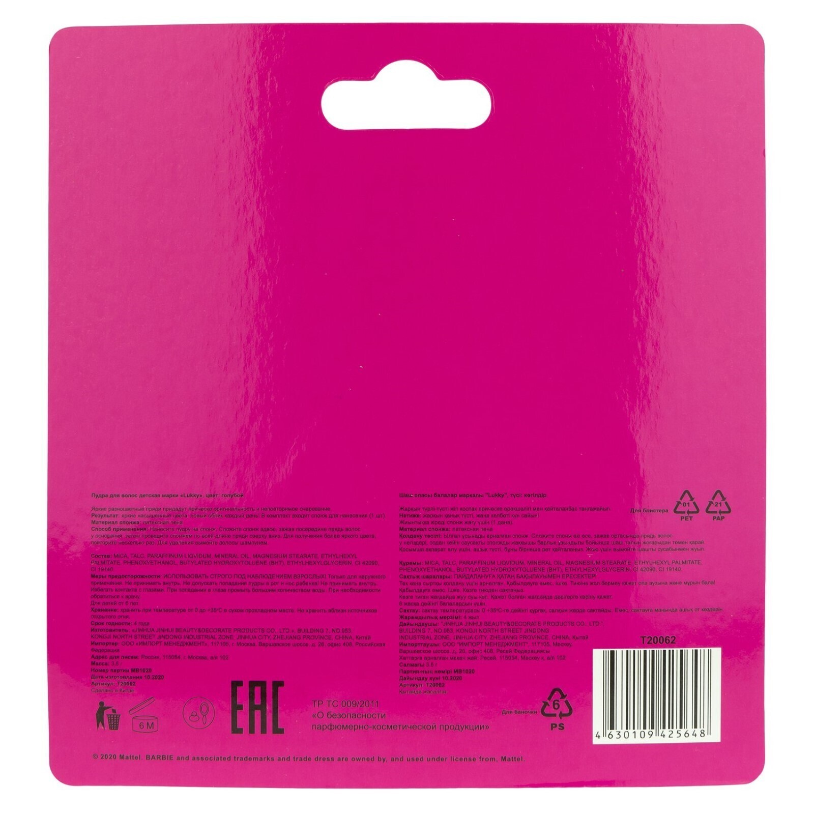 Пудра для волос Barbie BMR1959, в наборе со спонжем, цвет голубой