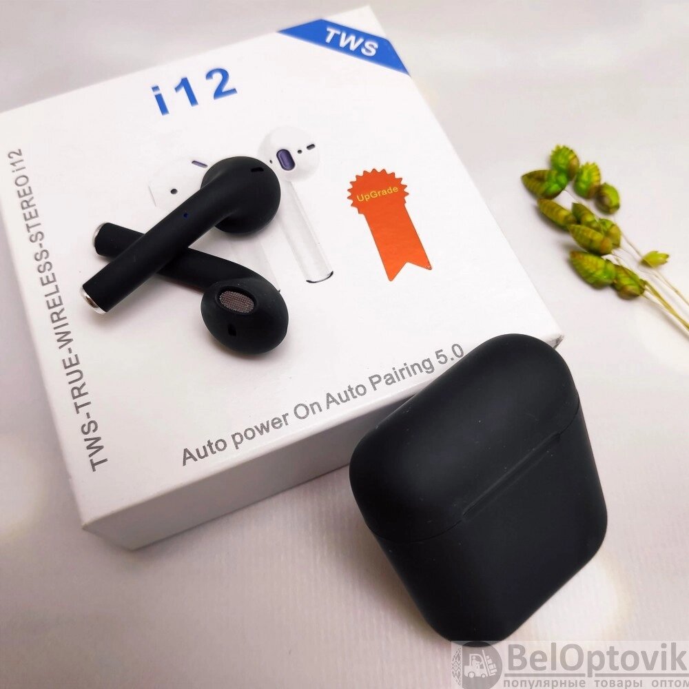 Беспроводные наушники i12 TWS (inPods i12) Bluetooth 5.0 с зарядным кейсом Черные