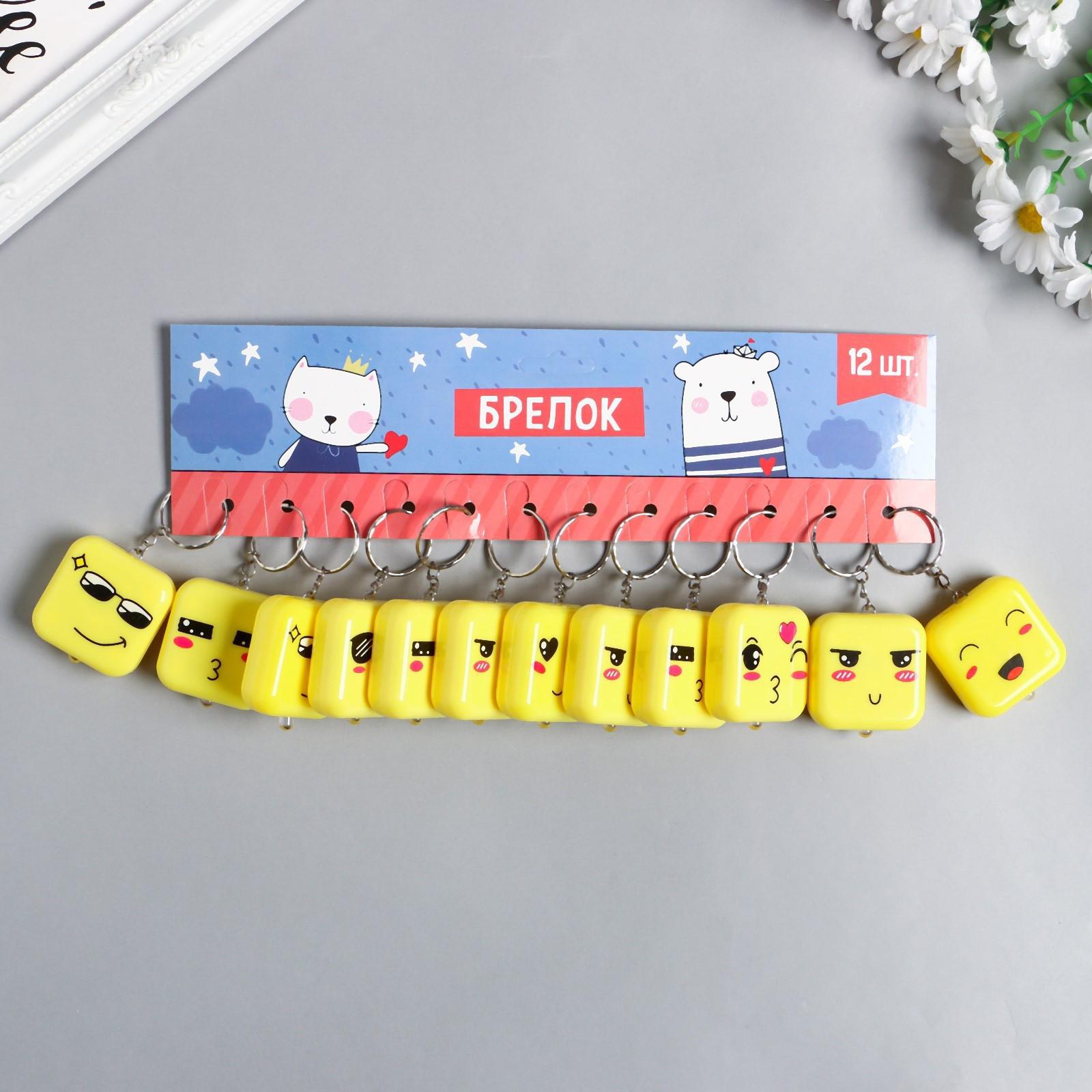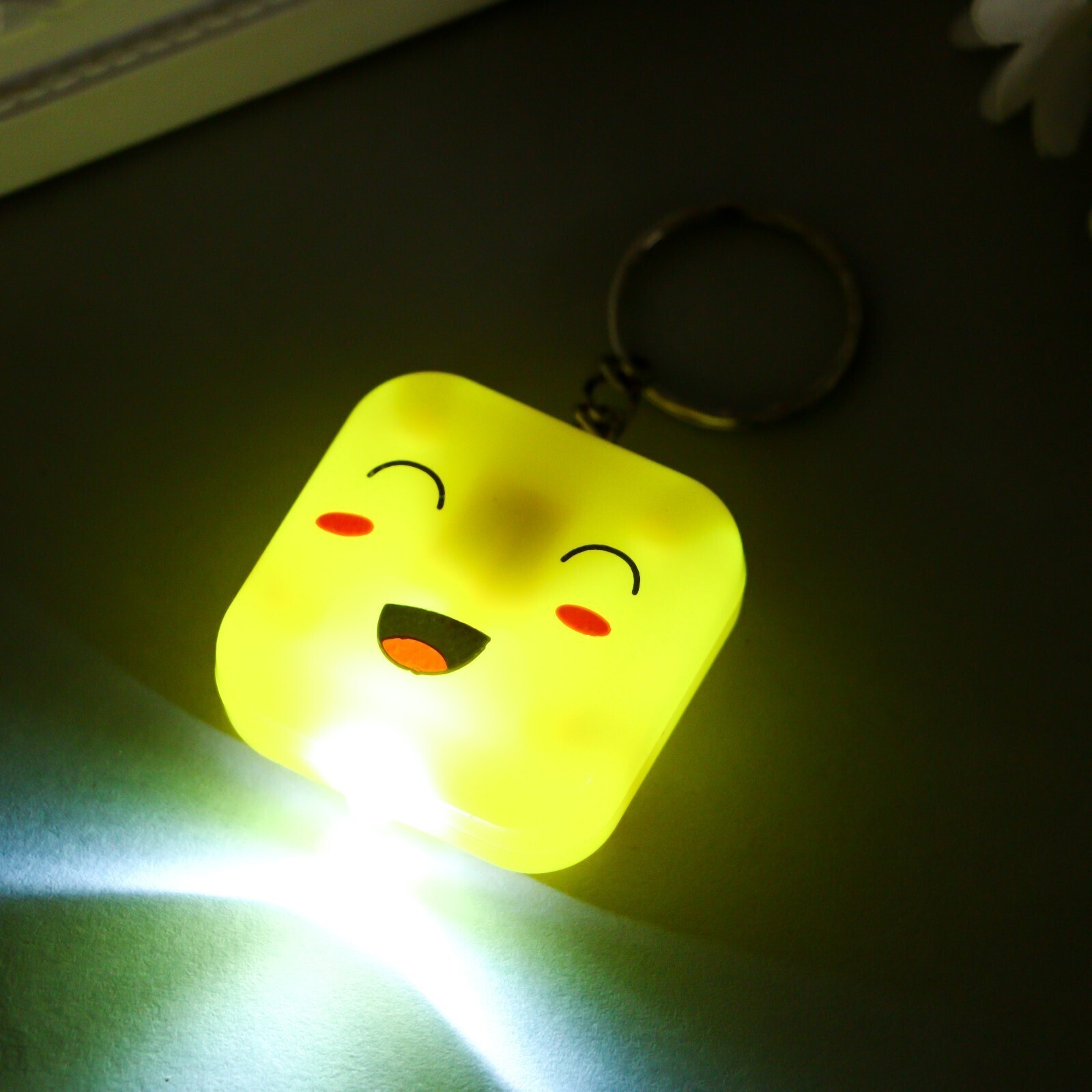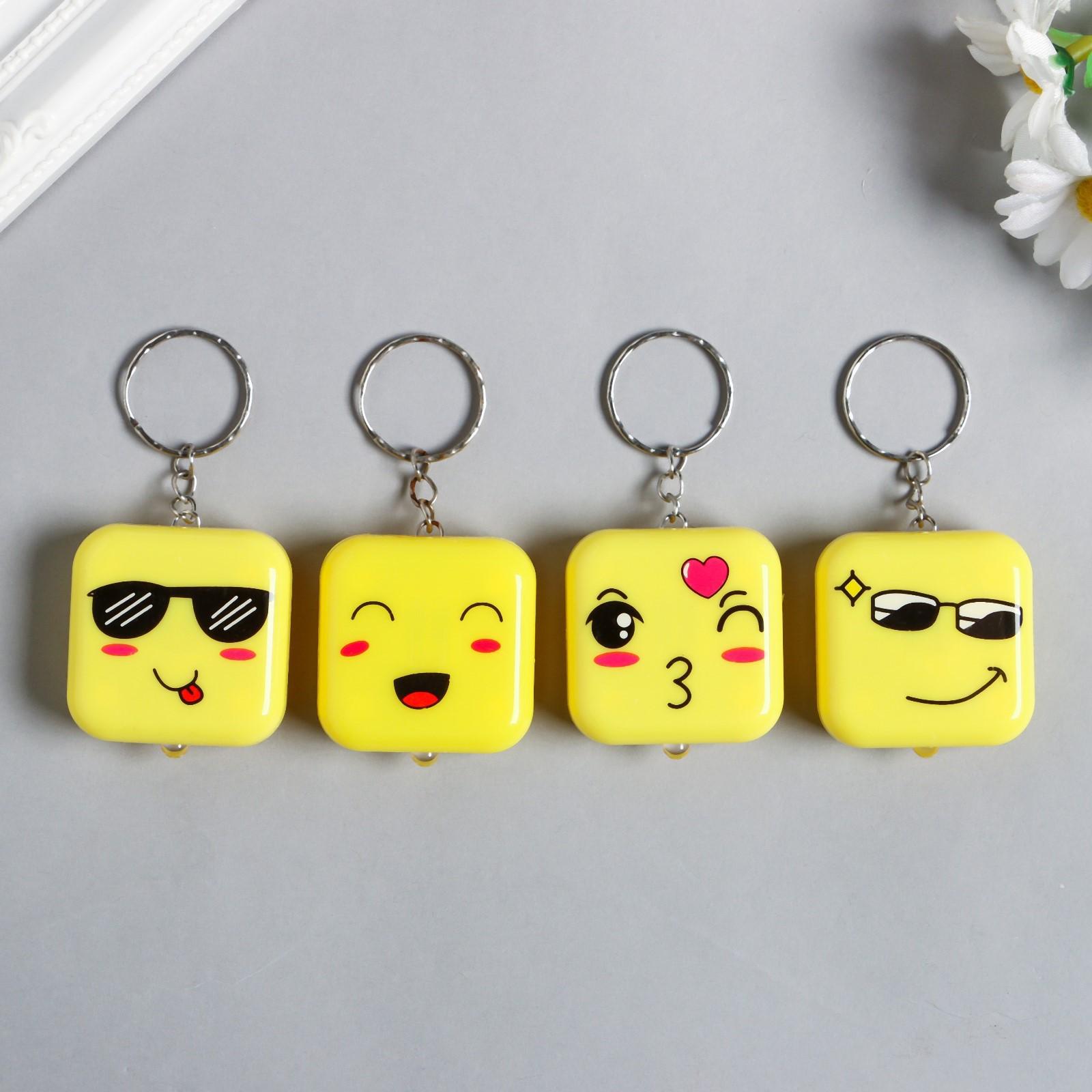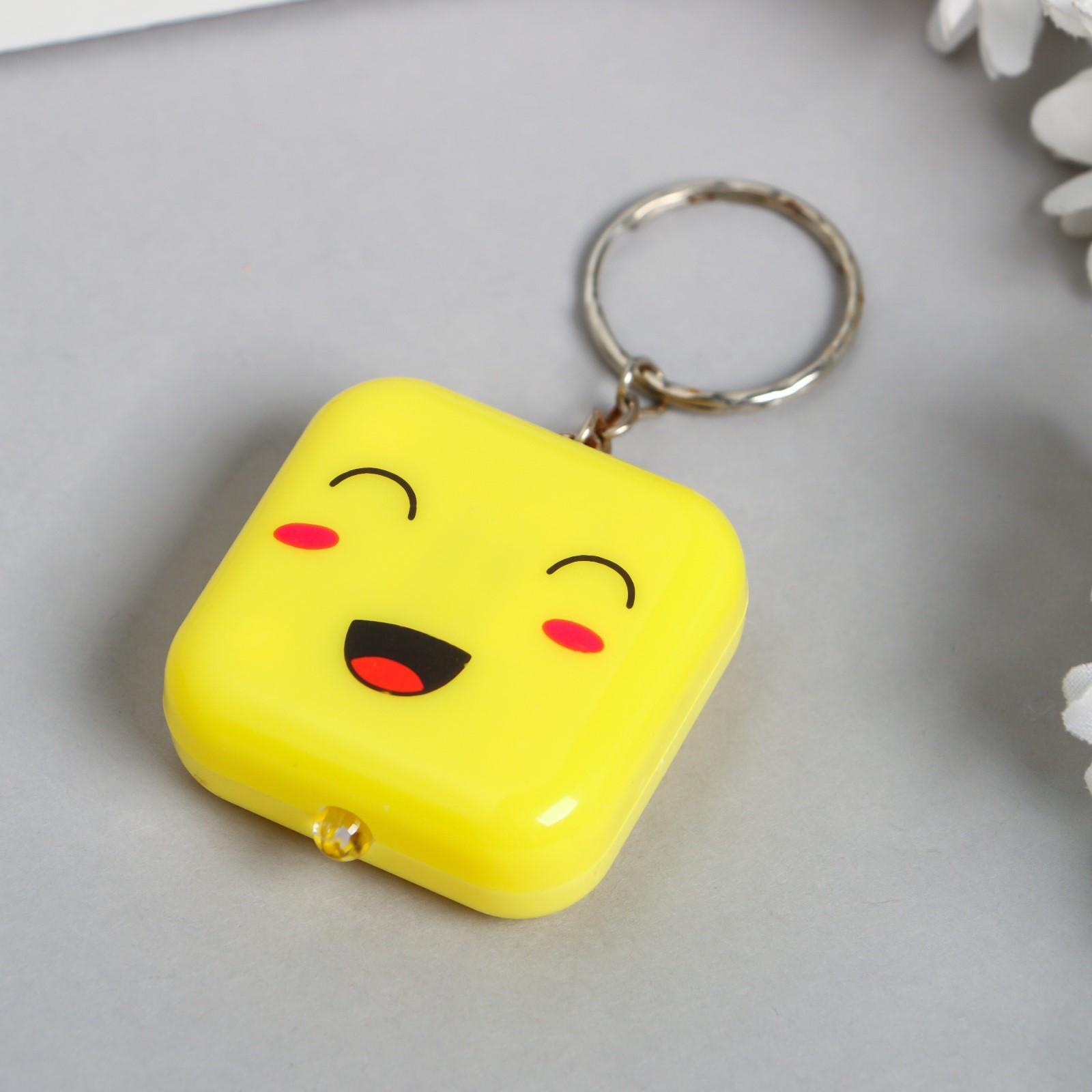 Фонарик свет на кольце "Квадратик-смайлик" МИКС светит 3,8х1,6х3,8 см