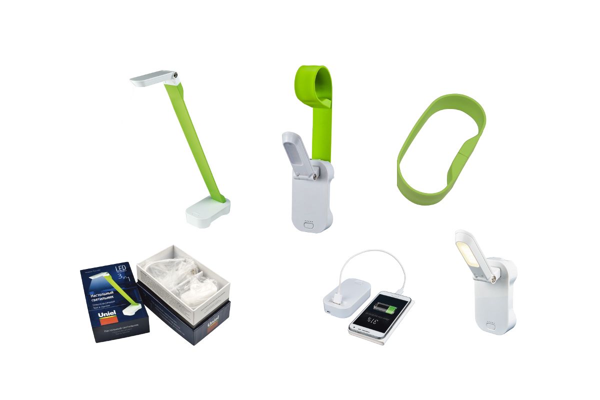 TLD-530 Green-White/LED/200Lm/6400K/PB Светильник настольный трансформируемый. Механический выключатель. Встроенный аккумулятор. Power bank для зарядки портативных электронных устройств. Зеленый с белым. TM Uniel.
