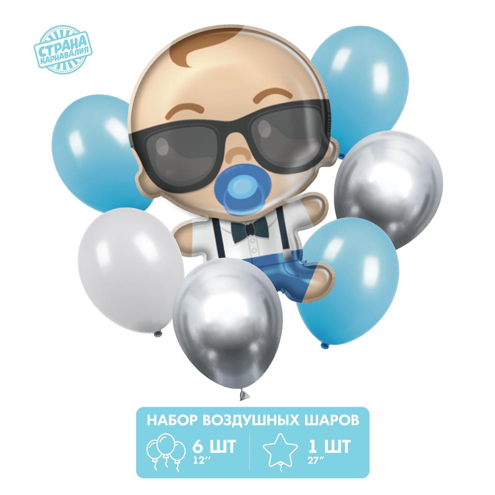 Букет из шаров "Mini Boss",однотон ,фольга, латекс, набор из 6 шт.