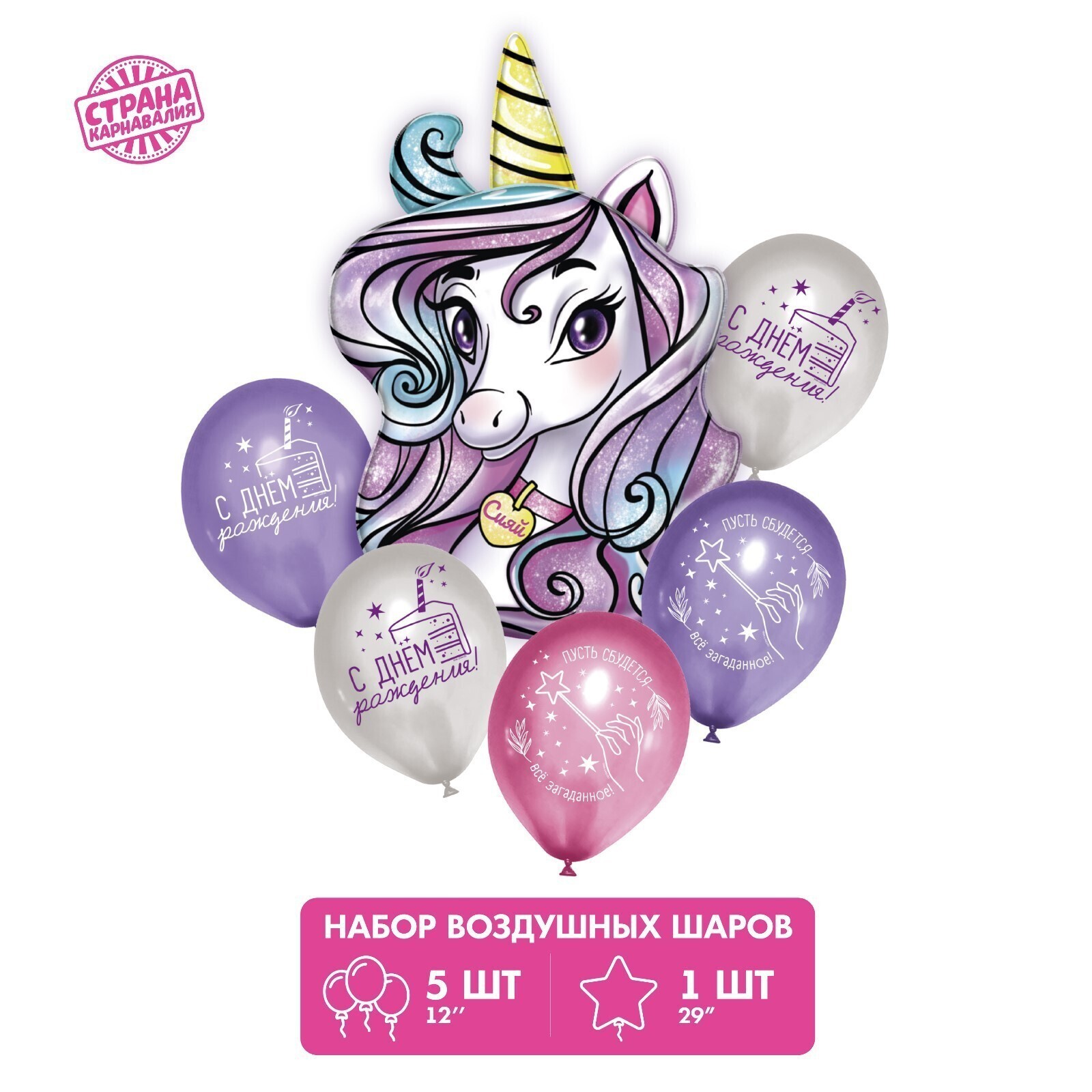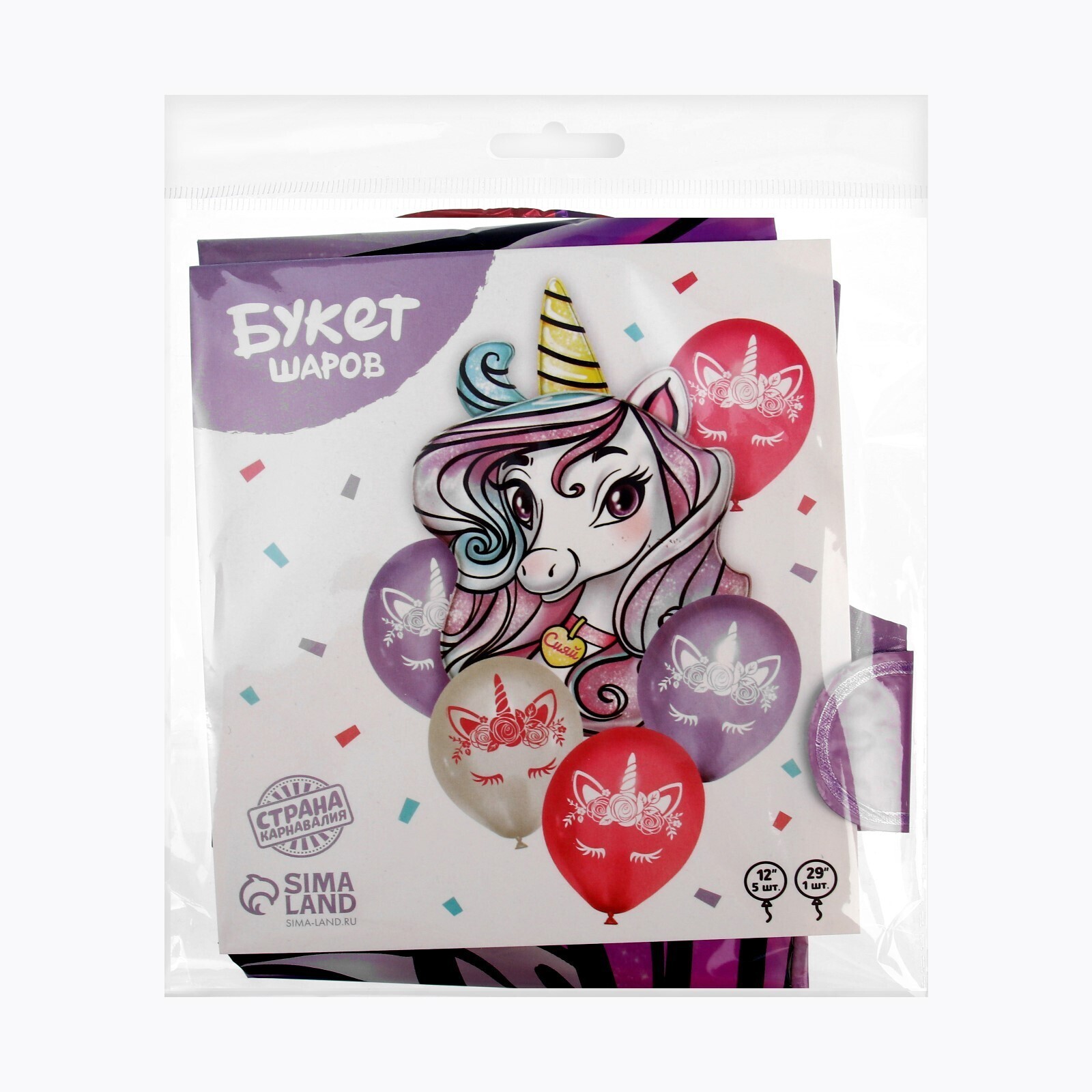 Букет из шаров "Единорог", фольга, латекс, набор из 6 шт.
