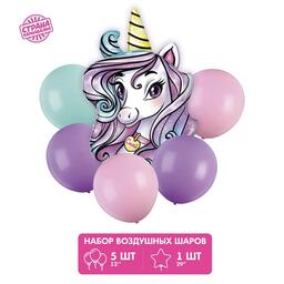 Букет из шаров "Единорог", макарун,фольга, латекс, набор из 6 шт.