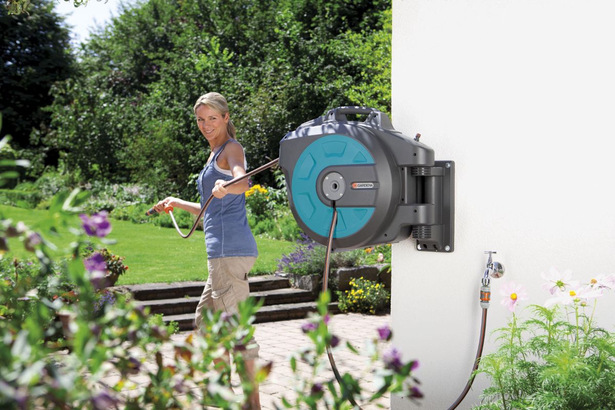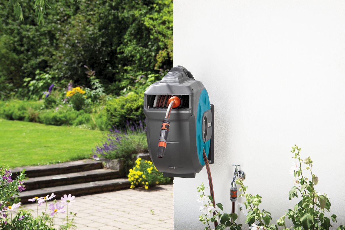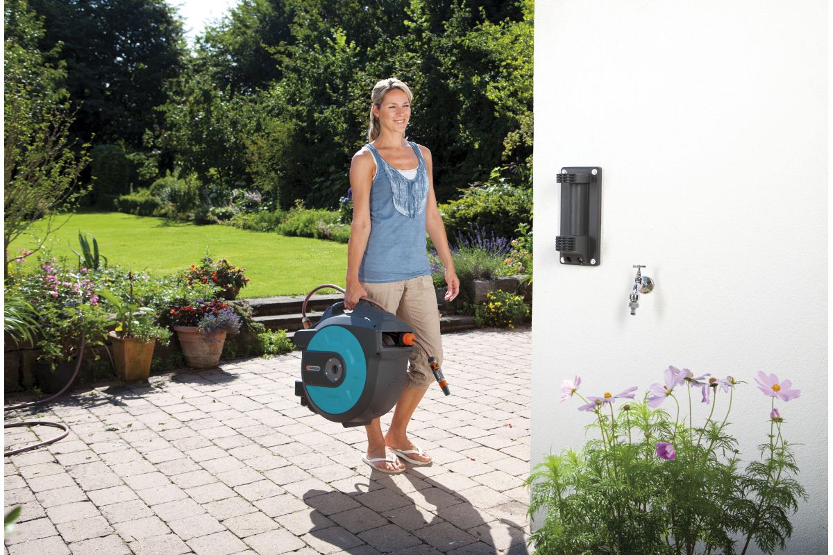 Катушка со шлангом настенная автоматическая GARDENA RollUp L (голубой цвет) GARDENA