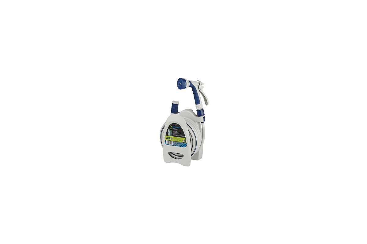 Компактная катушка GREEN APPLE предназначена для переноса и удобного размещения садового шланга. В комплектацию входит садовый шланг, 7-режимный пистолет-распылитель и набор для подключения.