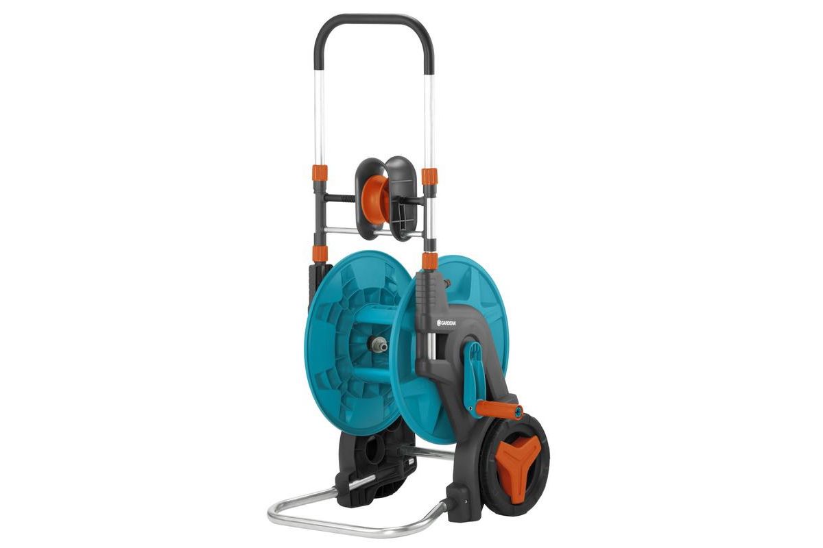 Тележка классической модели стала теперь более комфортной. Направляющая для шланга, расположенная над катушкой, обеспечивает оптимальную и аккуратную намотку шланга. Преимуществом тележки является то, что пользователю не требуется направлять шланг рукой, благодаря чему его руки остаются чистыми. Специальная форма опорной рамы обеспечивает высокую устойчивость тележки, благодаря чему ее не просто перевернуть, например, при натягивании шланга. По сравнению с предыдущей моделью устойчивость данной больше на 30%. Конструкция рукоятки позволяет настраивать ее в соответствии с ростом пользователя. Тележка легко перемещается по садовому участку. Приводная ручка может складываться, обеспечивая компактное хранение тележки. Вращающаяся ось предотвращает перекручивание шланга при его намотке и размотке. Встроенный механизм защиты от течи предотвращает вытекание воды из шланга по окончании его использования и в процессе транспортировки. Наличие шарнирного штуцера внутри катушки предотвращает перекручивание шланга, что гарантирует максимальный напор. Рифленые колеса обеспечивают простое и удобное перемещение тележки. Тележка для шланга 60 HG Classic GARDENA рассчитана на шланг длиной не более 60 м диаметром 13 мм (1/2 дюйма), шланг длиной не более 50 м диаметром 15 мм (5/8 дюйма) или шланг длиной не более 35 м диаметром 19 мм (3/4 дюйма). Такие характеристики позволяют использовать тележку на садовых участках средней и большой площади. Если вы хотите увеличить напор воды, то тележку можно подсоединить к системе ''Профи'' GARDENA с помощью резьбового штуцера ''Профи'' Maxi-Flow (арт. 2801). С такой тележкой процесс полива может быть абсолютно простым.