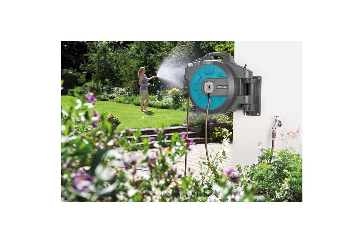 Катушка со шлангом настенная автоматическая GARDENA RollUp XL (голубой цвет) GARDENA