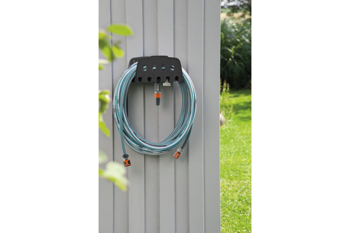 Для хранения садовых инструментов. Макс.длина шланга на катушке: 13 мм – 35 м, 15 мм – 25 м, 19 мм – 20 м. Возможность хранения насадок и соединителей на кронштейне.