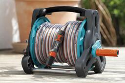 Комплект предназначен для совсем небольших садовых участков, террас или балконов. Эргономичная ручка повышает удобство транспортировки и позволяет использовать комплект в любом месте. Наличие приводной ручки облегчает эксплуатацию катушки. Ручку при необходимости можно сложить, что обеспечивает компактное хранение. Боковые стороны катушки имеют треугольную форму и низкий центр тяжести, обеспечивая ее высокую устойчивость (опрокинуть катушку сложно). Все указанные преимущества превращают полив в сплошное удовольствие.