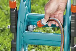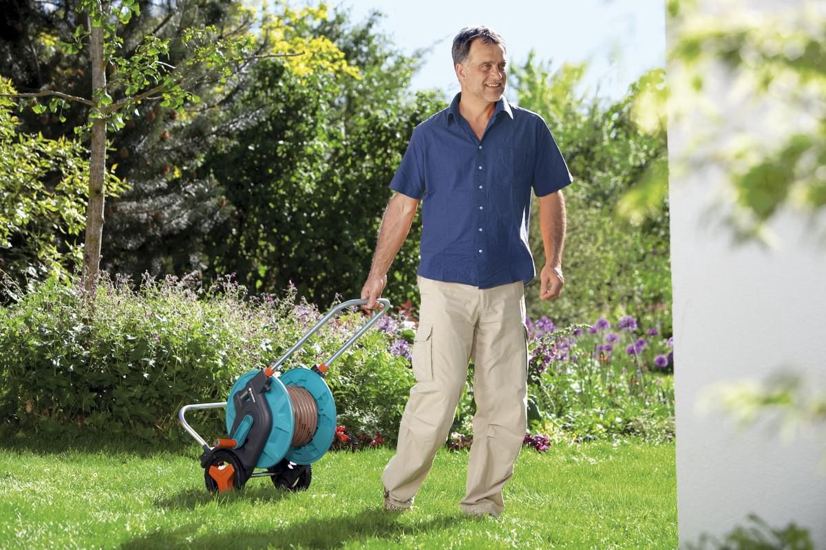 Тележка для шланга 60 TS Classic GARDENA действительно облегчает полив. Тележка снабжена шлангом длиной 20 м и диаметром 13 мм (1/2 дюйма), соединительными элементами Original GARDENA System (арт. 915 и 913), наконечником для полива Classic (арт. 8114) и резьбовыми штуцерами с резьбой различного размера для подсоединения к водопроводному крану. В комплект включены все элементы, необходимые для простого подключения шланга к крану или наконечнику для полива. Опоры специальной формы обеспечивают высокую устойчивость и безопасность использования тележки, благодаря чему тележку не просто перевернуть, например, при натягивании шланга. По сравнению с предыдущей моделью устойчивость данной больше на 30%. Ещё одной отличительной чертой является рукоятка специальной инновационной конструкции, регулируемая по высоте. Рукоятка выдвигается в соответствии с ростом пользователя и может складываться в целях компактного хранения. Приводная ручка также может складываться, обеспечивая компактное хранение тележки. Вращающаяся ось предотвращает перекручивание шланга при его намотке и размотке. Встроенная заглушка предотвращает вытекание воды из шланга по окончании его использования и в процессе транспортировки. Благодаря соединителю для шланга, расположенному под углом внутри барабана, шланг не перекручивается, что гарантирует максимальный напор. Рифленые колеса обеспечивают простое и удобное перемещение тележки. Если вы хотите увеличить напор воды, то тележку можно подсоединить к системе ''Профи'' GARDENA с помощью резьбового штуцера ''Профи'' Maxi Flow (арт. 2801). Вы получите удовольствие от полива.