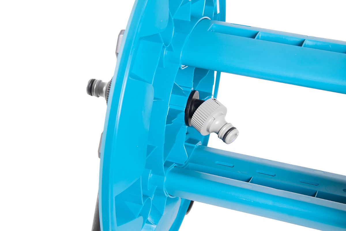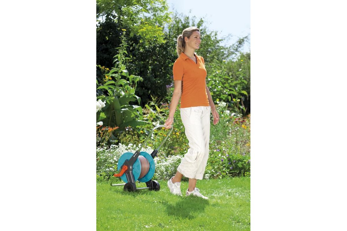 Размещения шланга на катушке предотвратит растения на грядках и клумбах от повреждений.