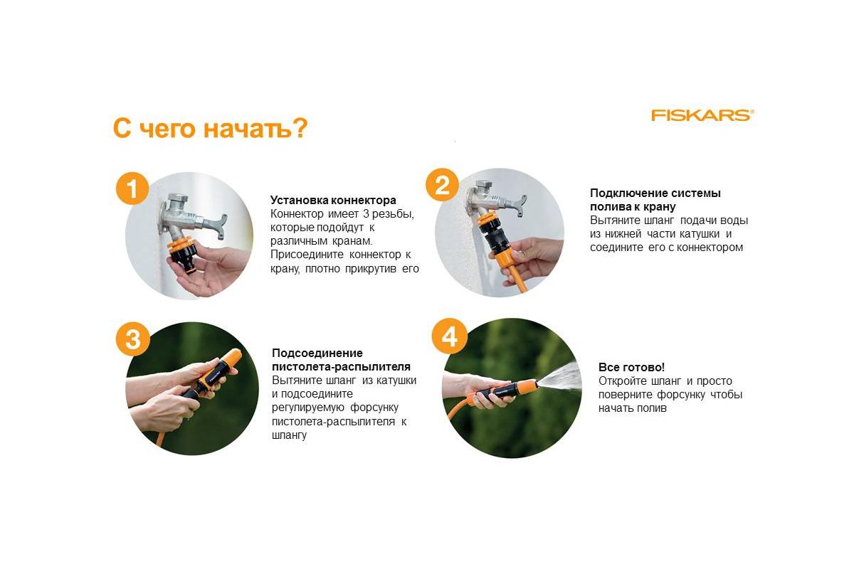 Катушка FISKARS 1020436 со шлангом Ф3/8'' (9мм) 15м и набором аксессуаров