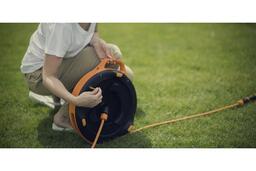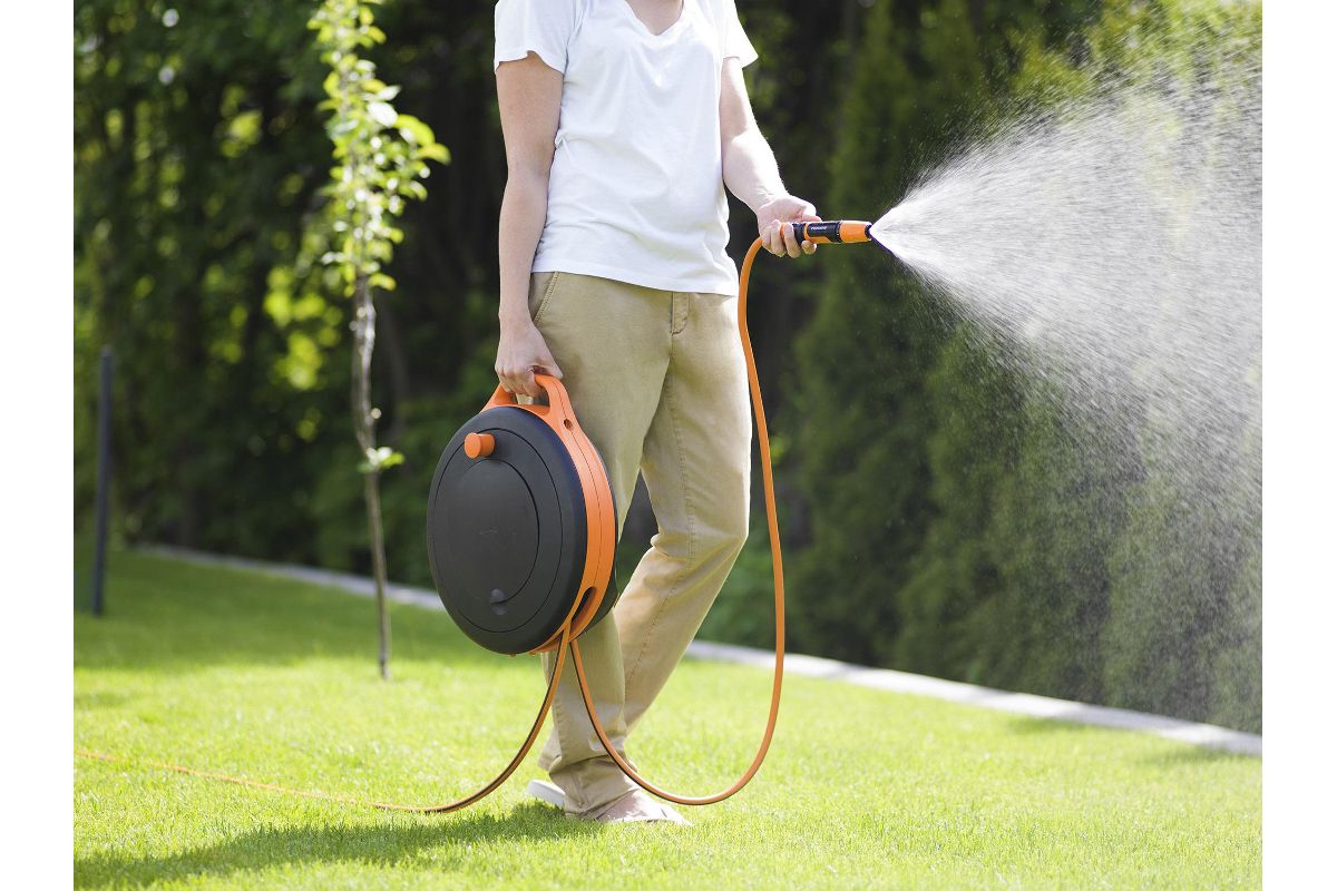 - Катушка со шлангом и набором коннекторов включает в себя все необходимое, чтобы начать полив сада. Компактная и маневренная катушка для удобного передвижения по саду, все аксессуары хранятся внутри нее и совместимы с продукцией других производителей;