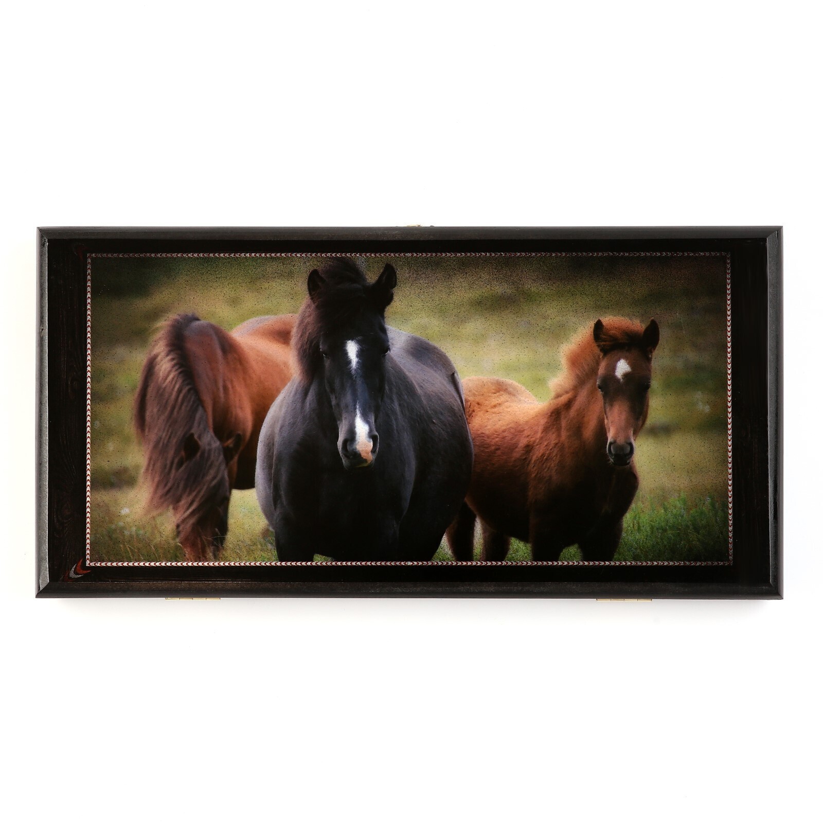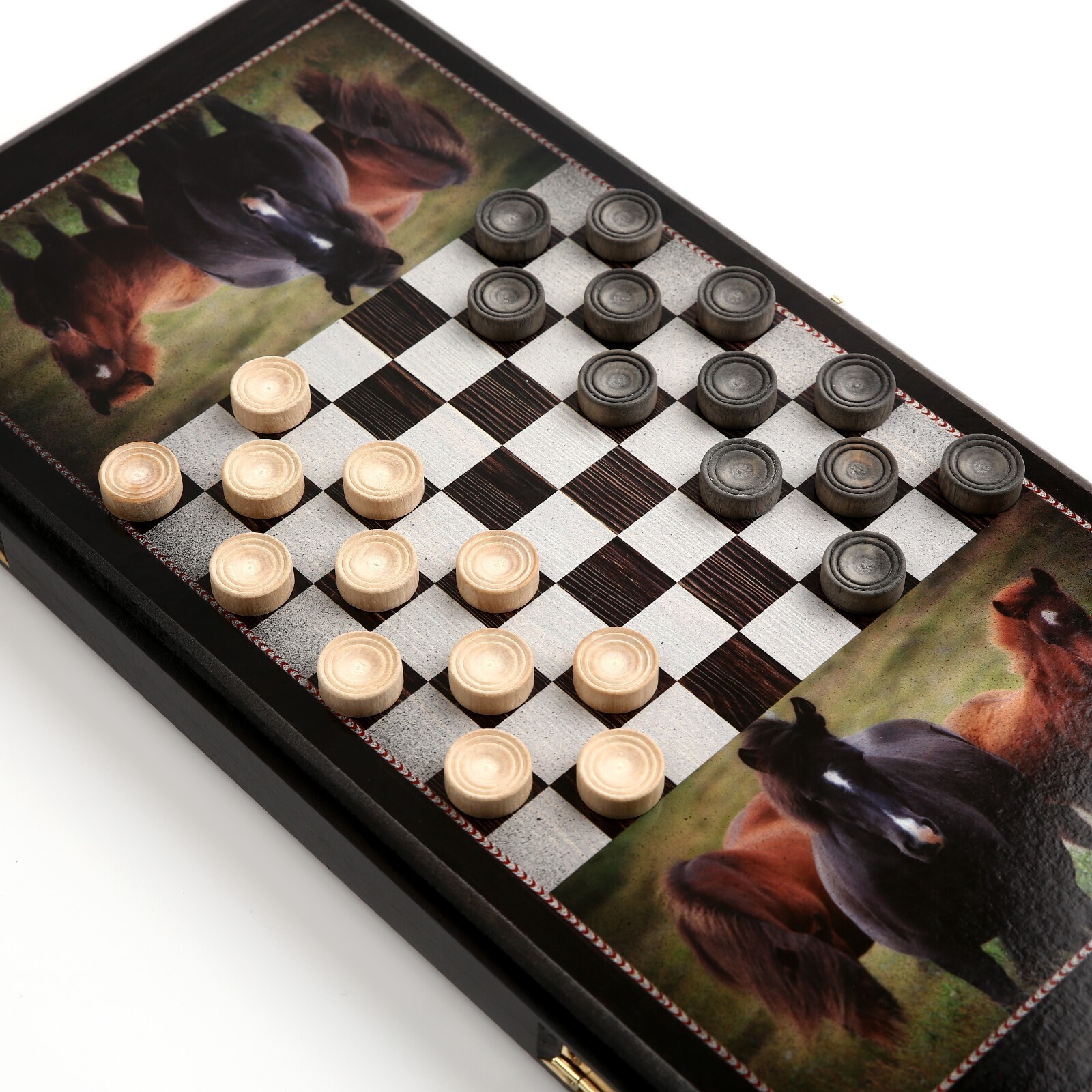 Нарды "Кони", деревянная доска 40 x 40 см, с полем для игры в шашки