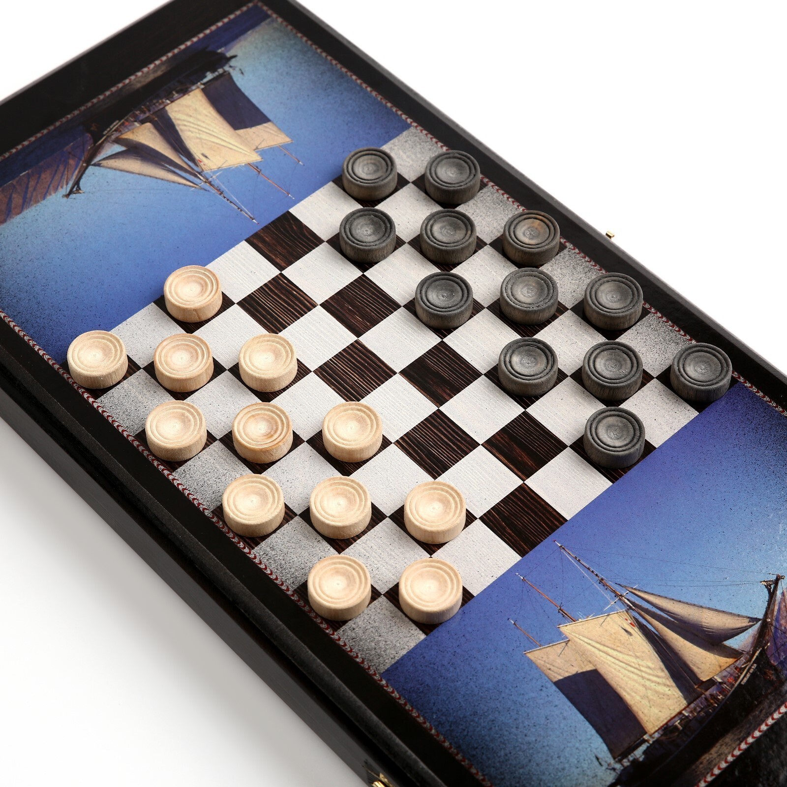 Нарды "Корабль", деревянная доска 40 x 40 см, с полем для игры в шашки