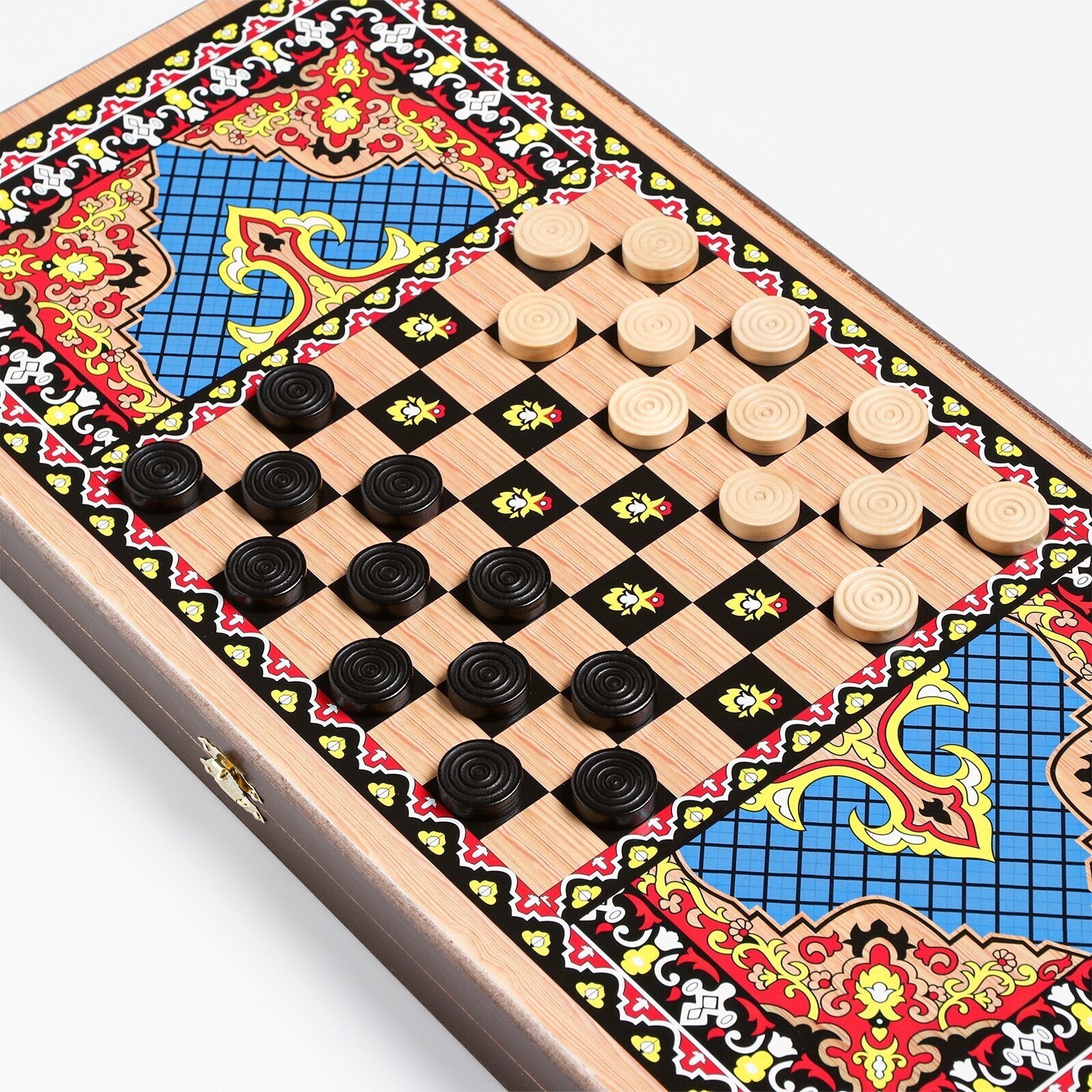 Нарды "Голубой узор", деревянная доска 50 х 50 см, с полем для игры в шашки