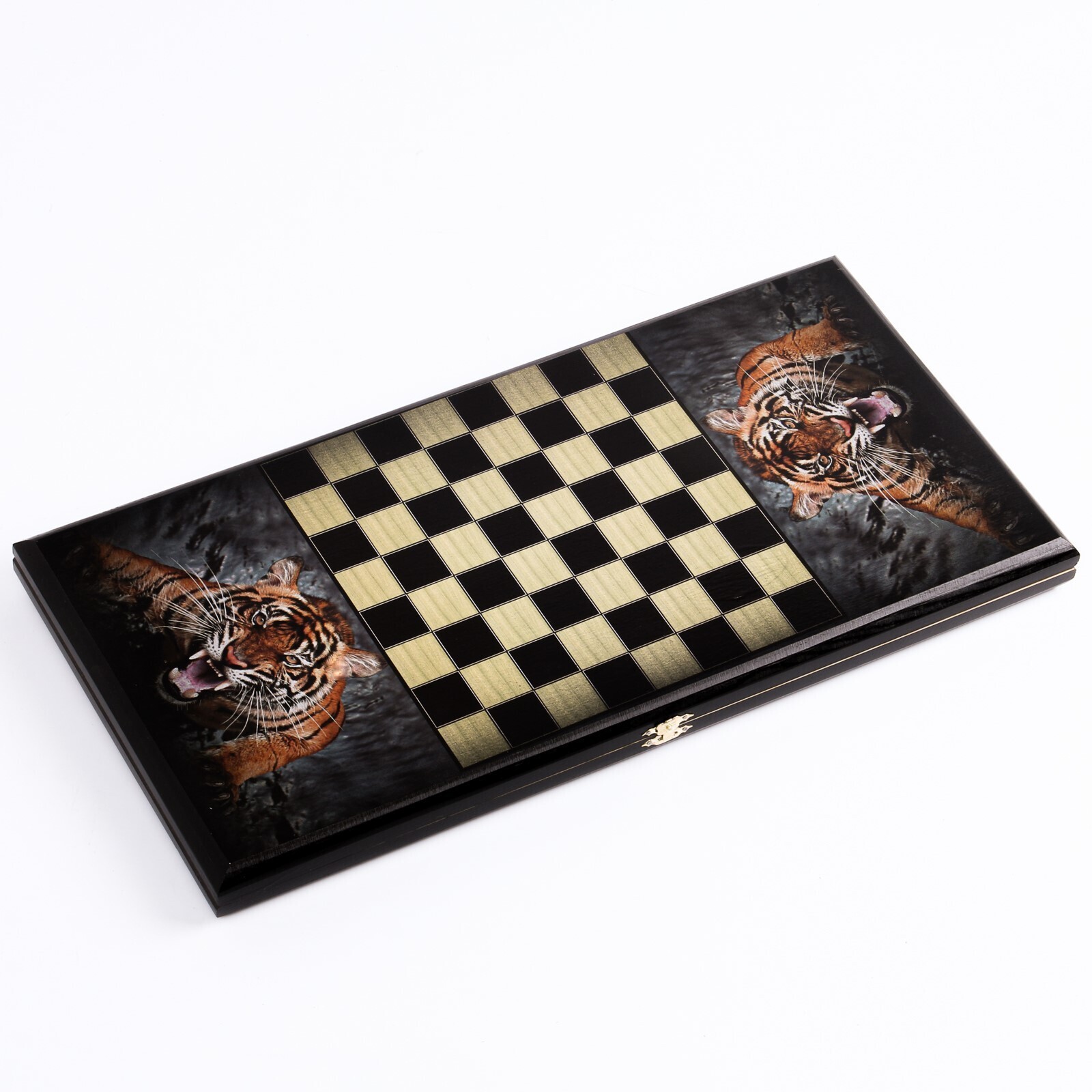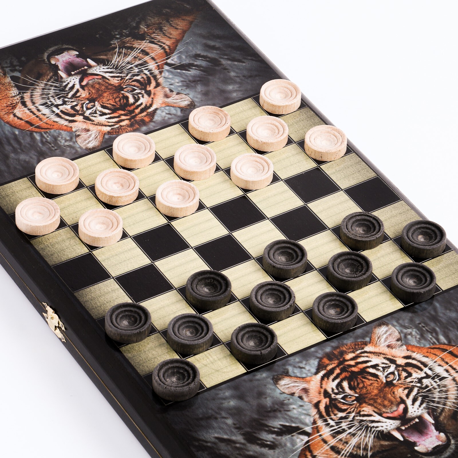 Нарды "Оскал тигра", деревянная доска 50 x 50 см, с полем для игры в шашки