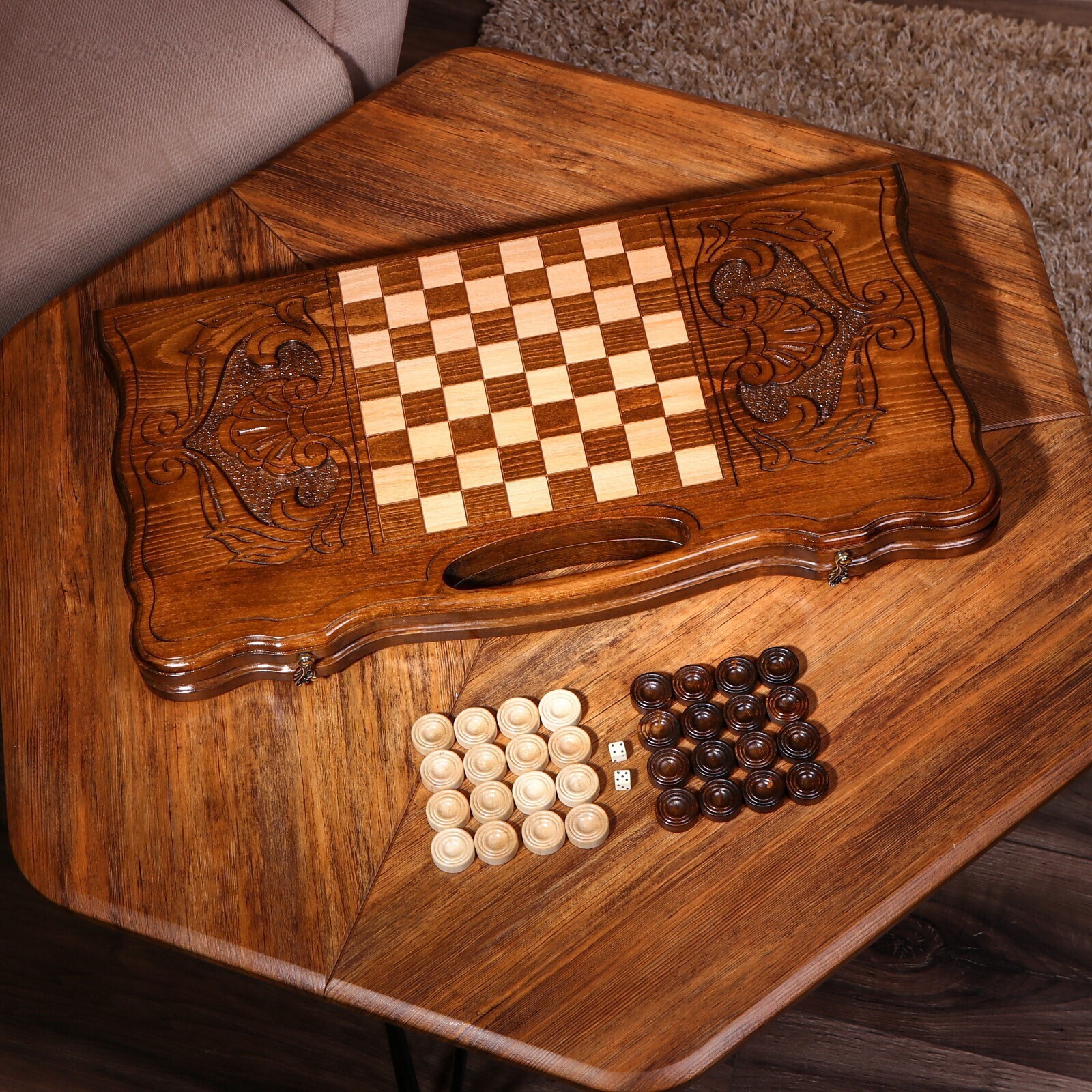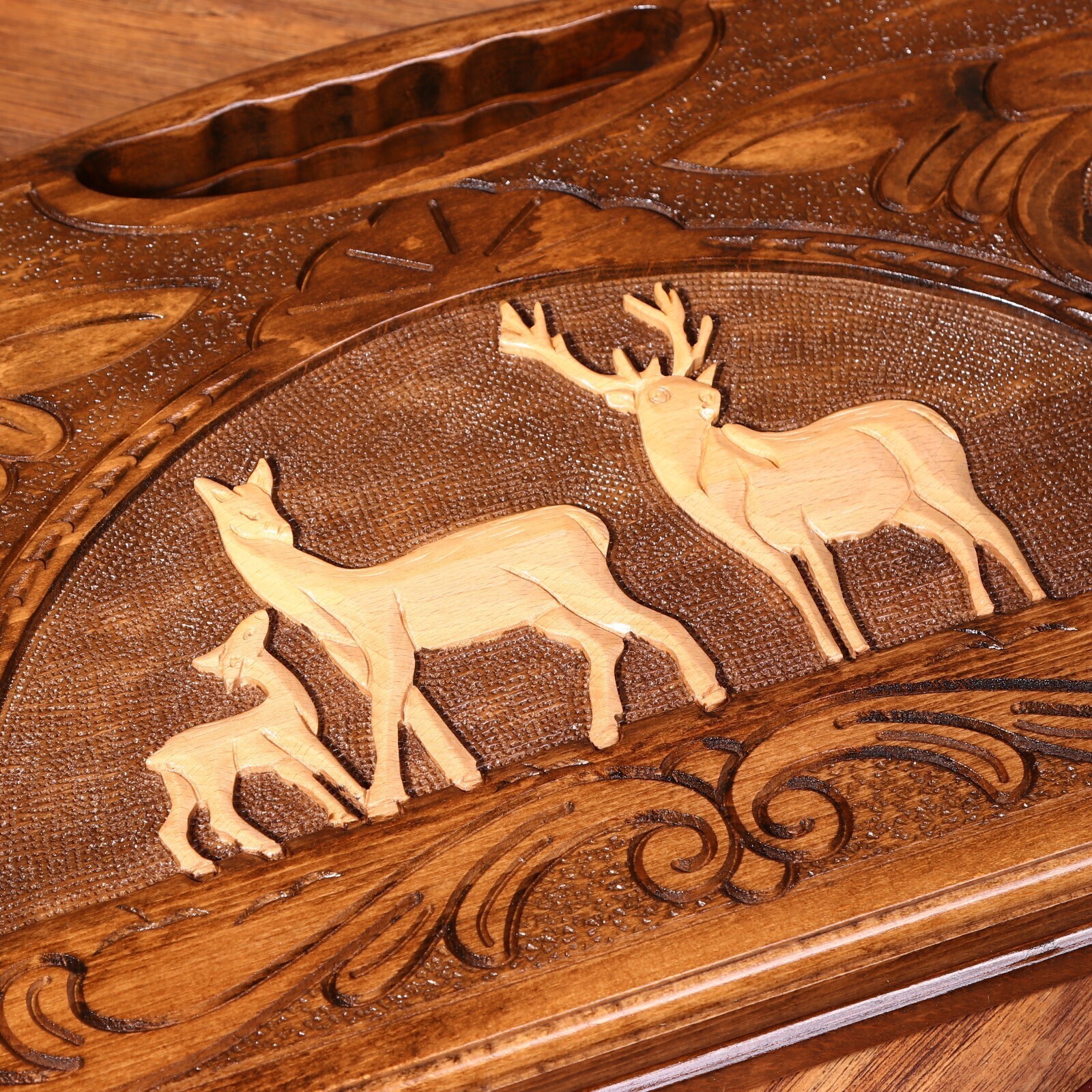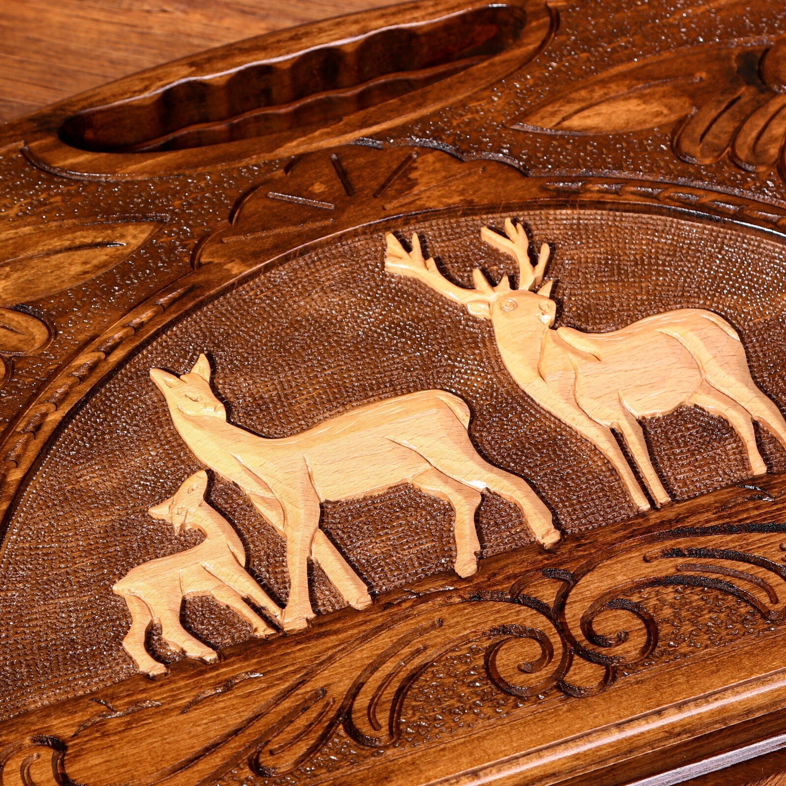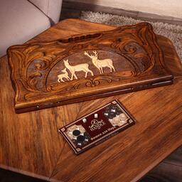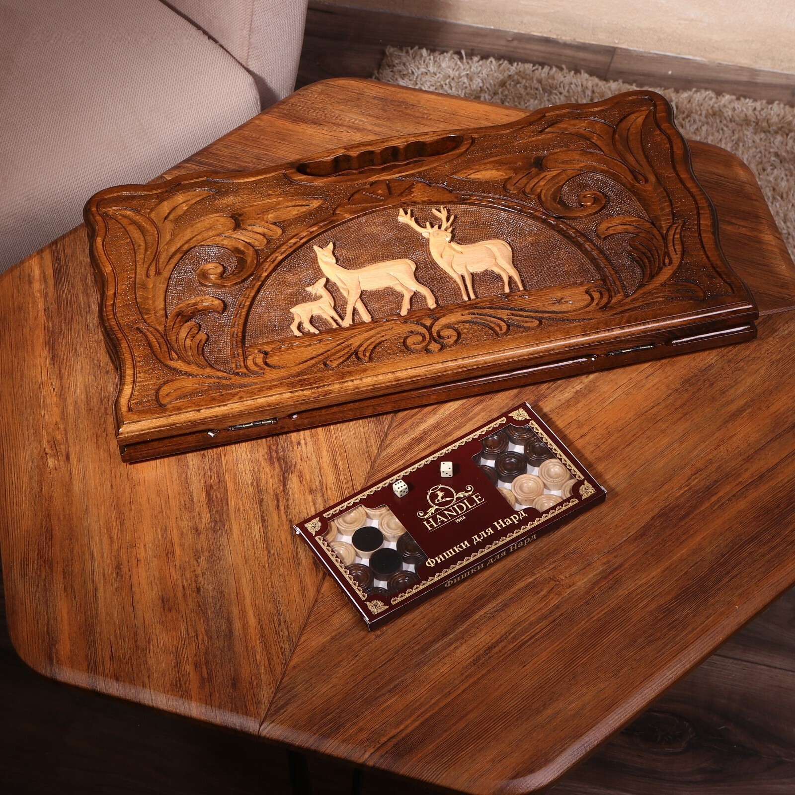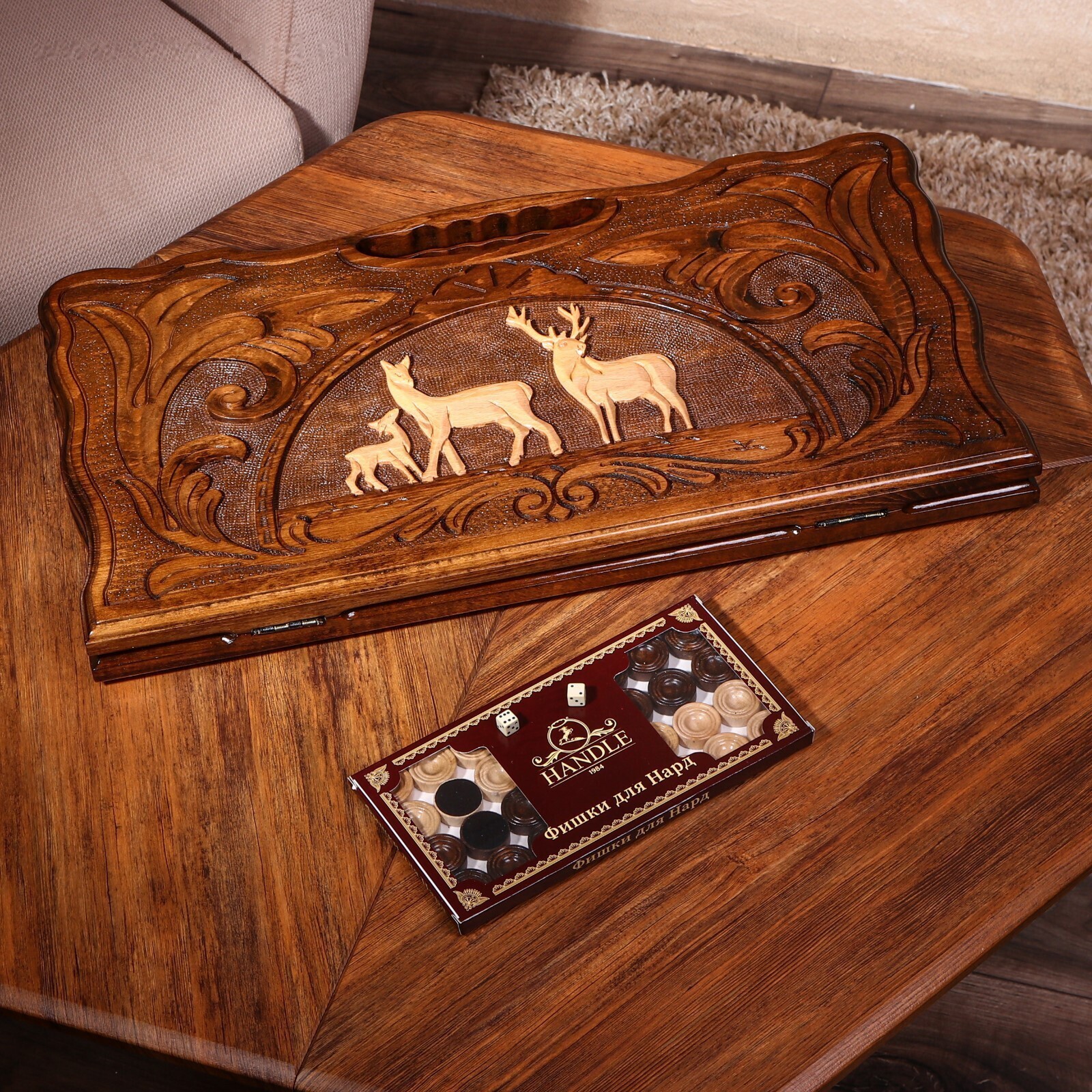 Нарды ручной работы "Олени", глубокая резка, с ручкой, 60х30 см, с шахматным полем, массив ореха, Армения