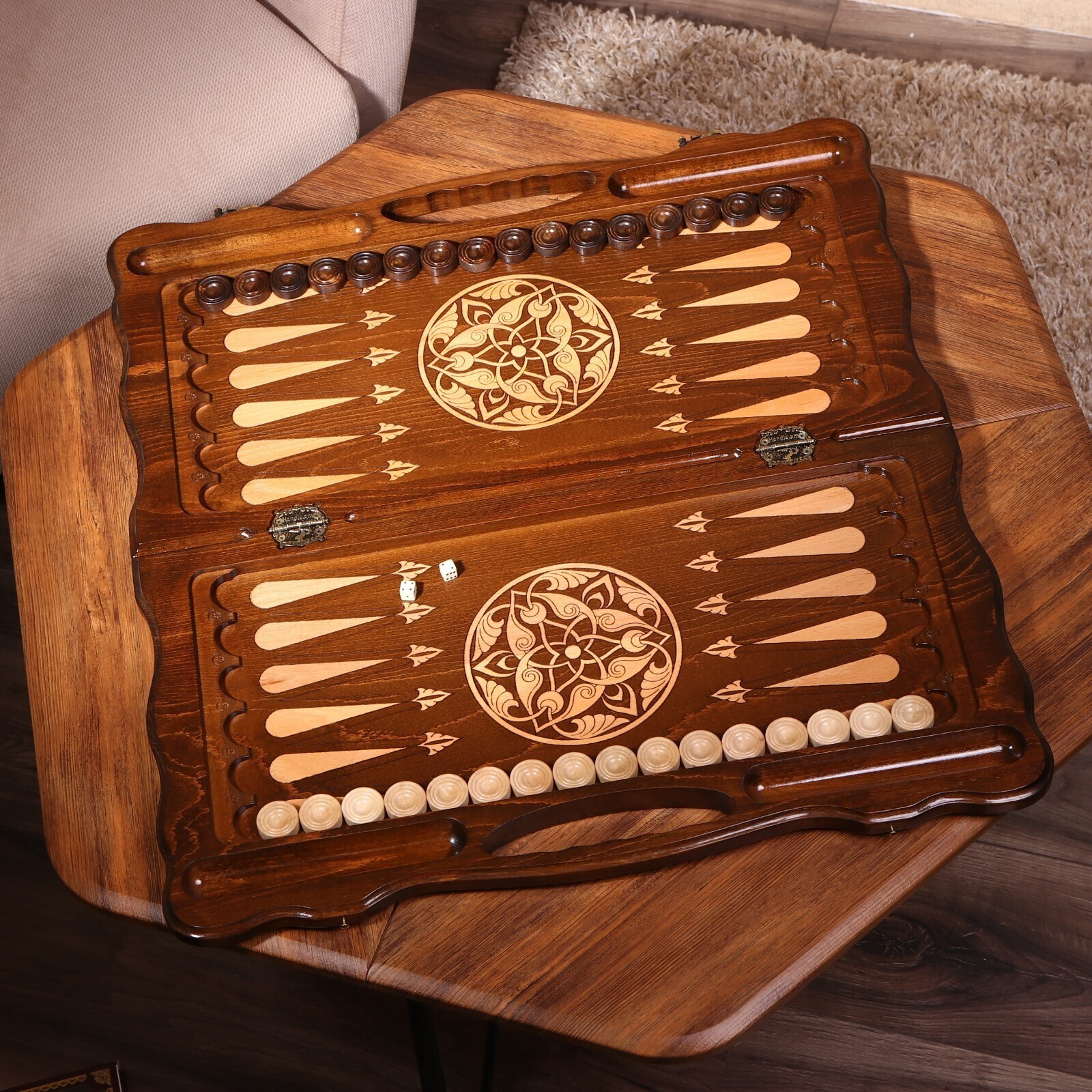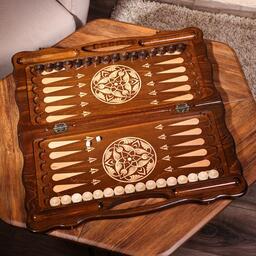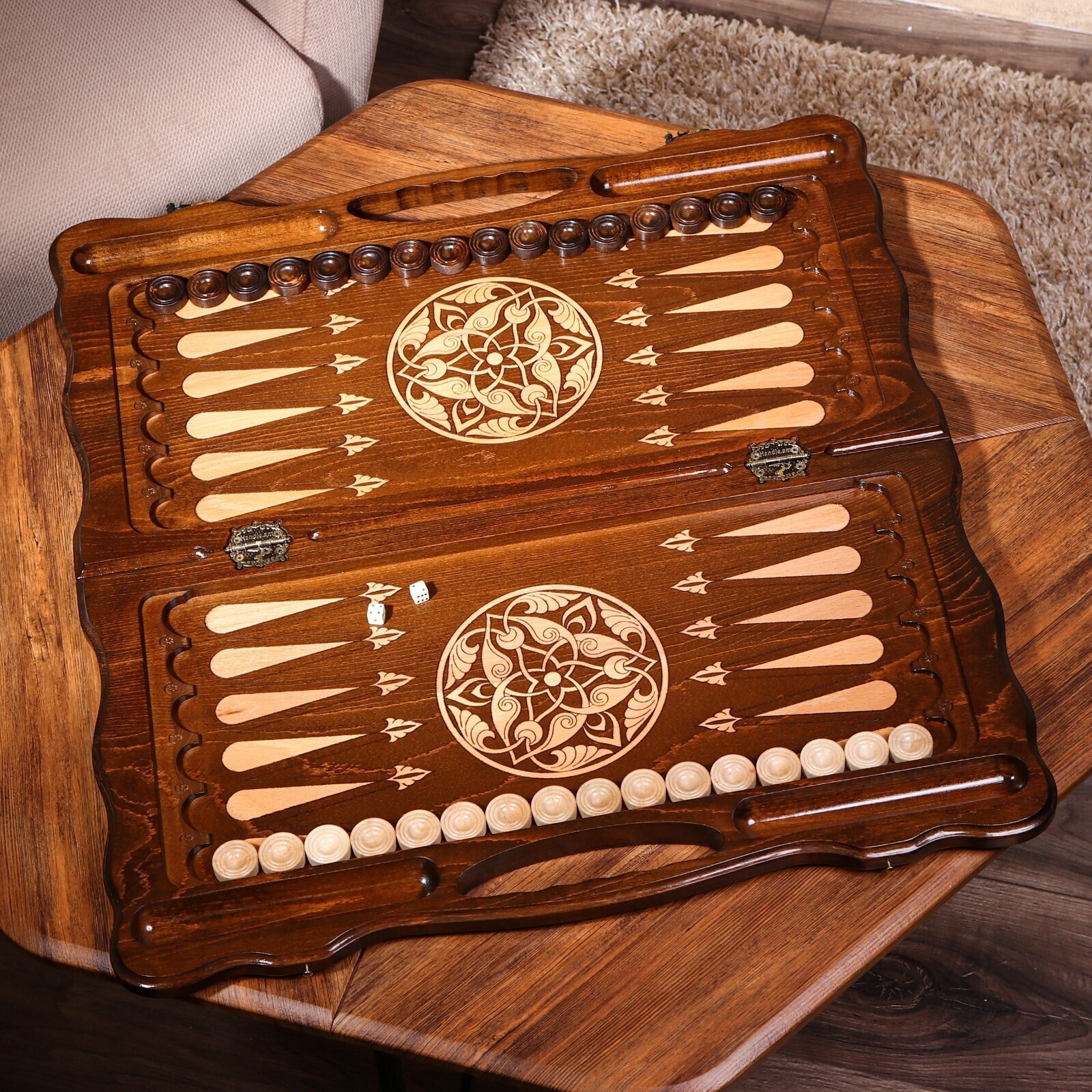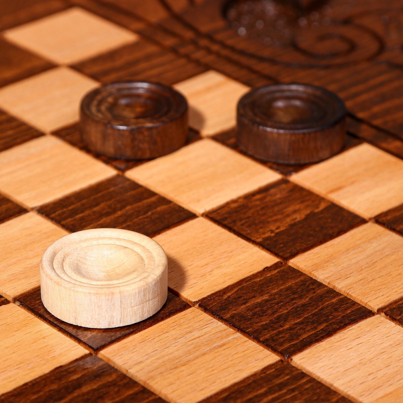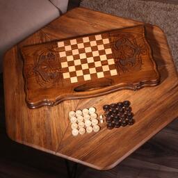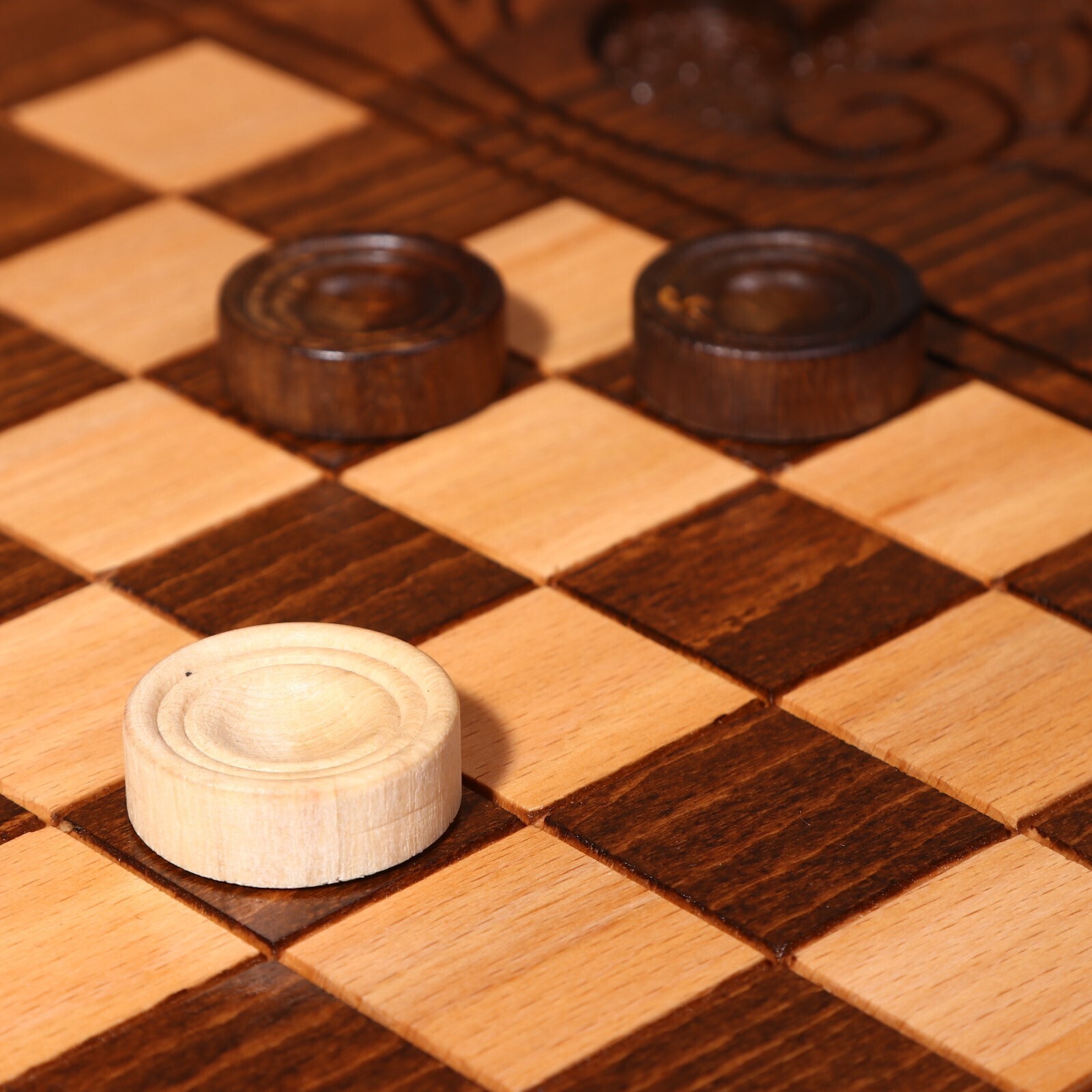 Нарды ручной работы "Олени", глубокая резка, с ручкой, 60х30 см, с шахматным полем, массив ореха, Армения