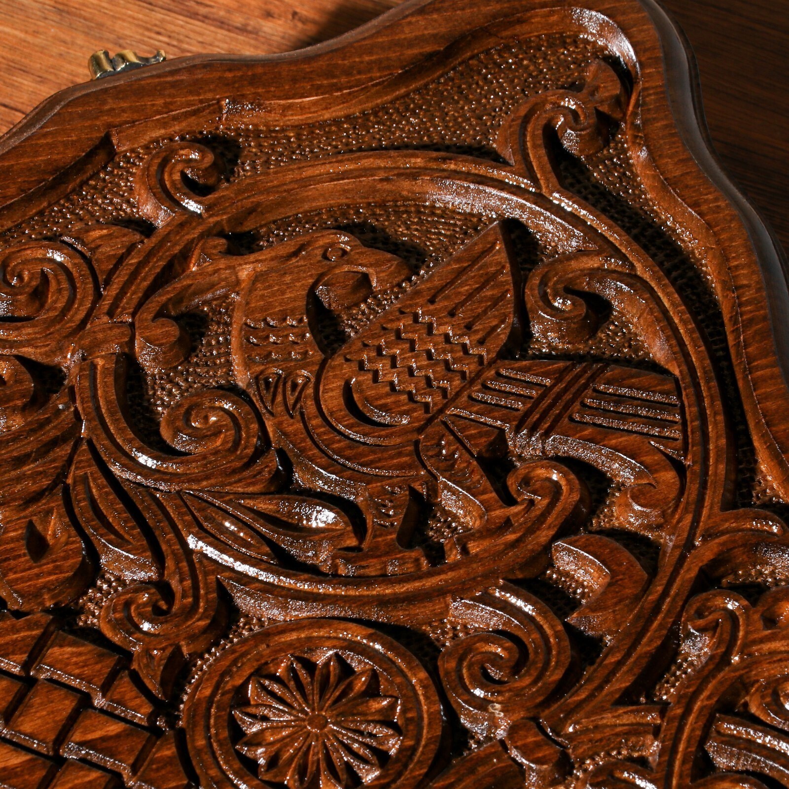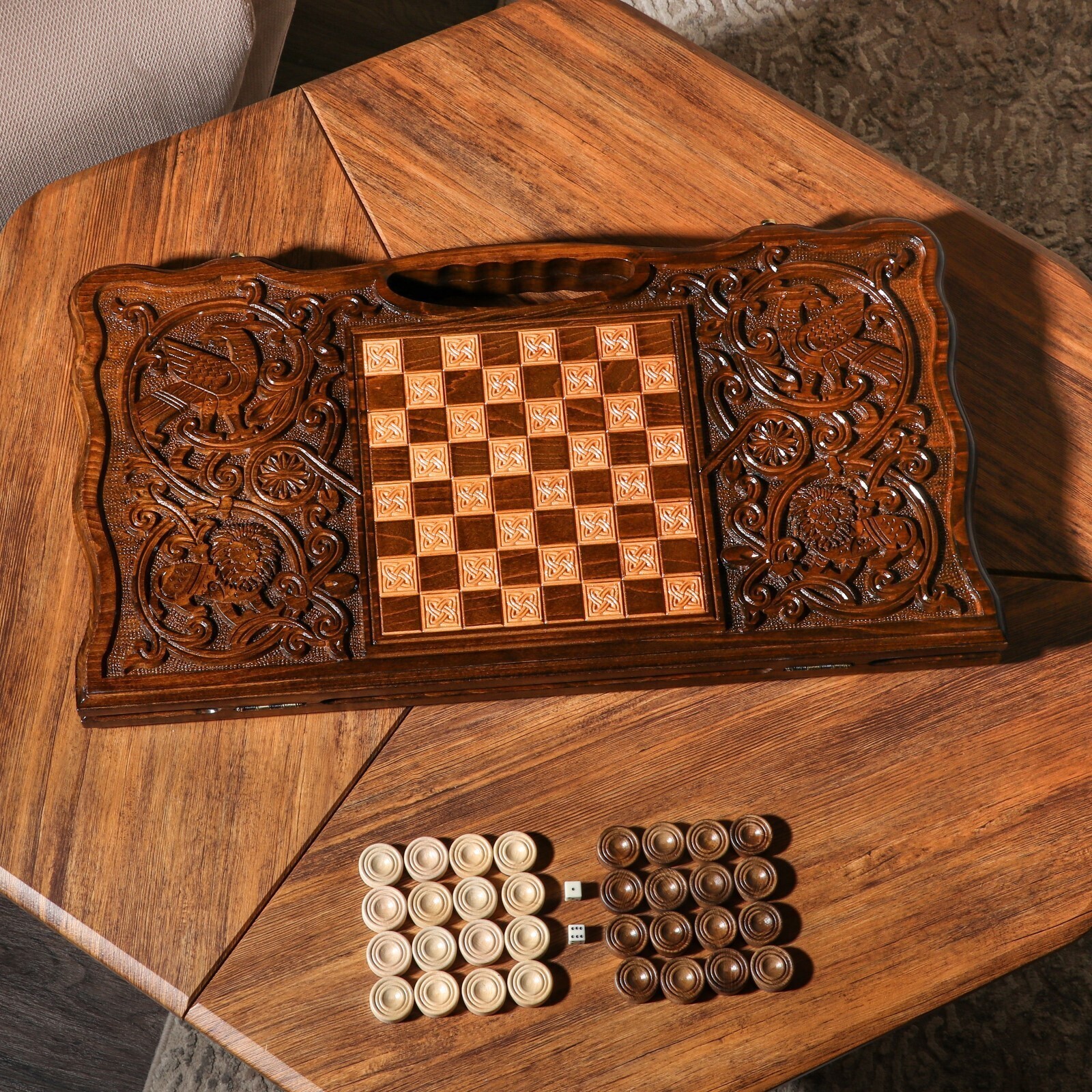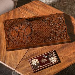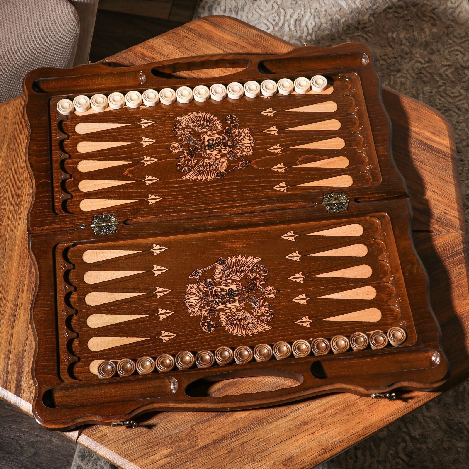 Нарды ручной работы "Герб России", глубокая резка, с ручкой, 60х30 см, с шахматным полем, Армения