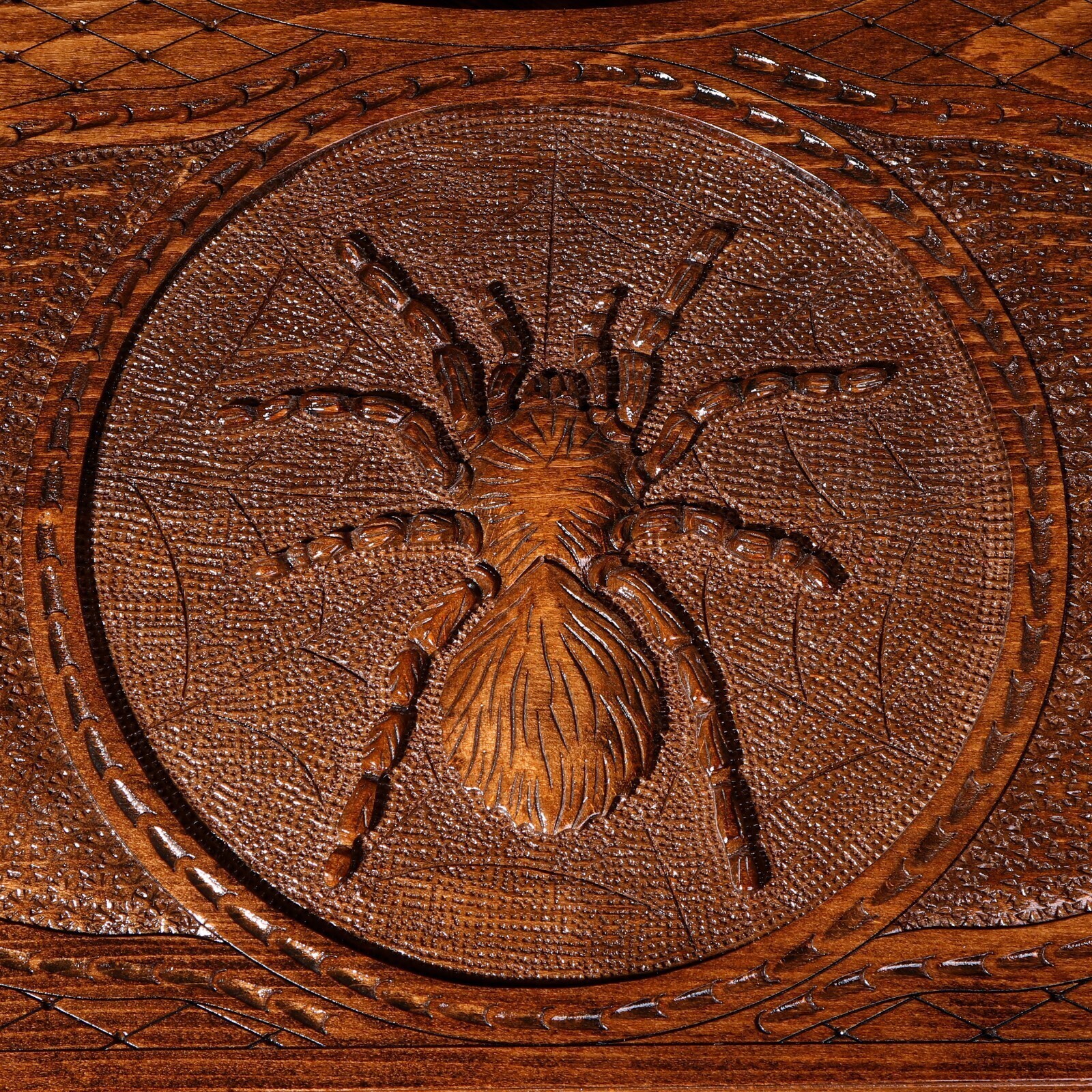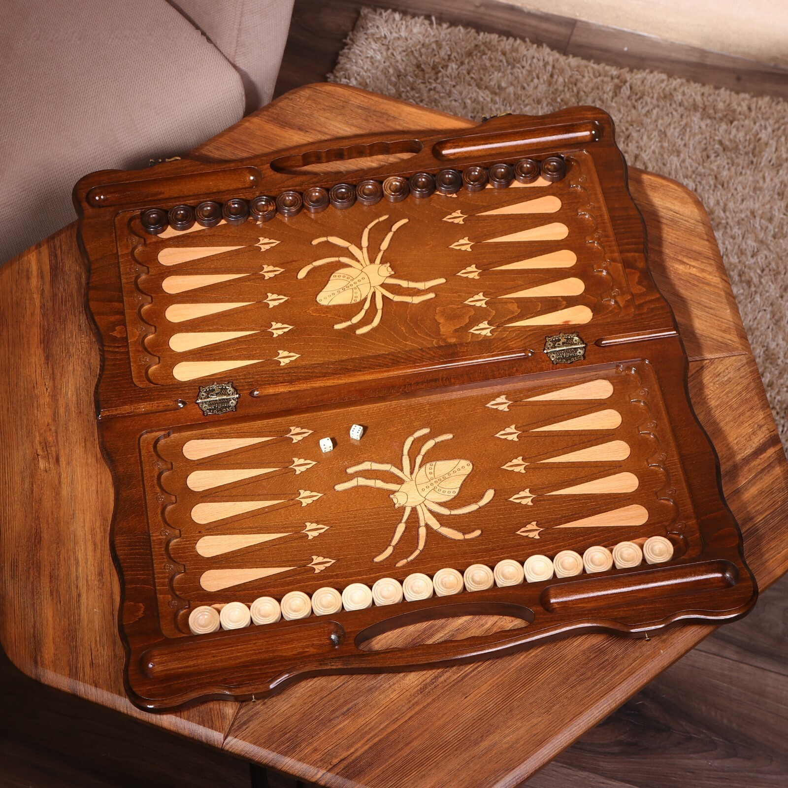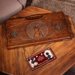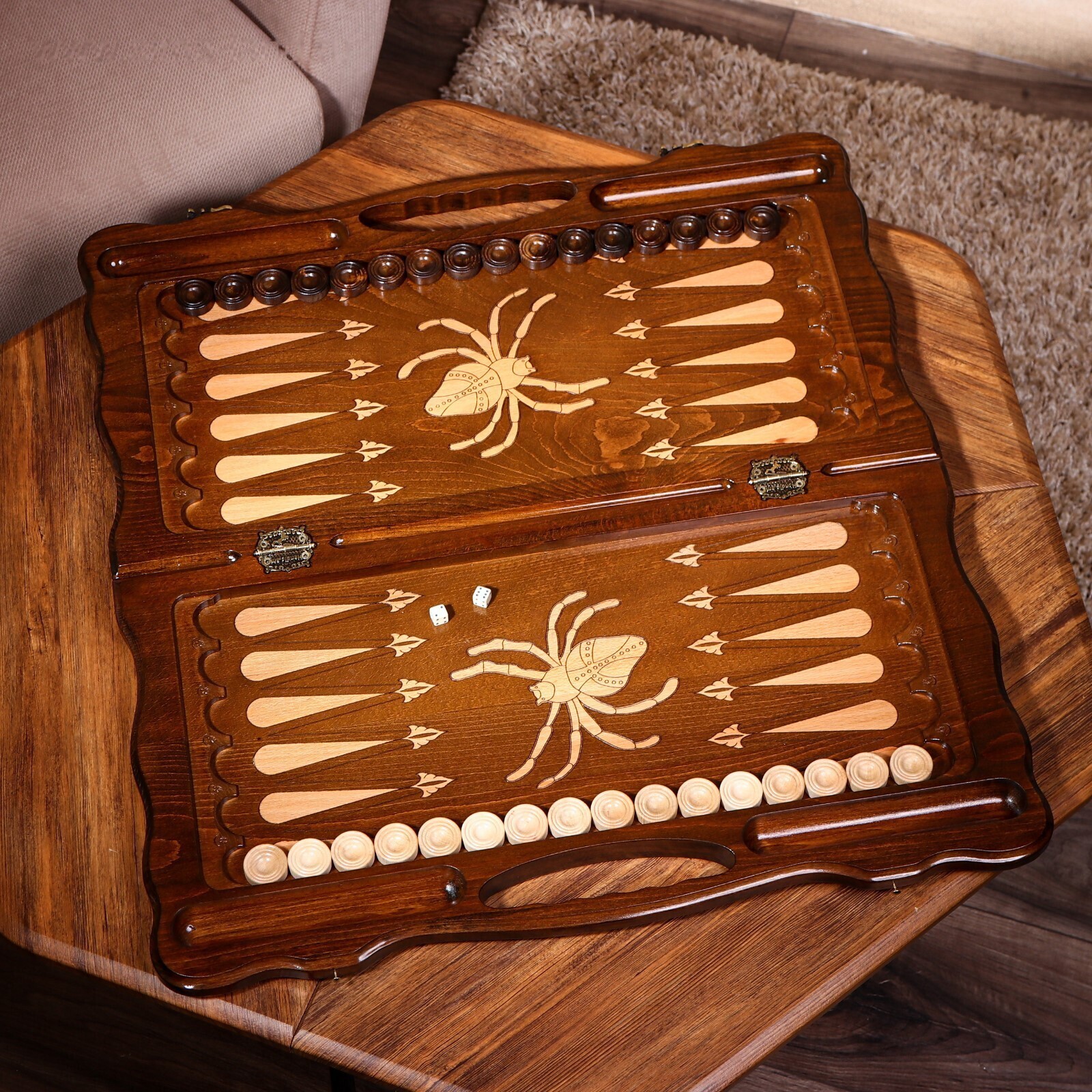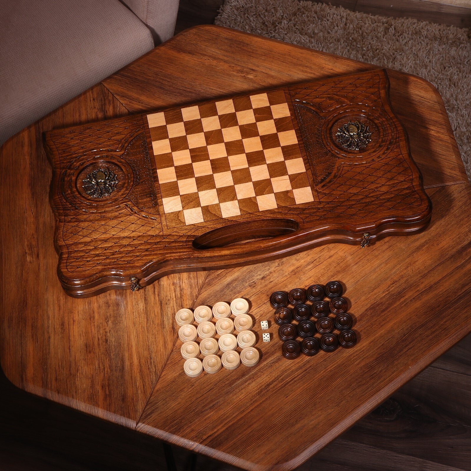 Нарды ручной работы "Паук", глубокая резка, с ручкой, 60х30 см, с шахматным полем, массив ореха, Армения