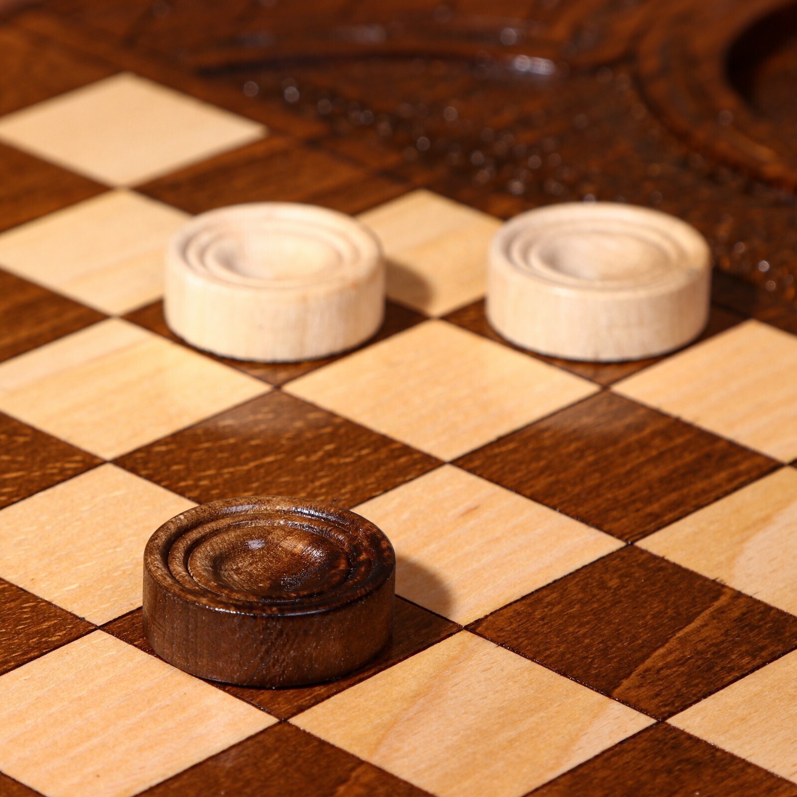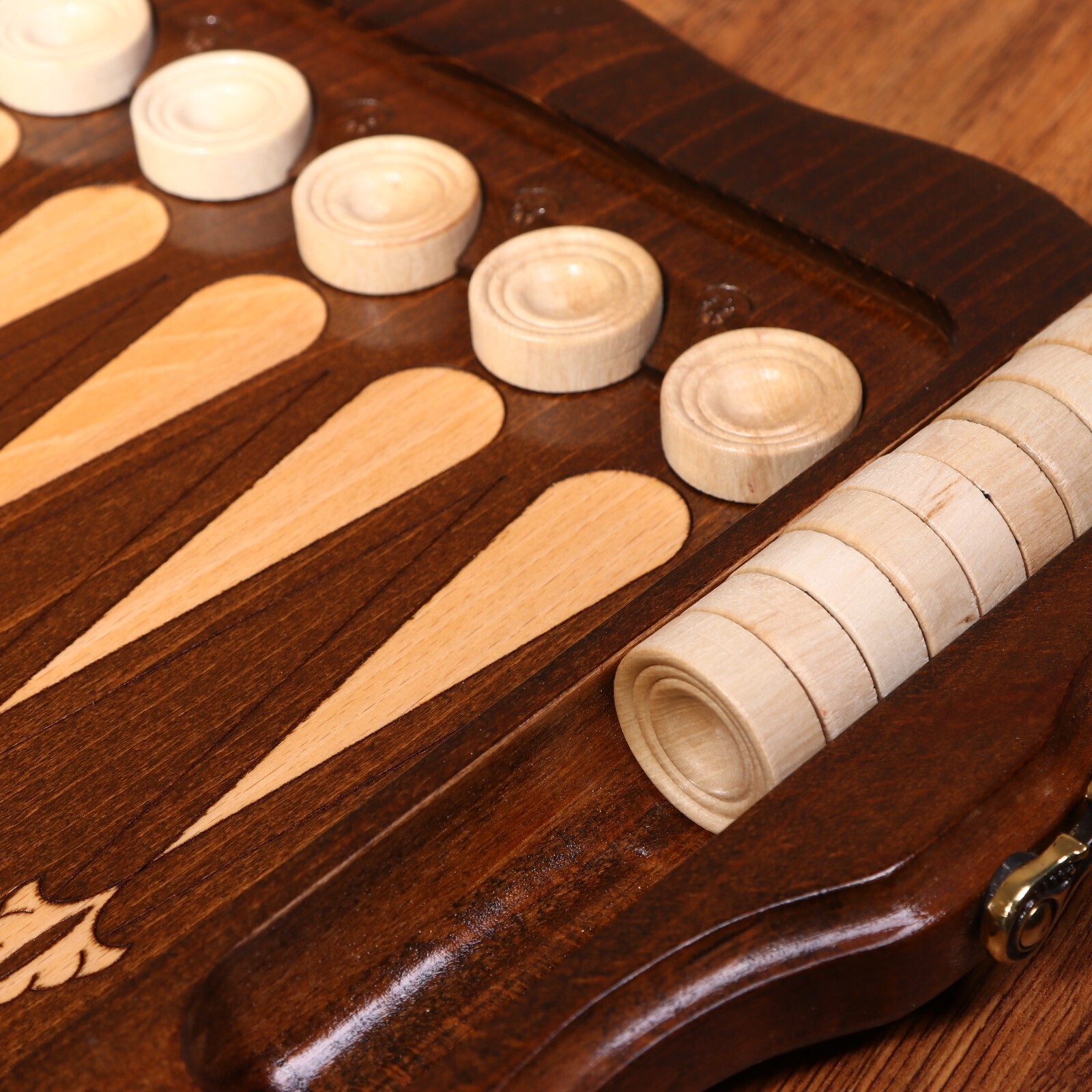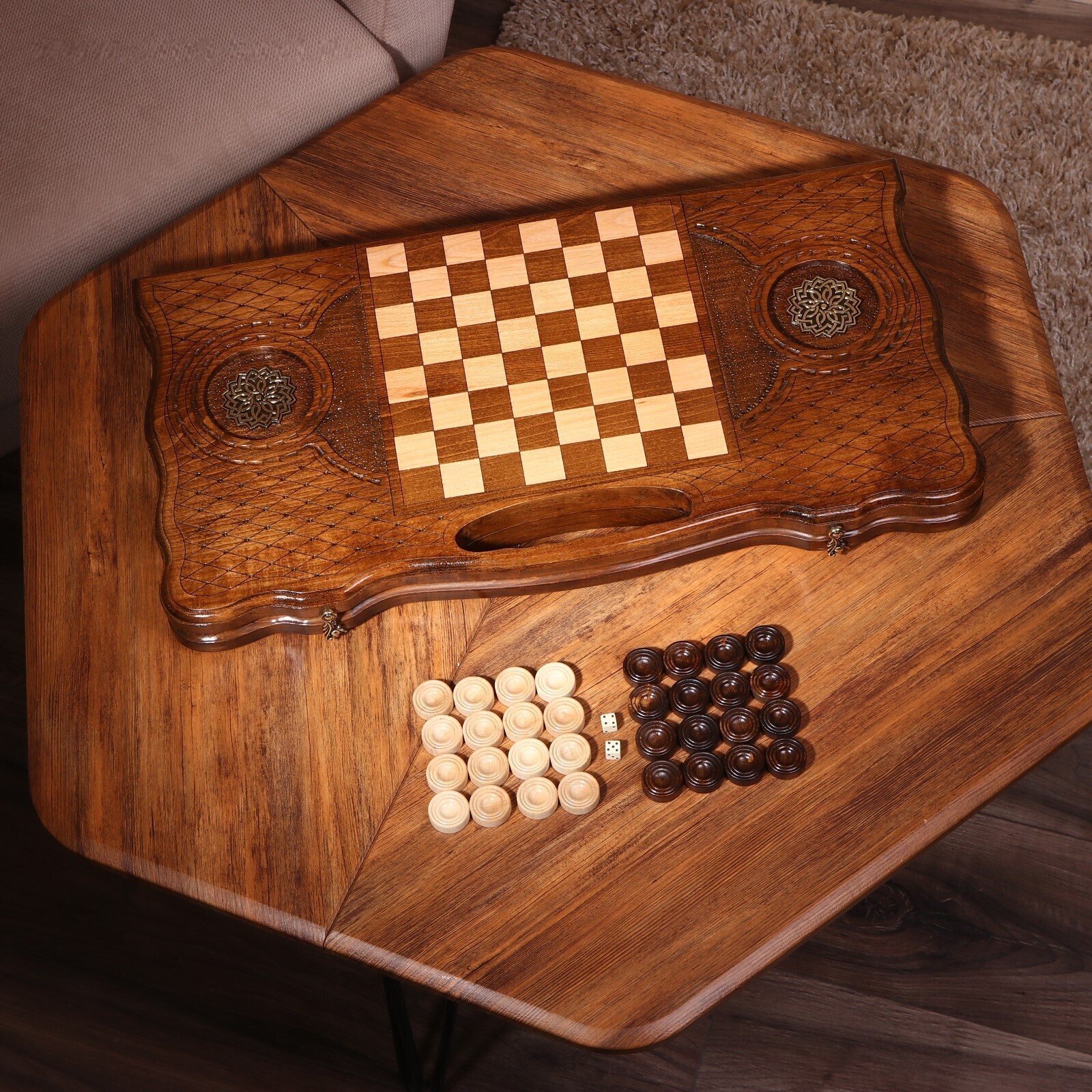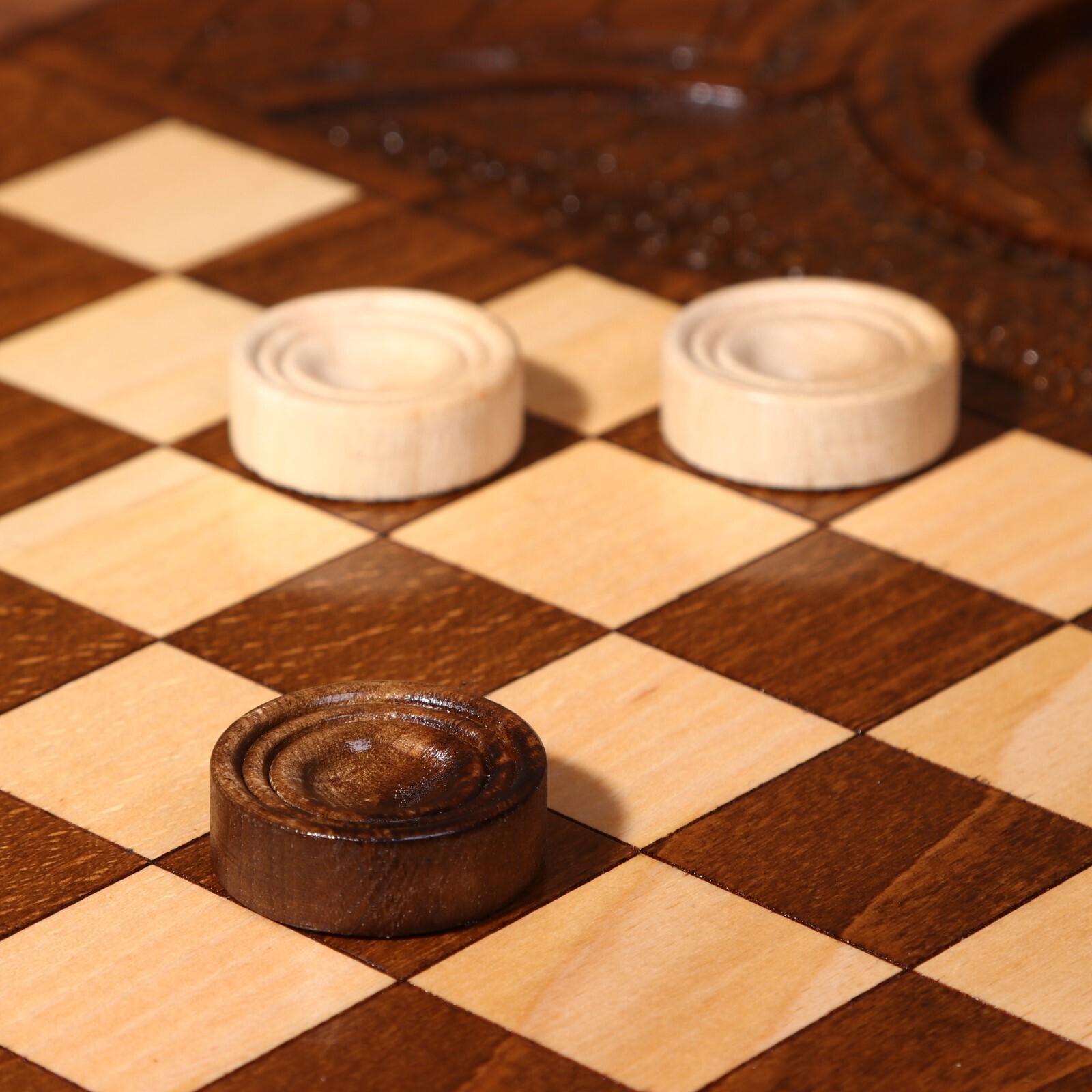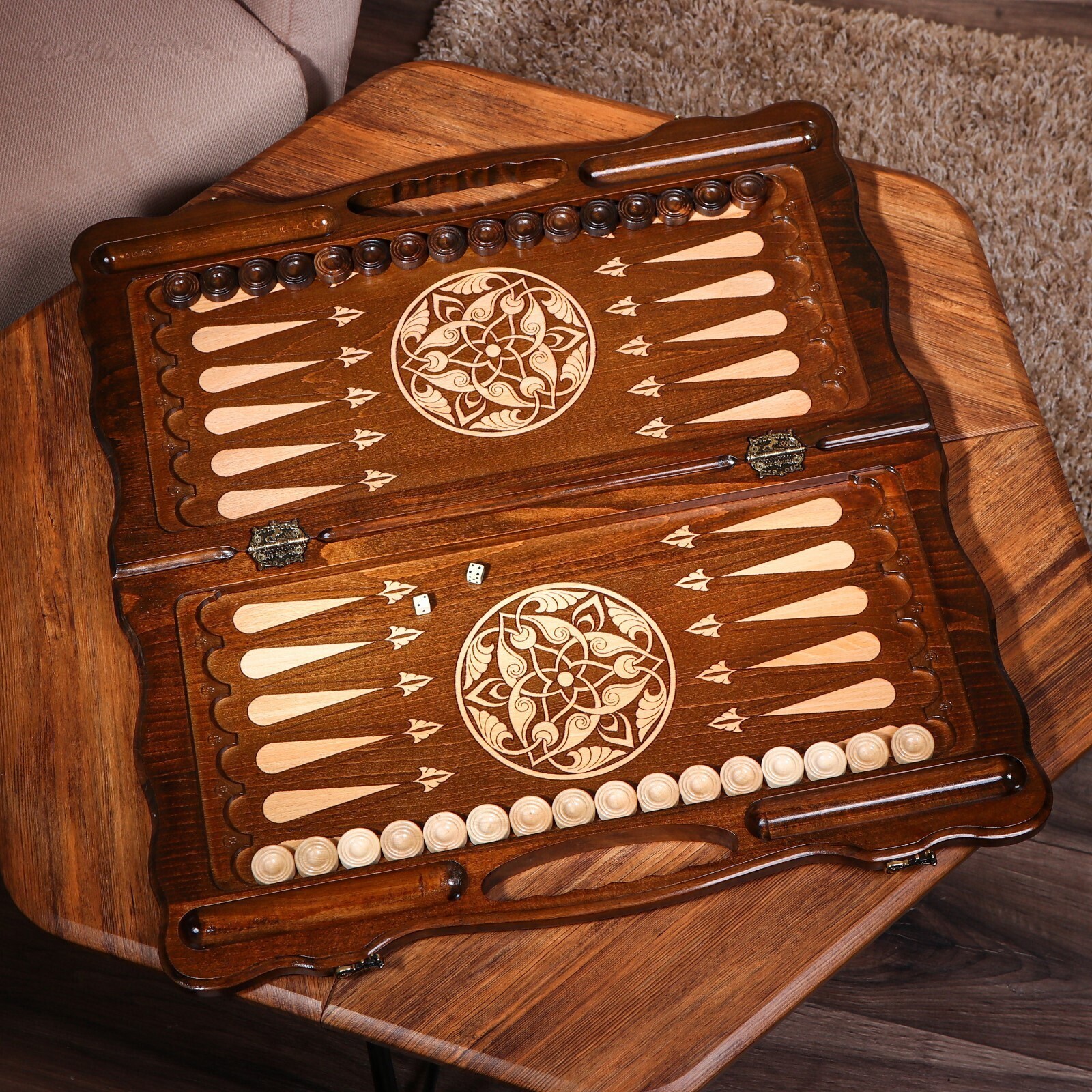 Нарды ручной работы "Узор 2", глубокая резка, с ручкой, 60х30 см, с шахматным полем, массив ореха, Армения