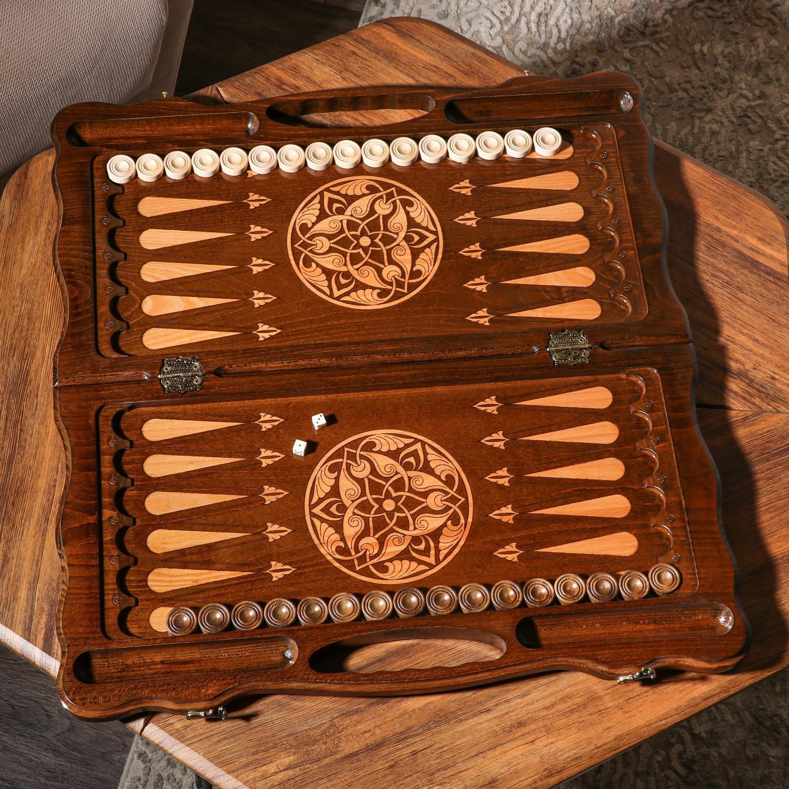 Нарды ручной работы - это классическая настольная игра, проверенная веками. Каждые нарды выполнены мастерами в ручную из высококачественного массива ореха.