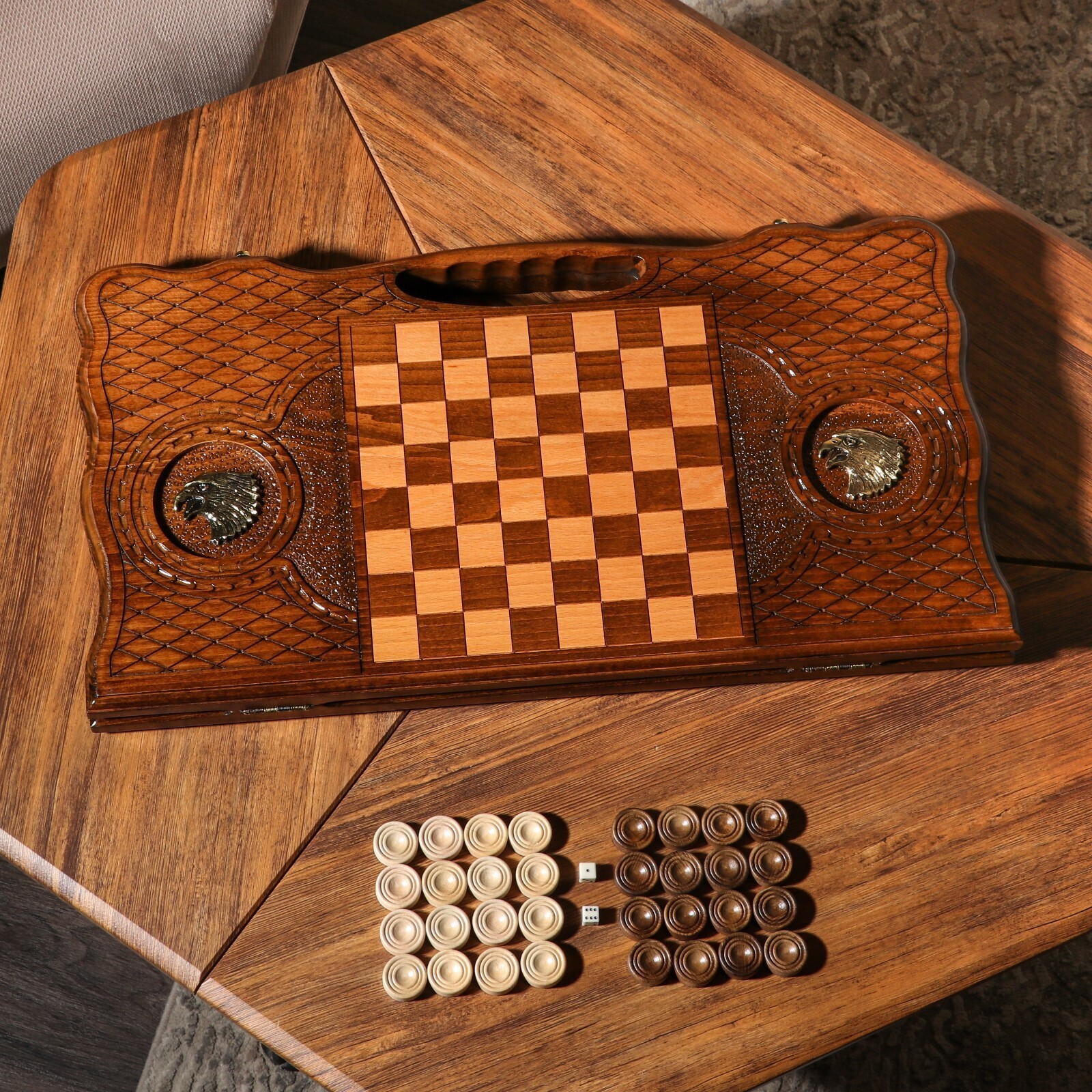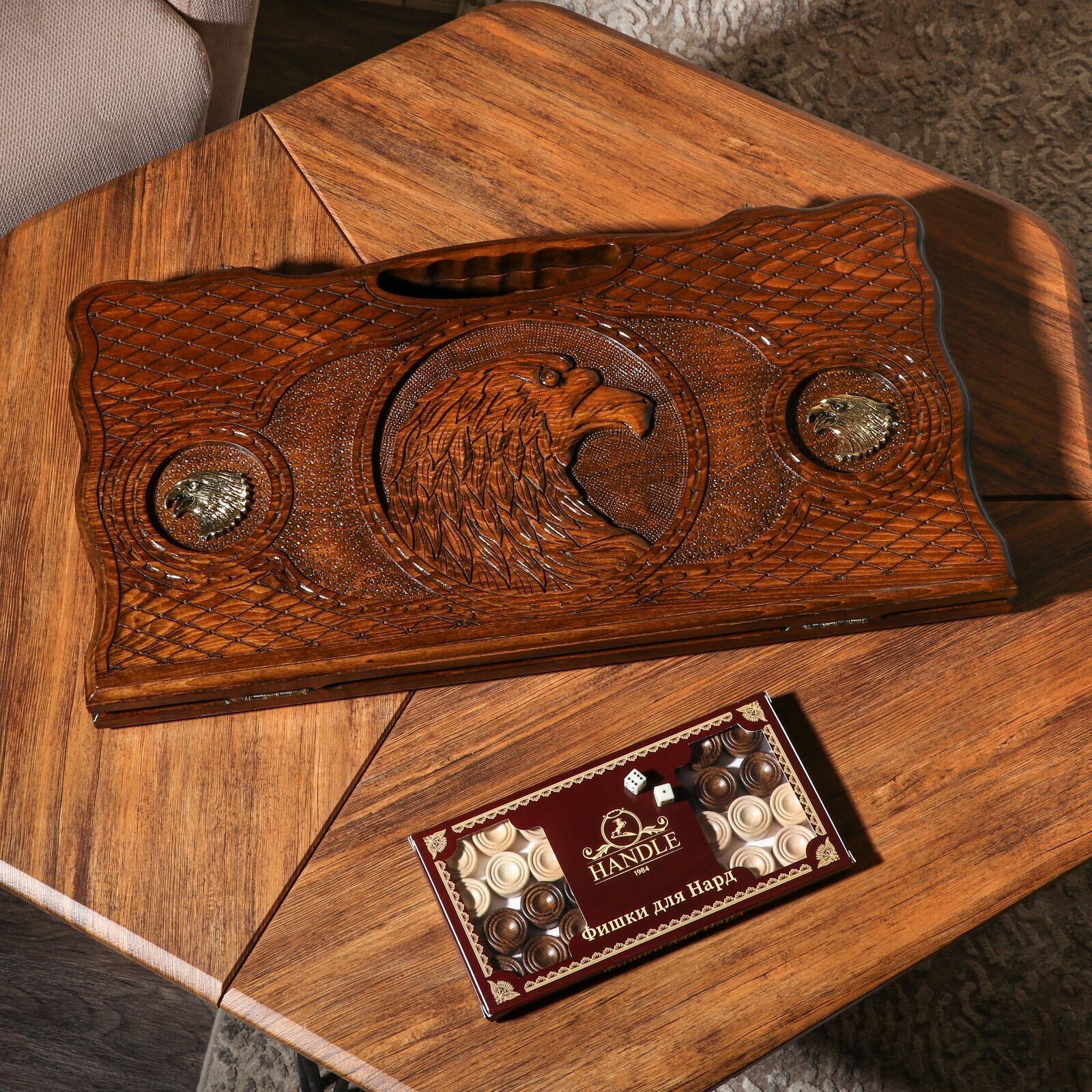 Нарды ручной работы "Орел", глубокая резка, с ручкой, 60х30 см, с шахматным полем, Армения