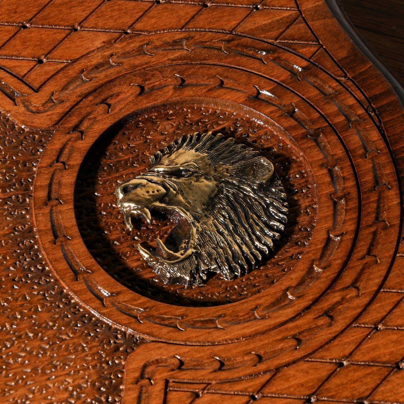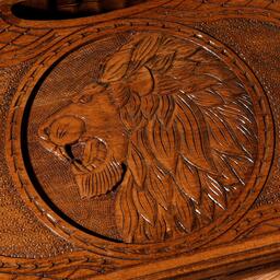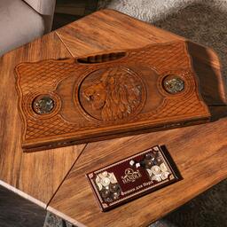 Нарды ручной работы "Лев с инкрустацией", глубокая резка, с ручкой, 60х30 см, с шахматным полем, Армения