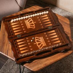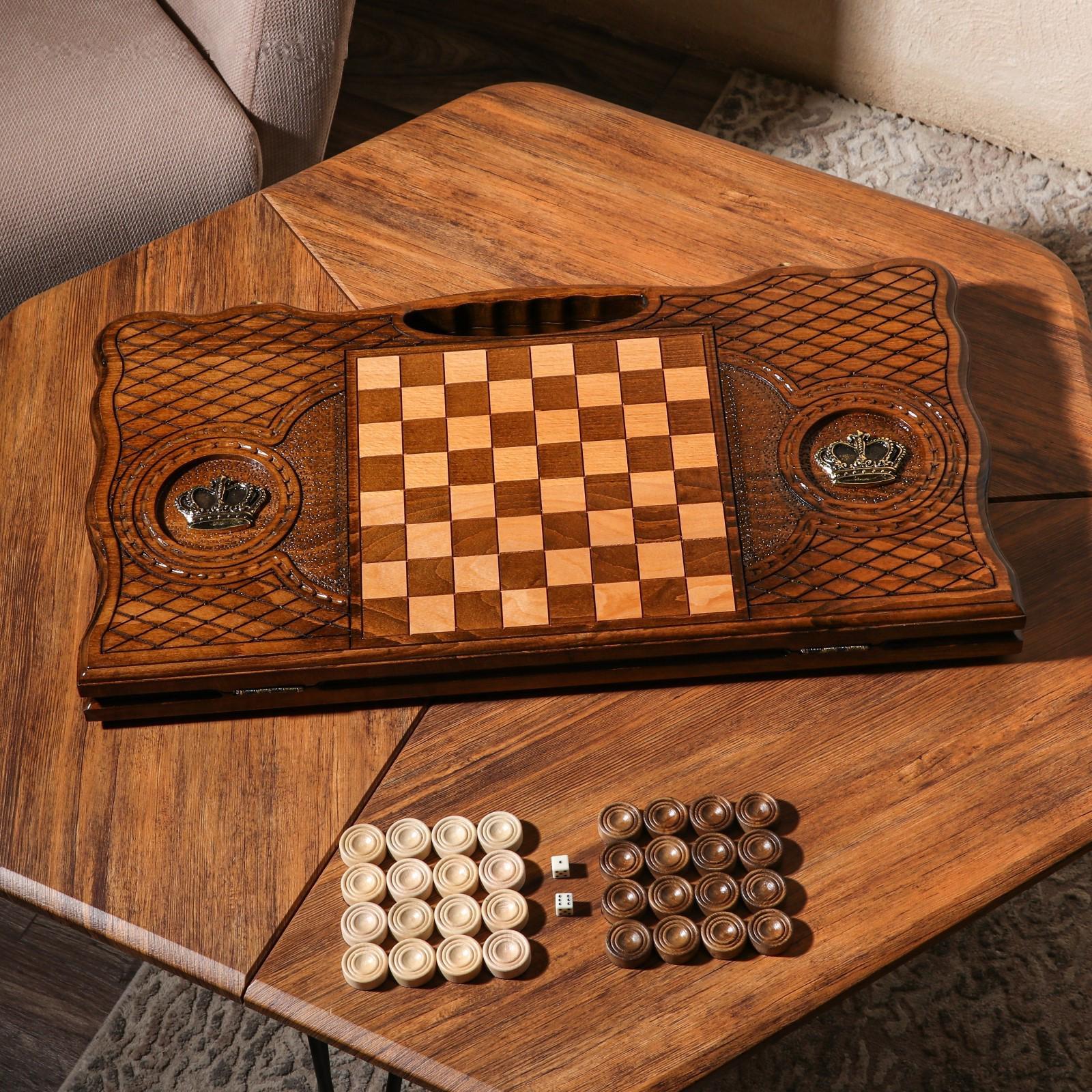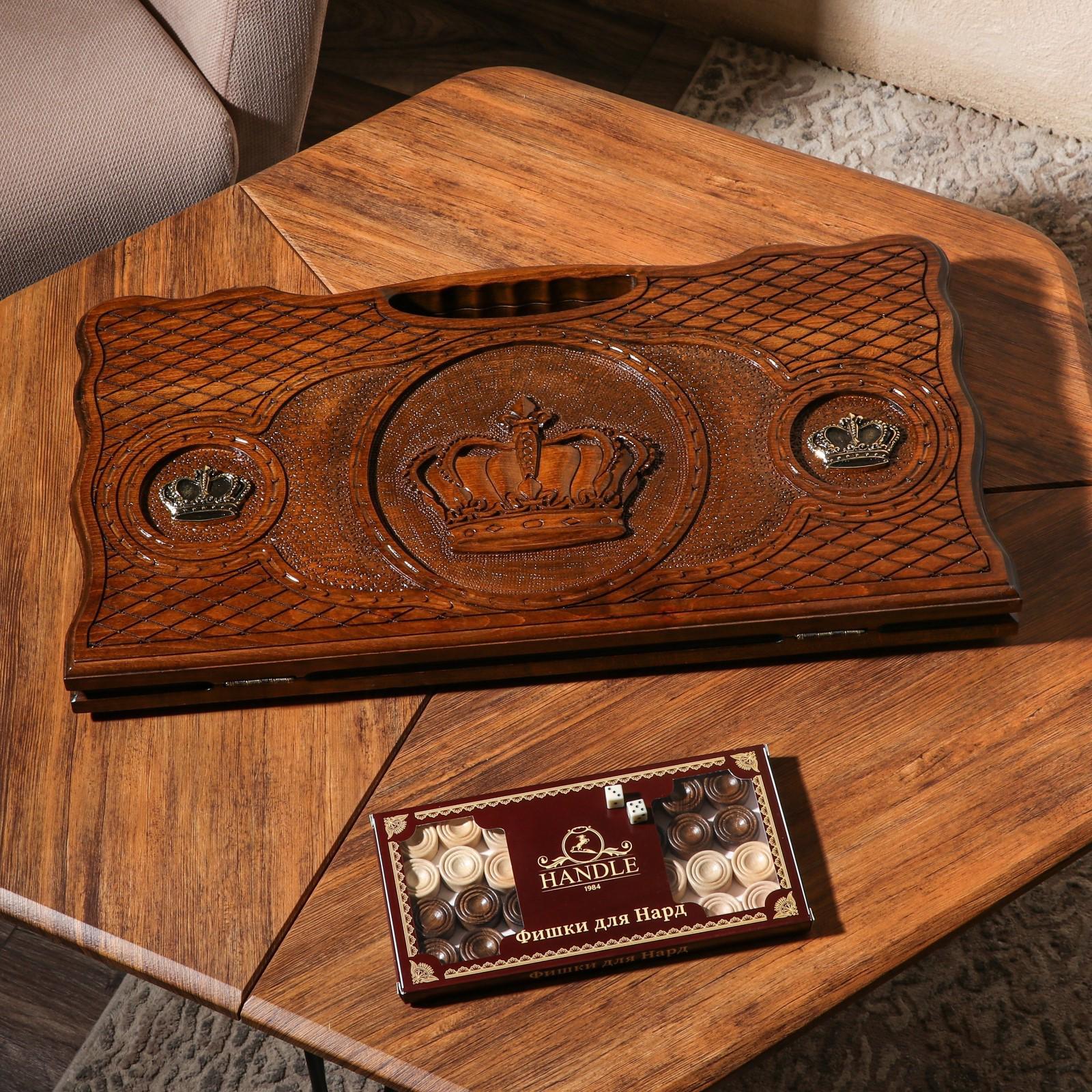 Нарды ручной работы "Корона", глубокая резка, с ручкой, 60х30 см, с шахматным полем, Армения
