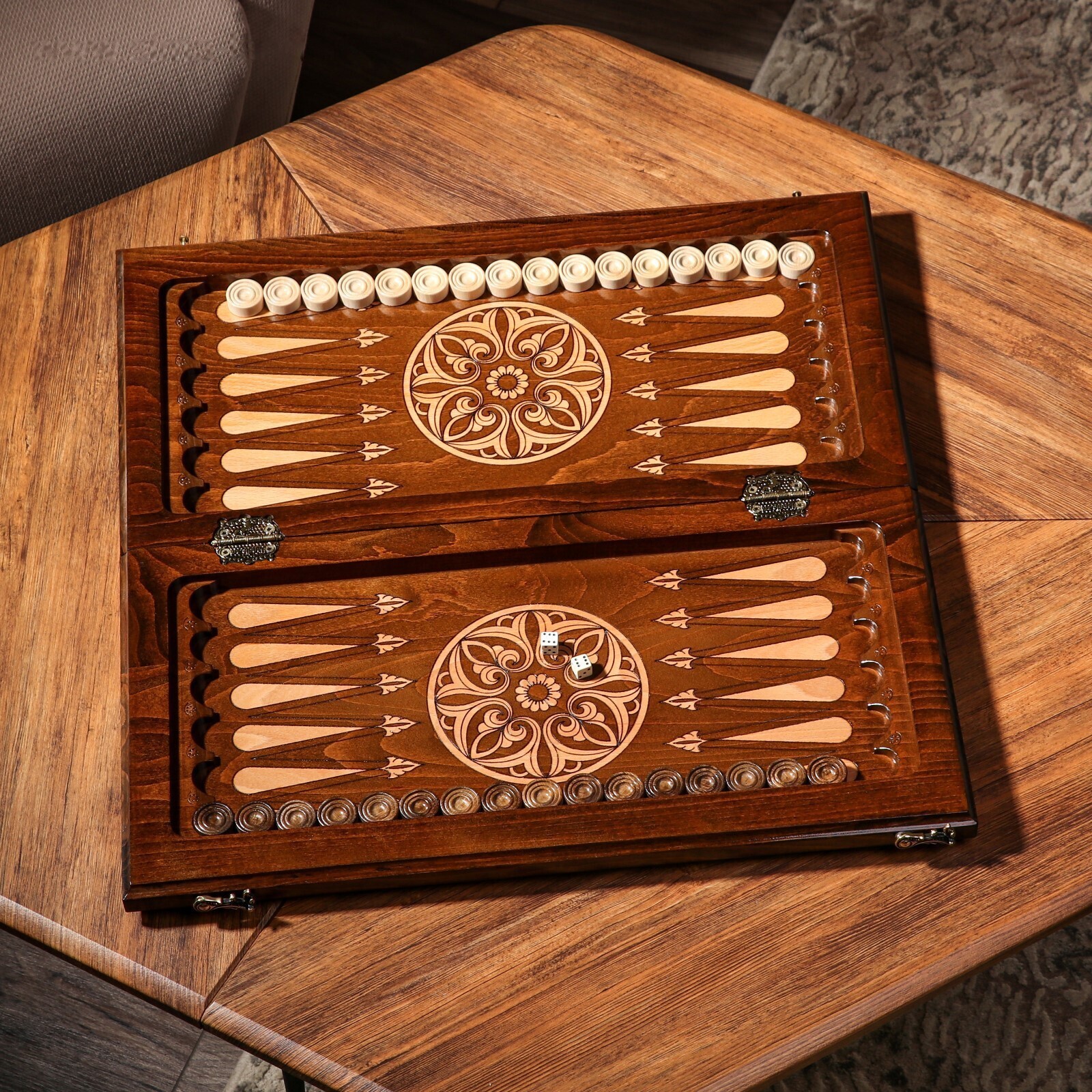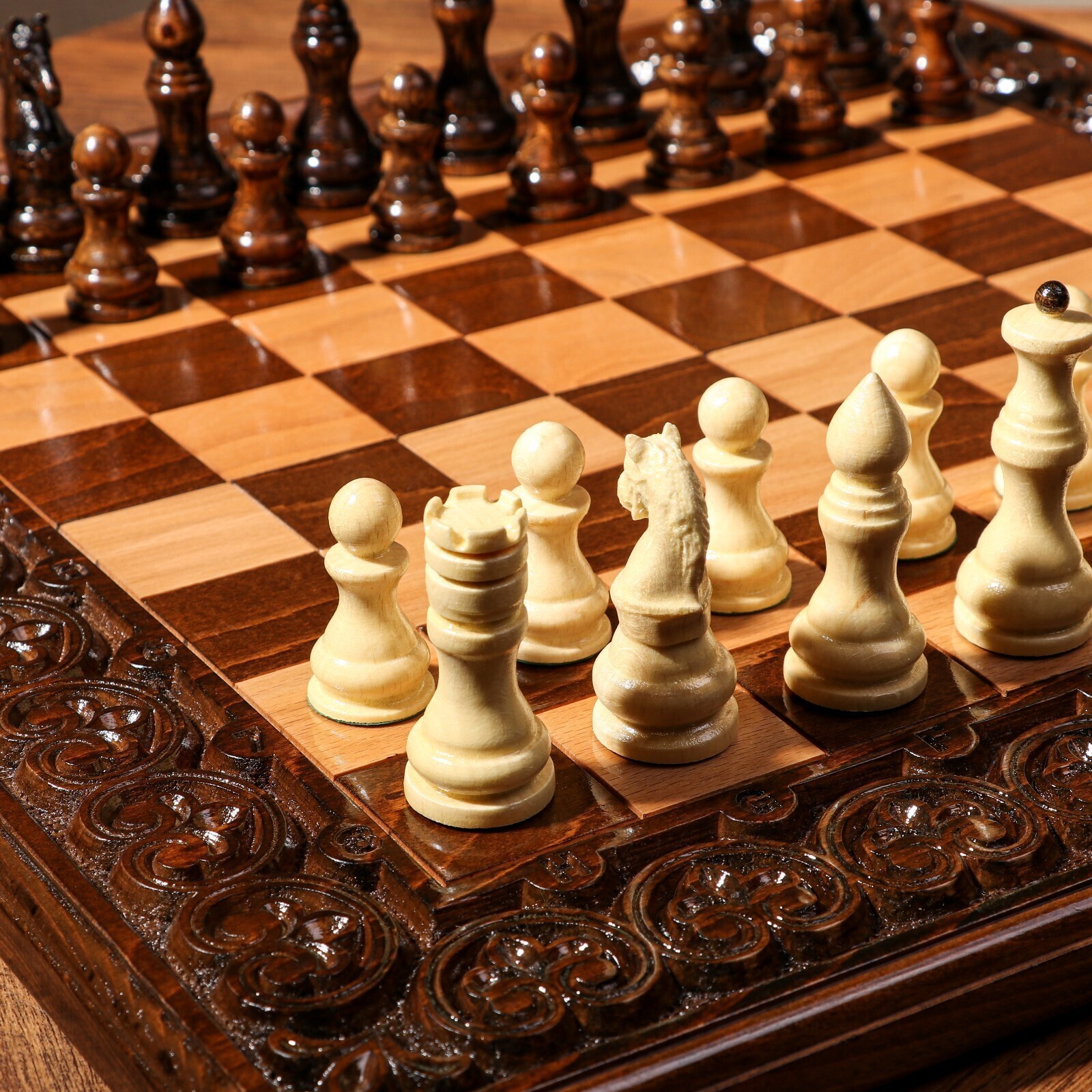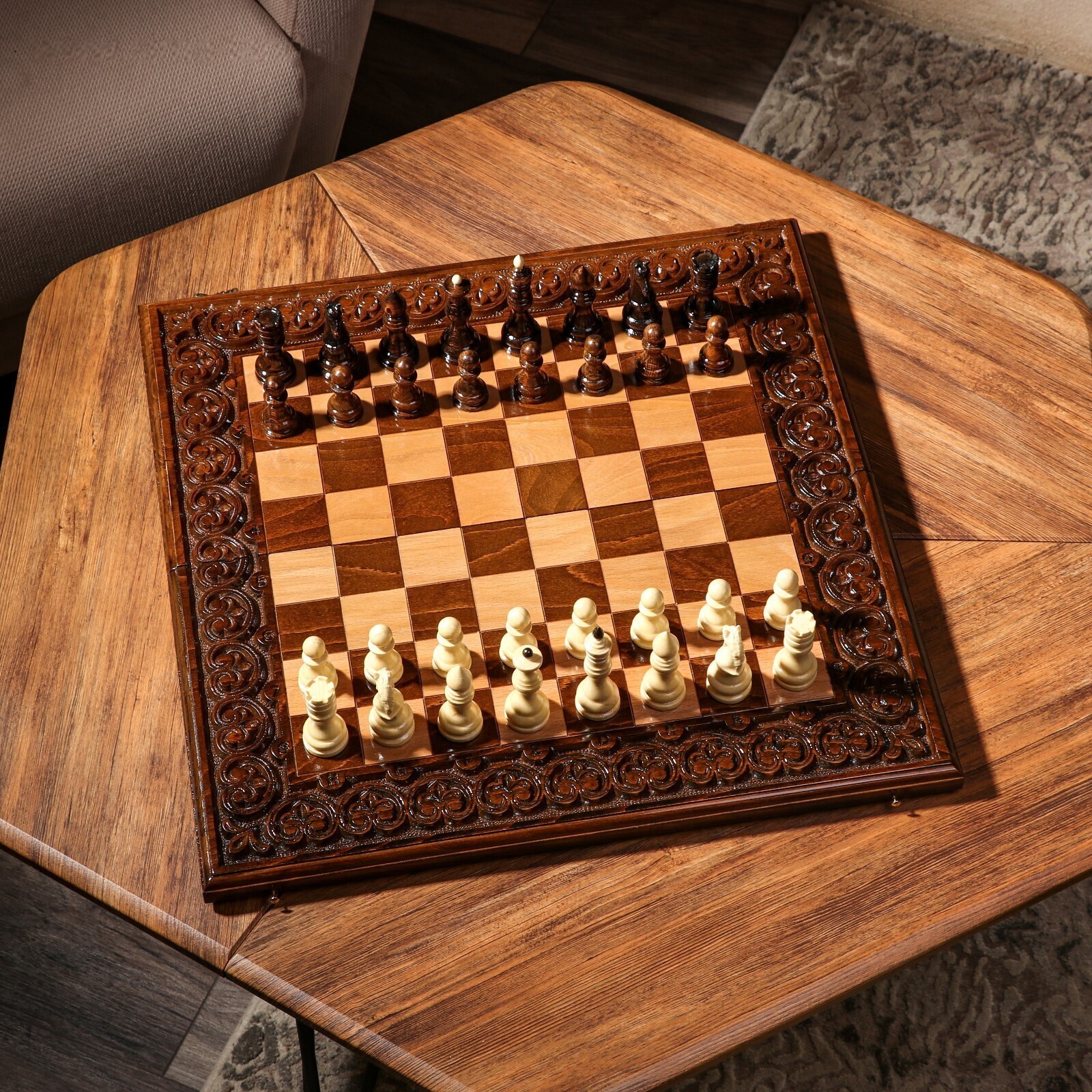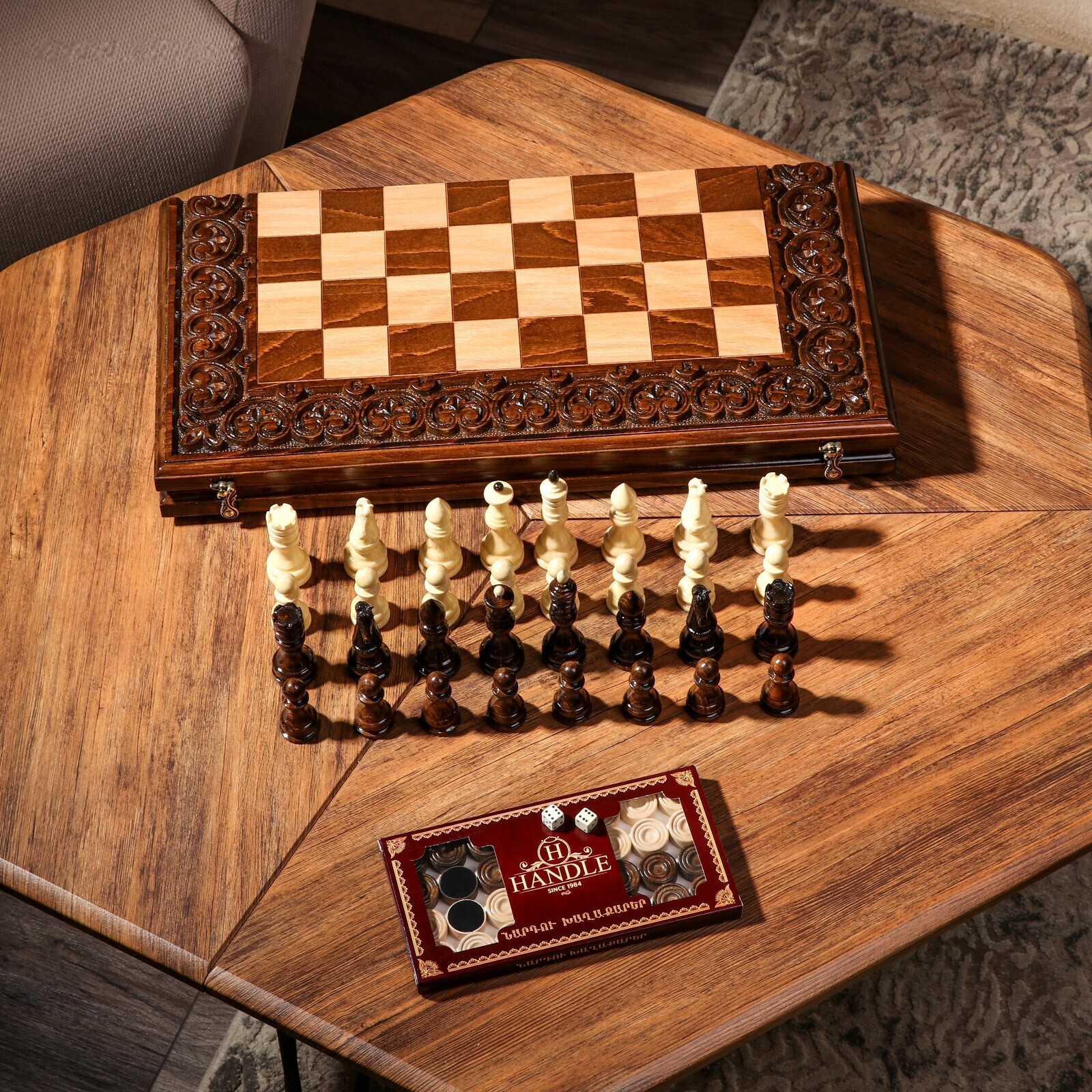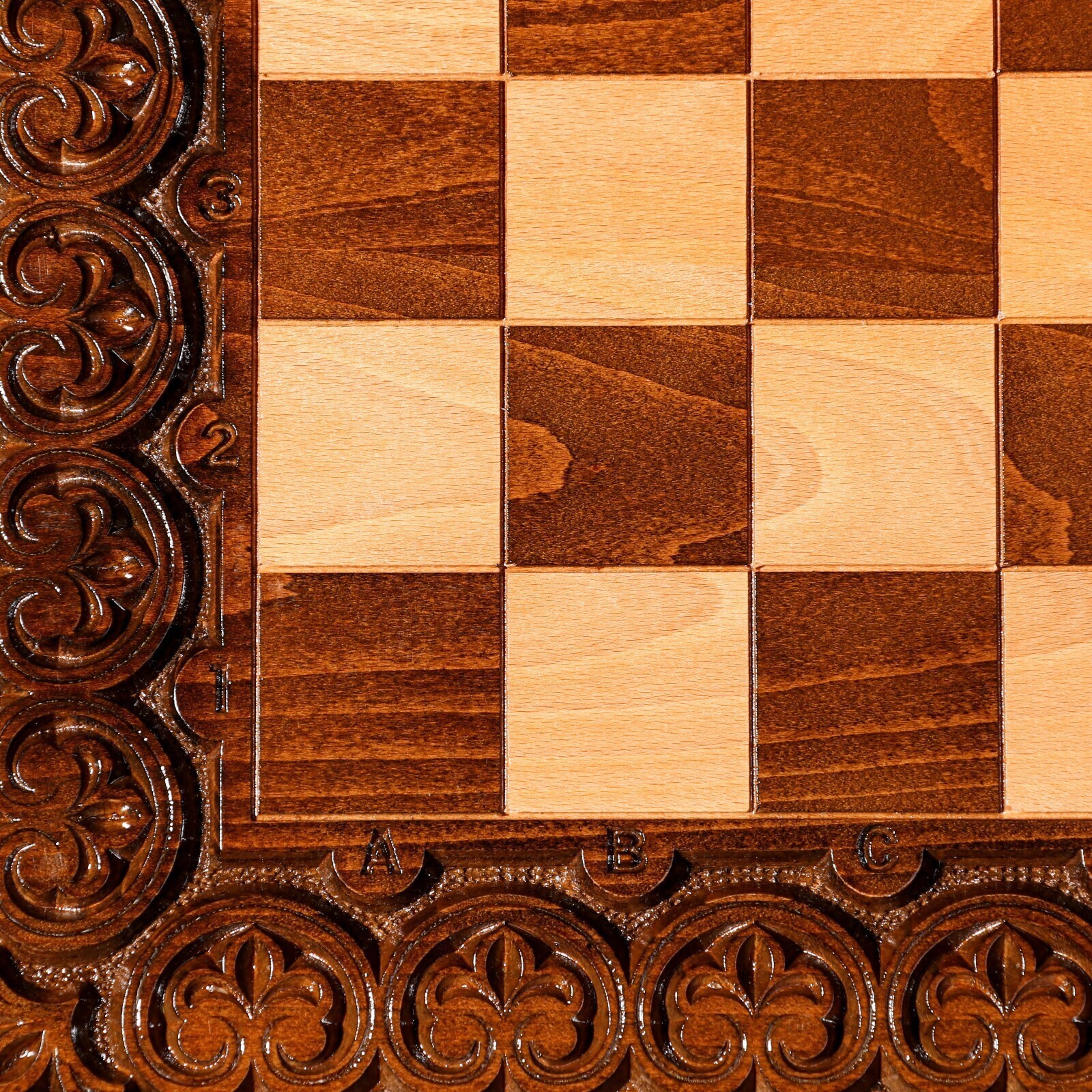 Шахматы-нарды ручной работы "Узоры с резкой", 50х25 см, массив ореха, Армения