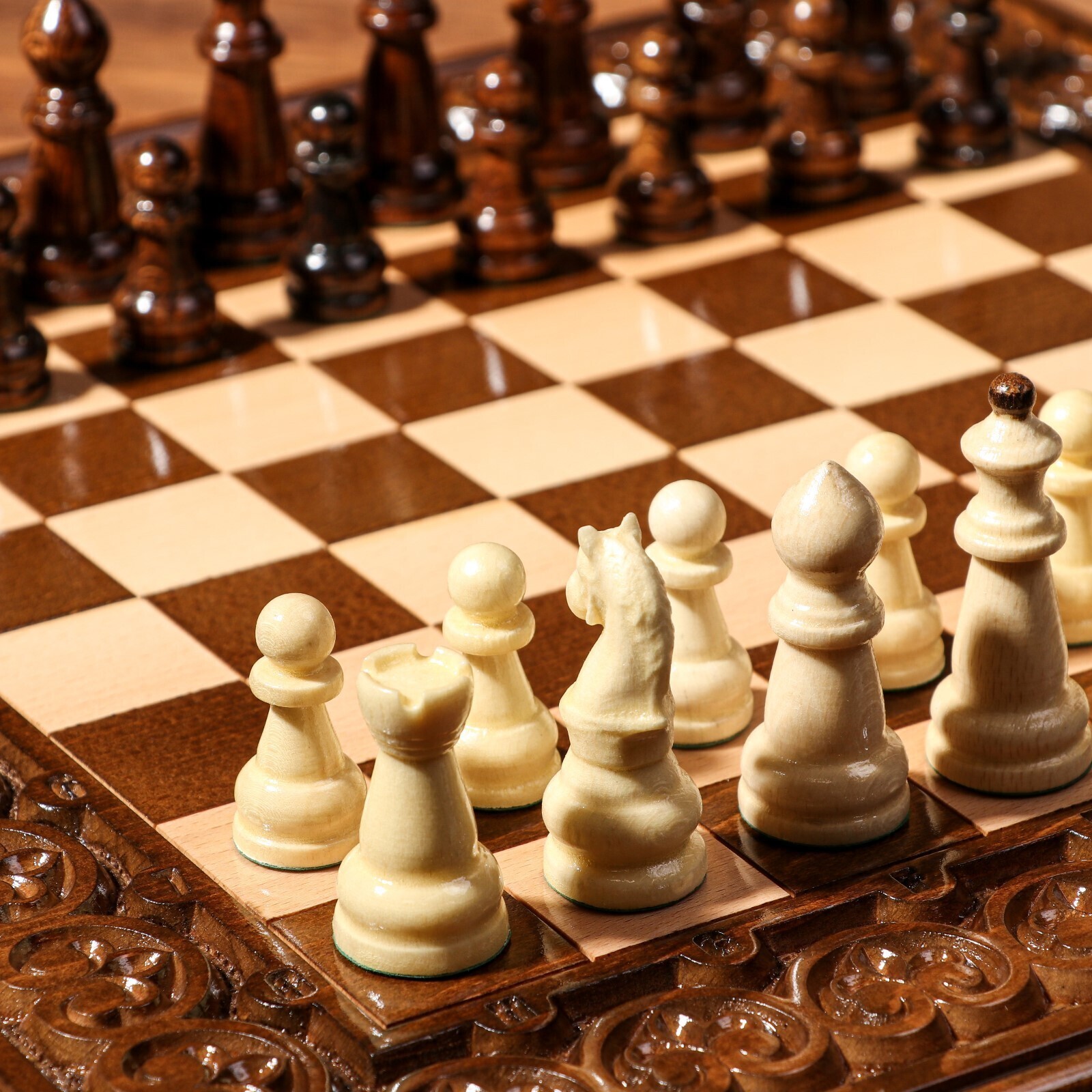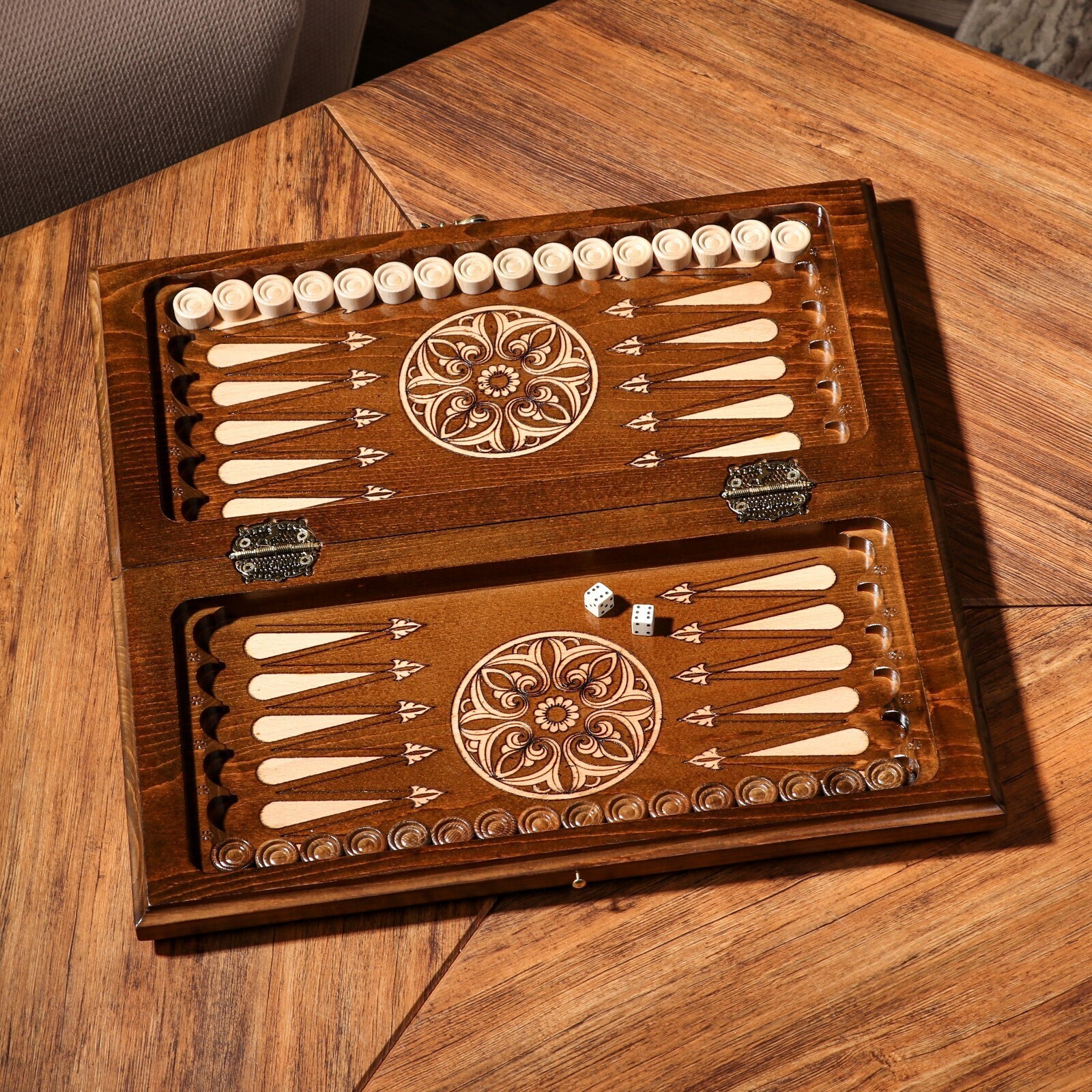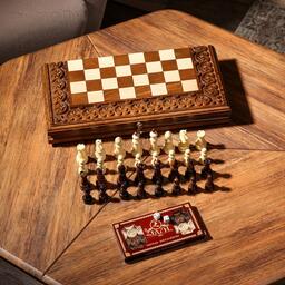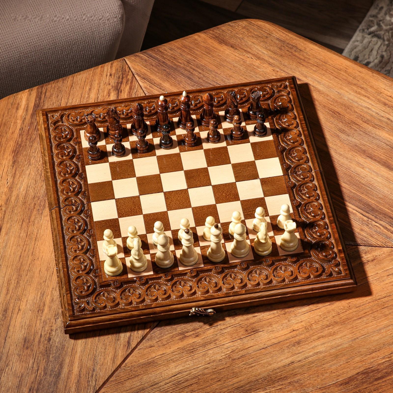 Шахматы-нарды ручной работы "Узоры с резкой", 40х20 см, массив ореха, Армения