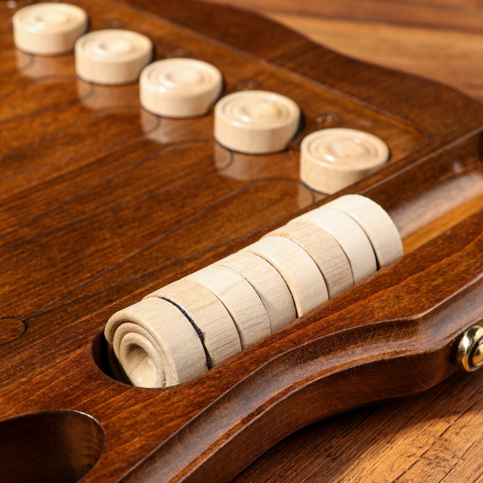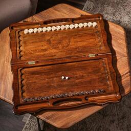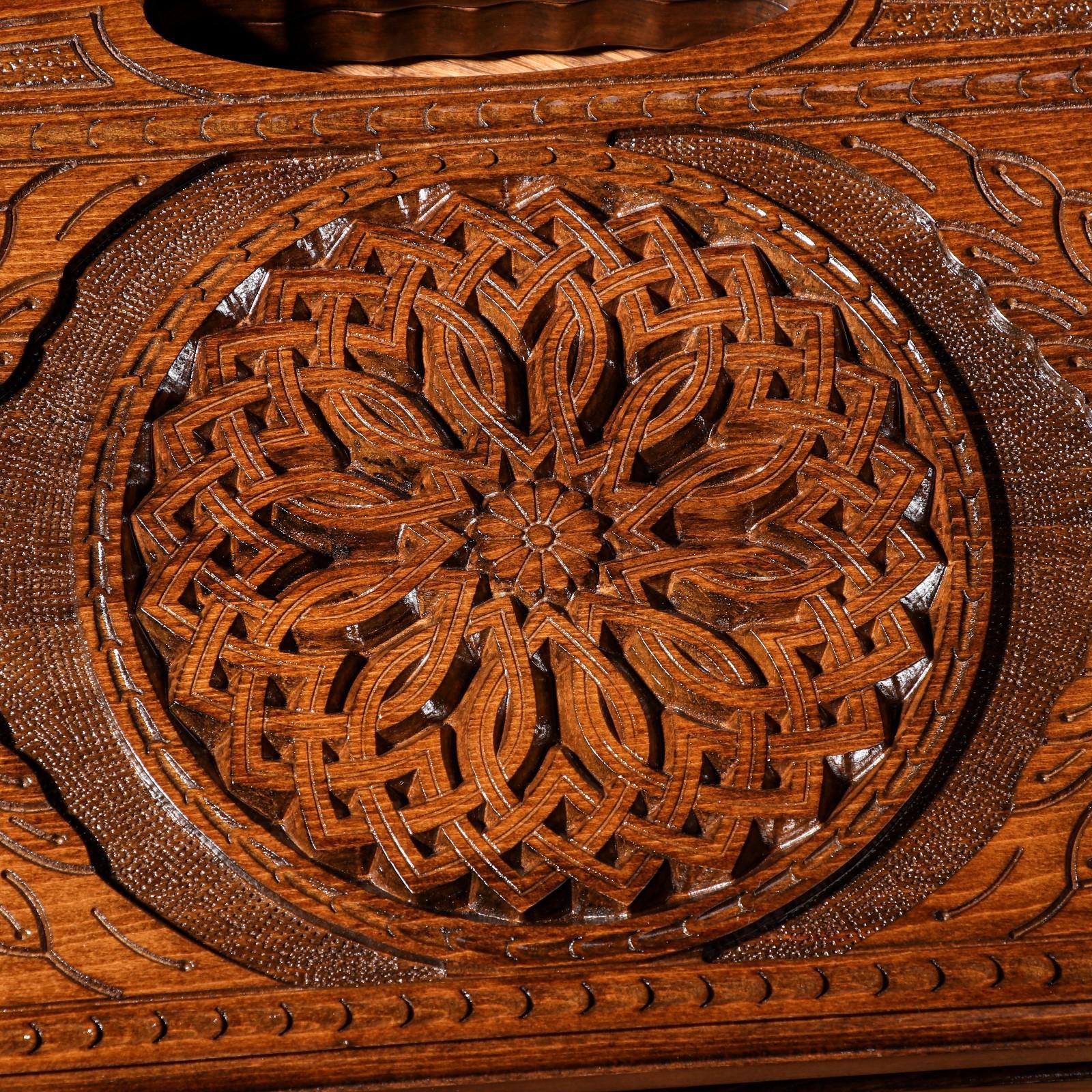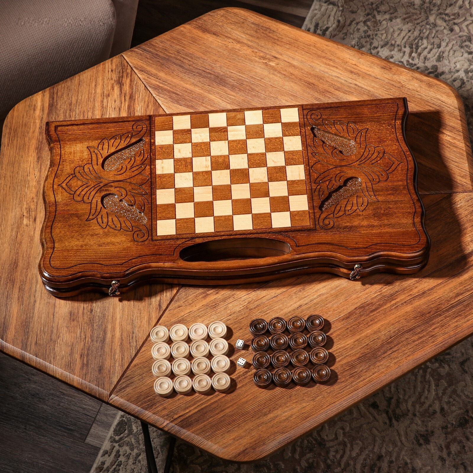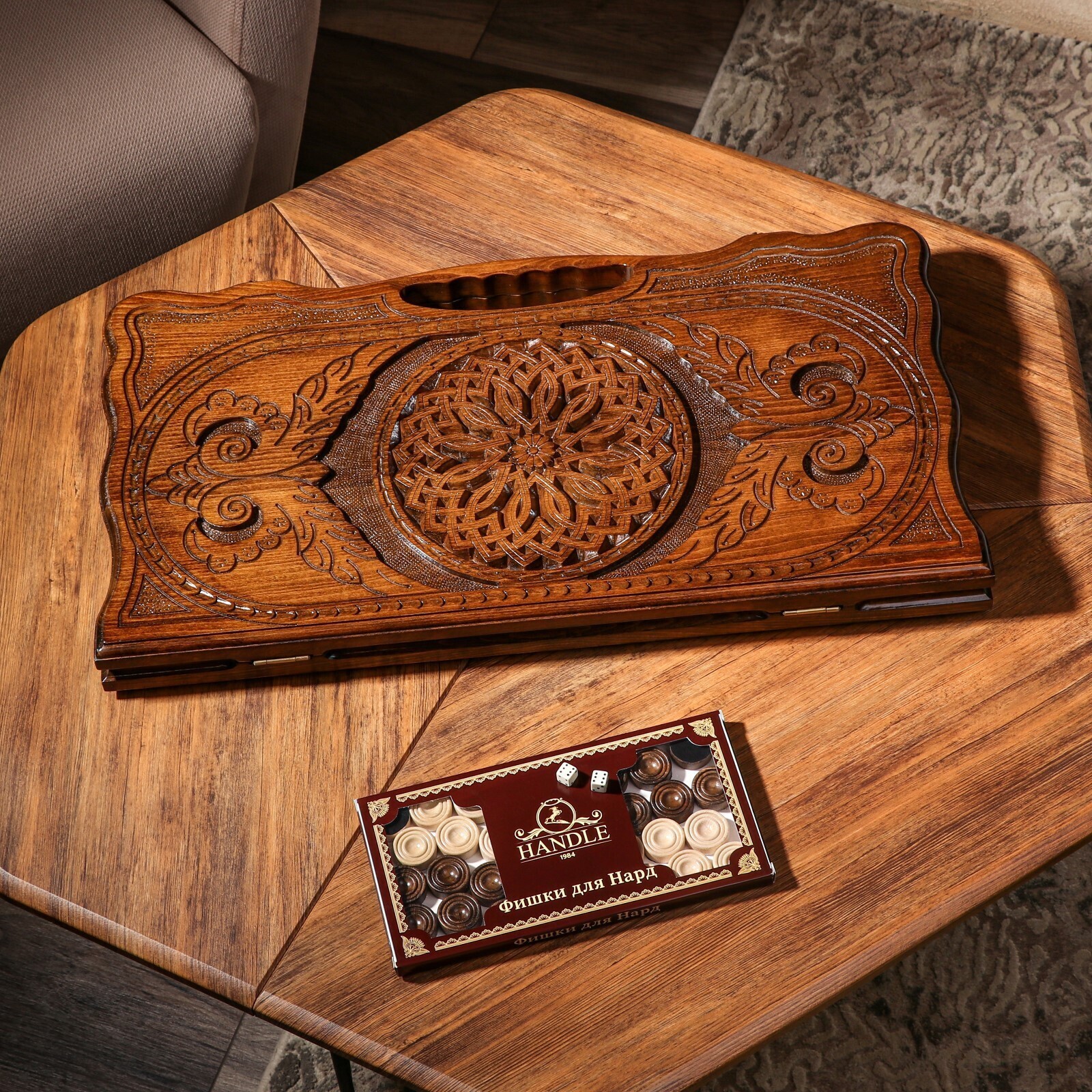 Нарды ручной работы "Орнамент" с ручкой, 60х30 см, с шахматным полем, массив ореха, Армения