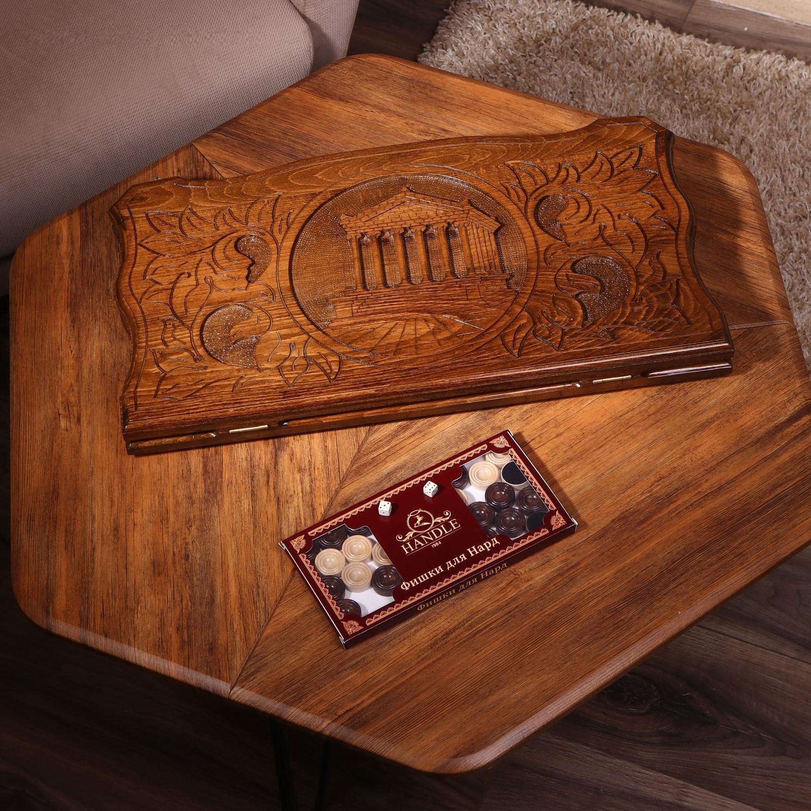 Нарды ручной работы "Пантеон", 60х30 см, с шахматным полем, массив ореха, Армения