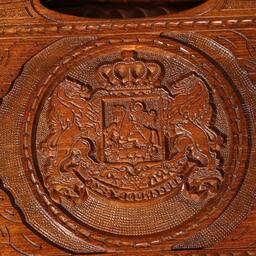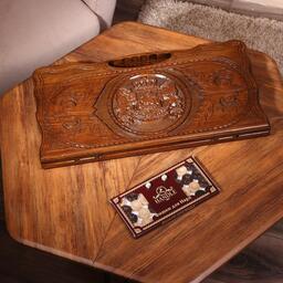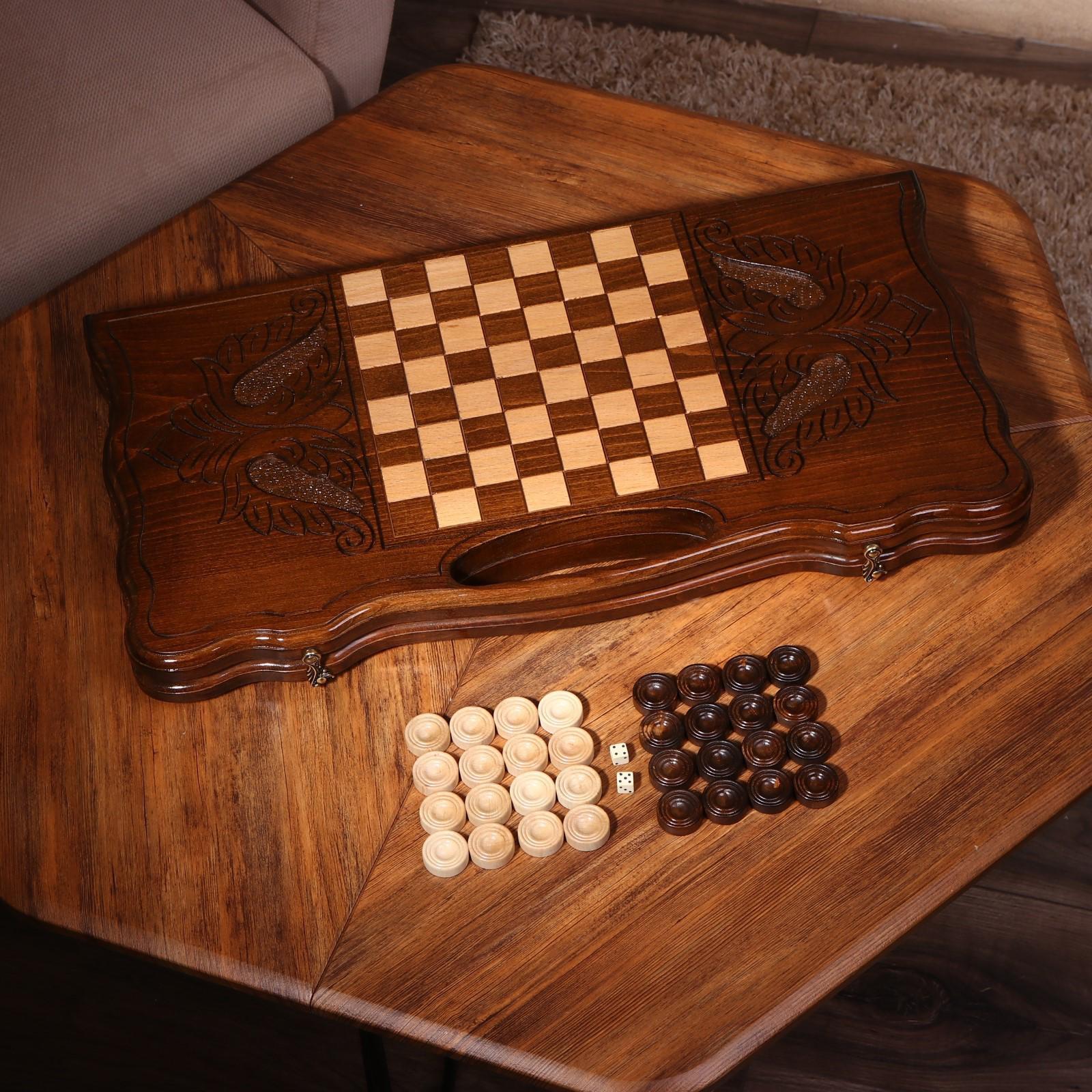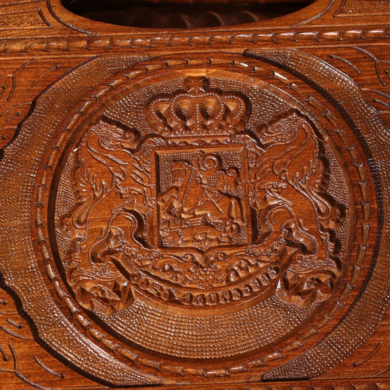 Нарды ручной работы "Герб со львами", глубокая резка, с ручкой, 60х30 см, с шахматным полем, массив ореха, Армения