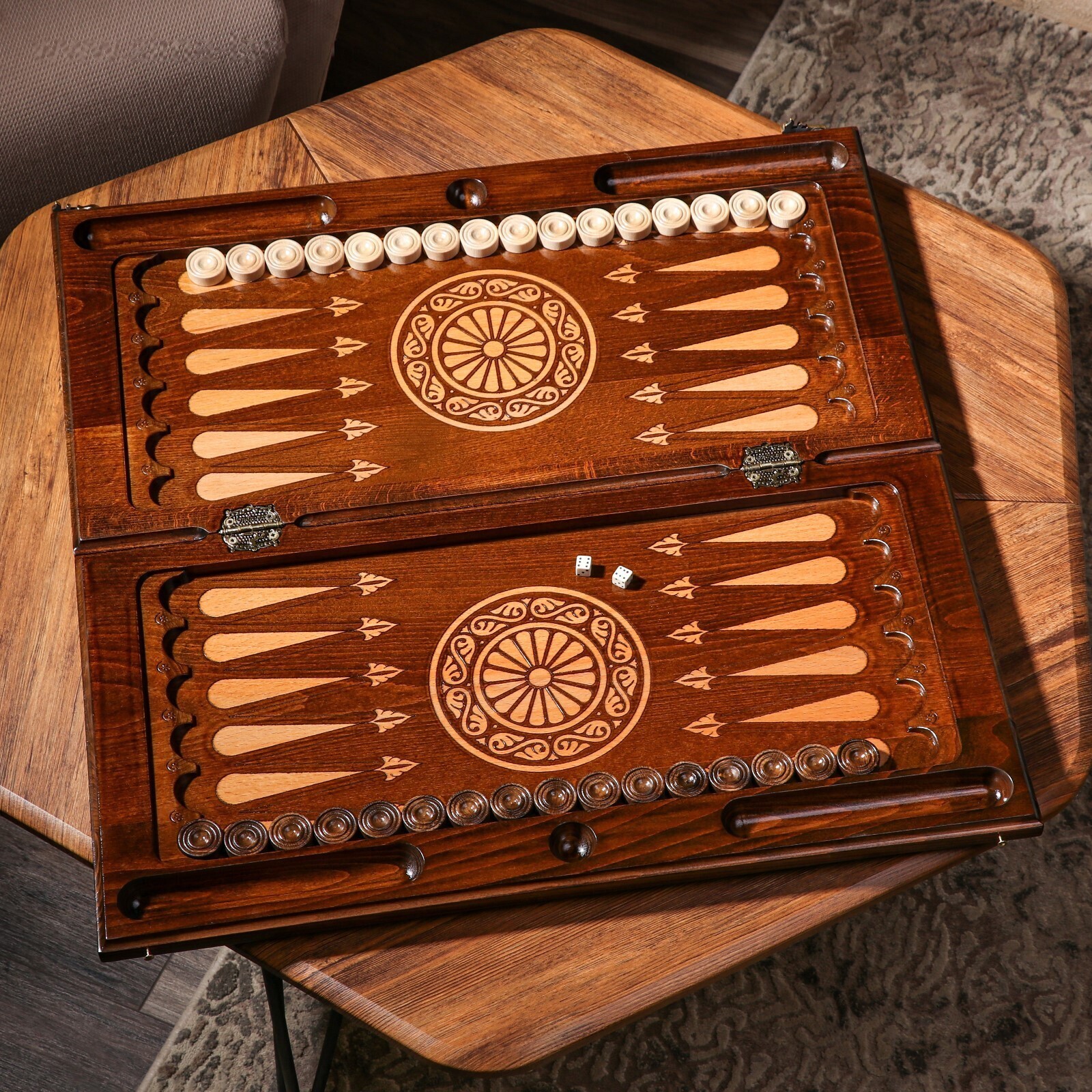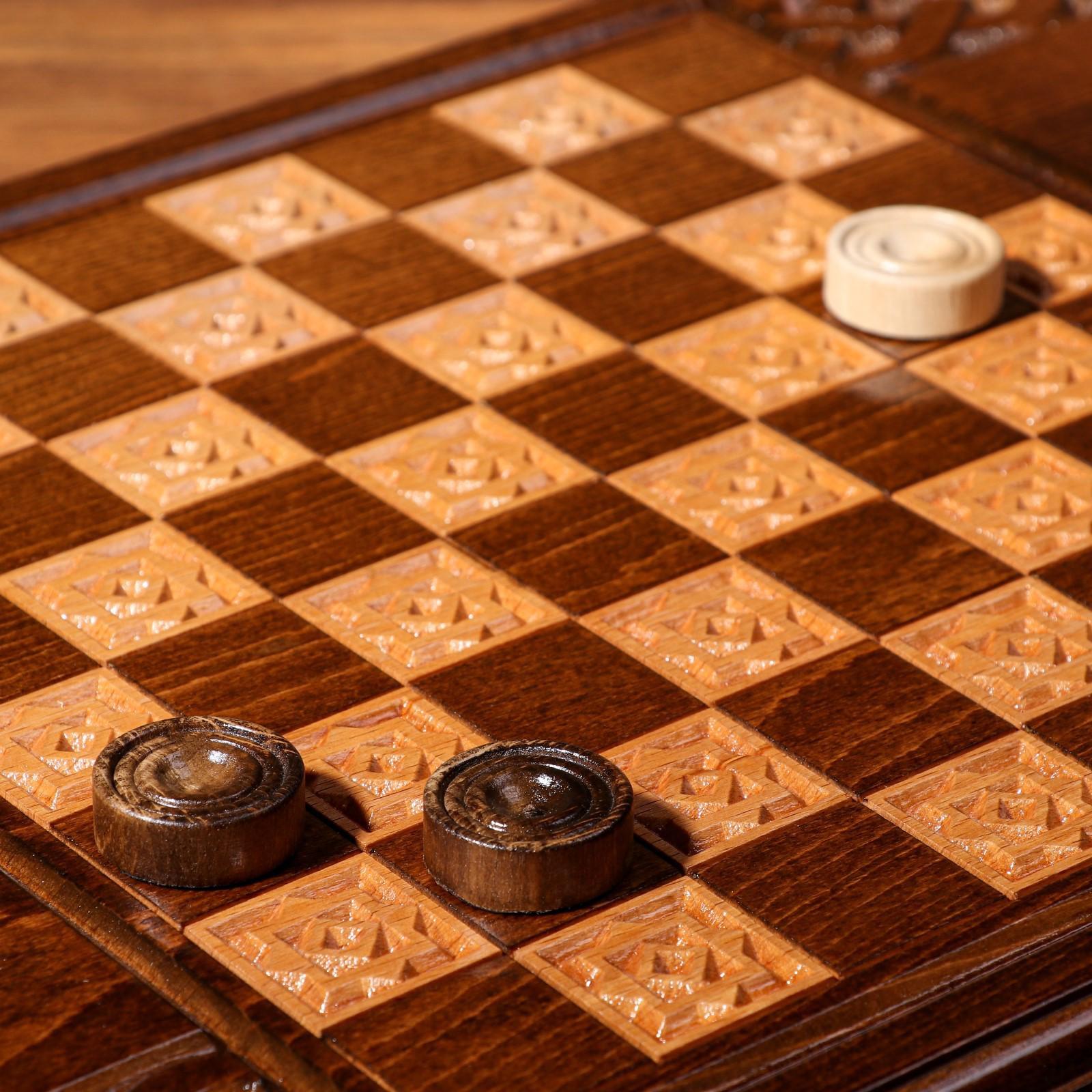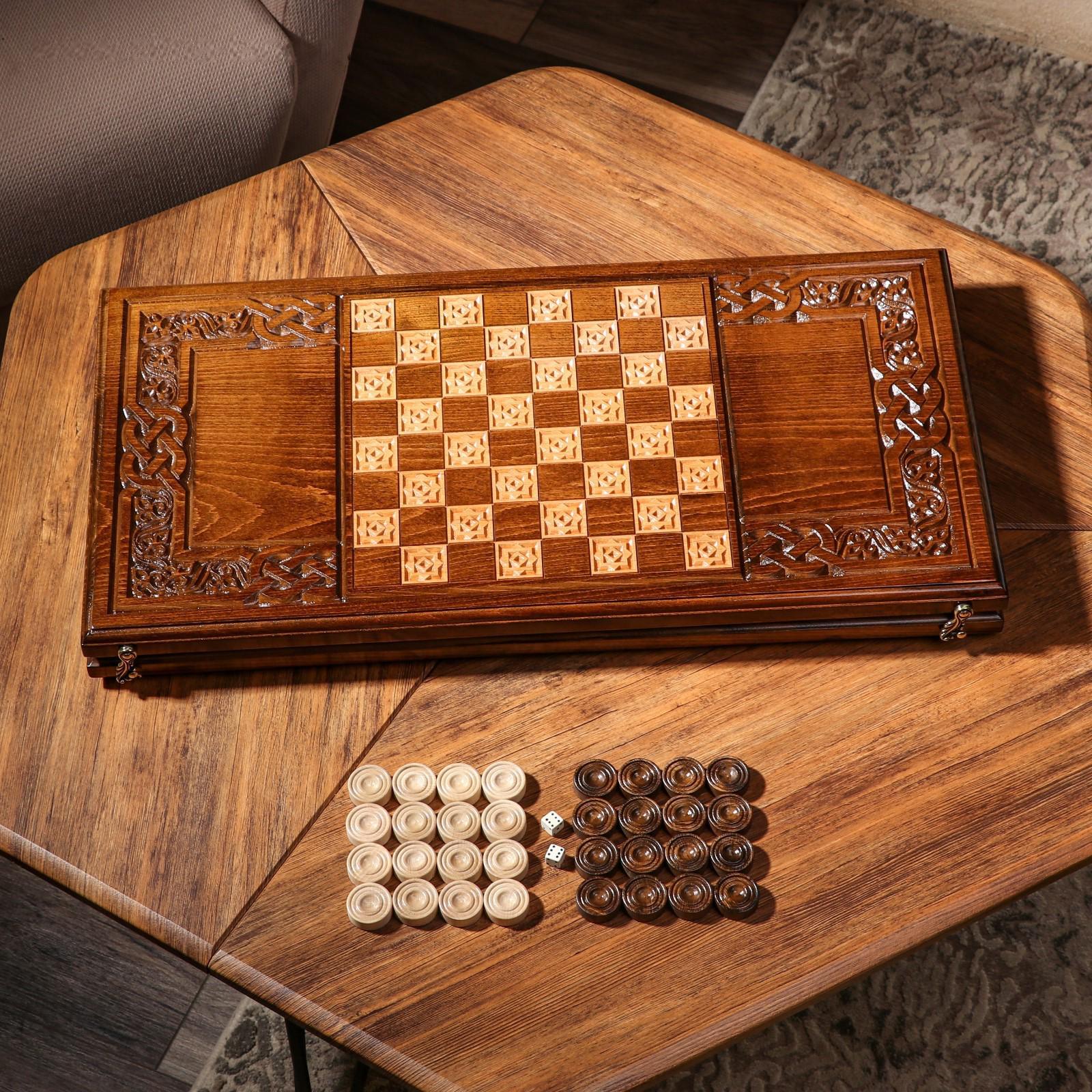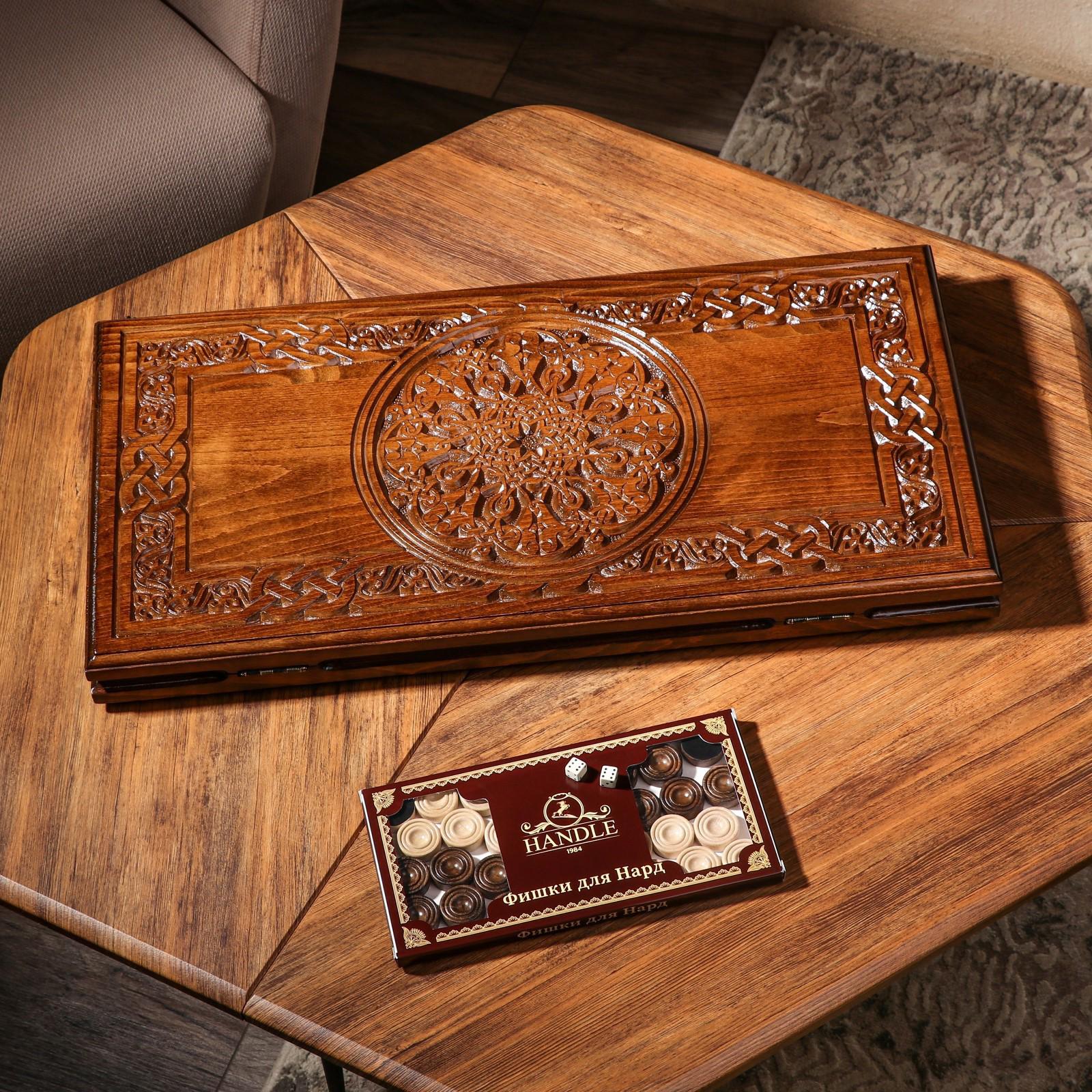 Нарды ручной работы "Узор 2", глубокая резка, с ручкой, 60х30 см, с шахматным полем, Армения