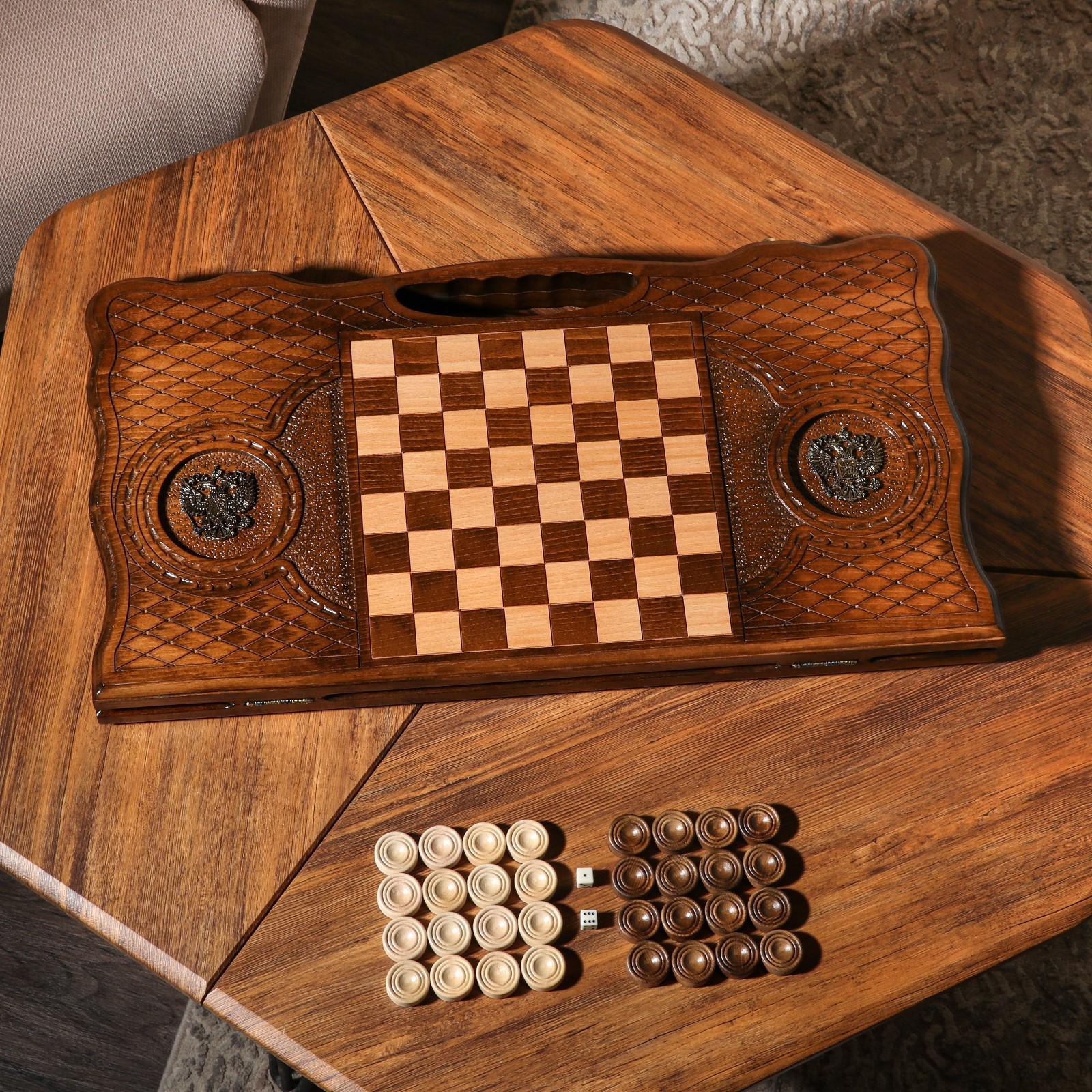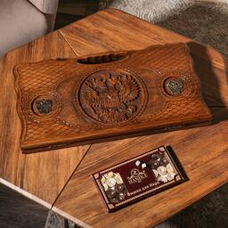 Нарды ручной работы "Герб", глубокая резка, с ручкой, 60х30 см, с шахматным полем, Армения
